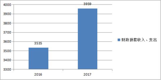 2017年度财政拨款收、支总计3,959万元。与2016年相比,财政拨款收、支总计各增加424万元,增长11.99%。主要原因是一般公共服务收支增加146万元、公共安全支出收支增加59万元、社会保障和就业支出收支增加184万元、医疗卫生与计划生育支出收支减少3万元、城乡社区支出收支增加46万元、商业服务等收支增加3万元、其他支出收支减少11万元。
