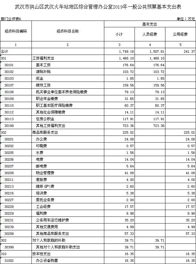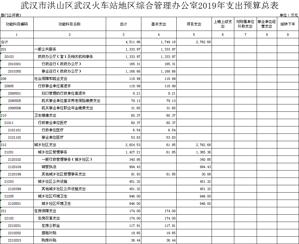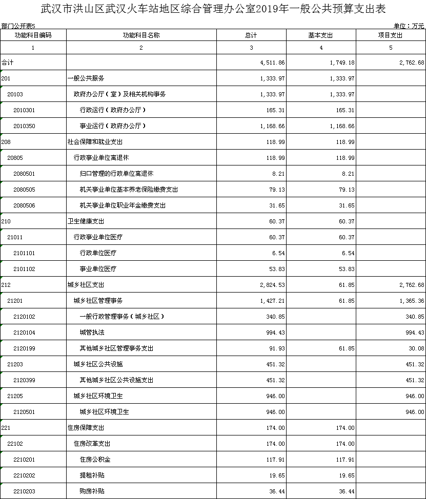 名 称:武汉市洪山区武汉火车站地区综合管理办公室2019年部门预算编制说明 |