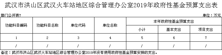武汉市洪山区武汉火车站地区综合管理办公室2019年没有使用政府性基金预算安排的支出。