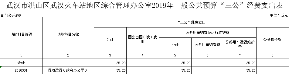 一般公共预算财政拨款安排“三公”经费预算35.2万元,比2018年预算增加35.2万元,增长100 %。其中: