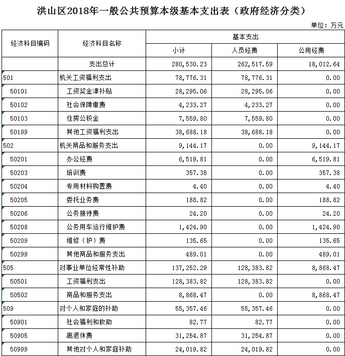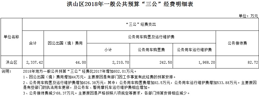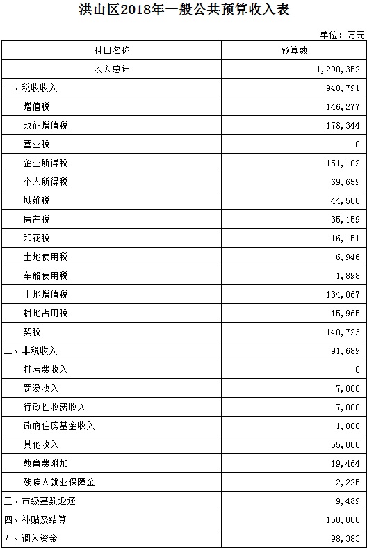 洪山区2018年一般公共预算