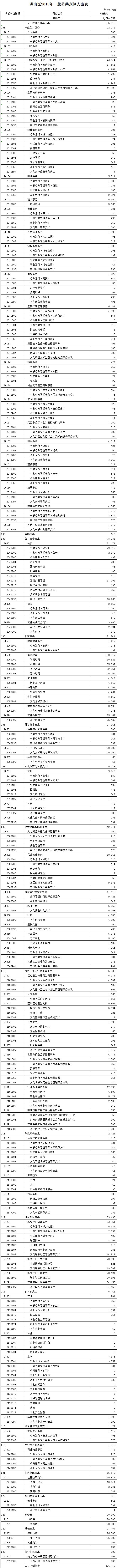 标     题 洪山区2018年一般公共预算