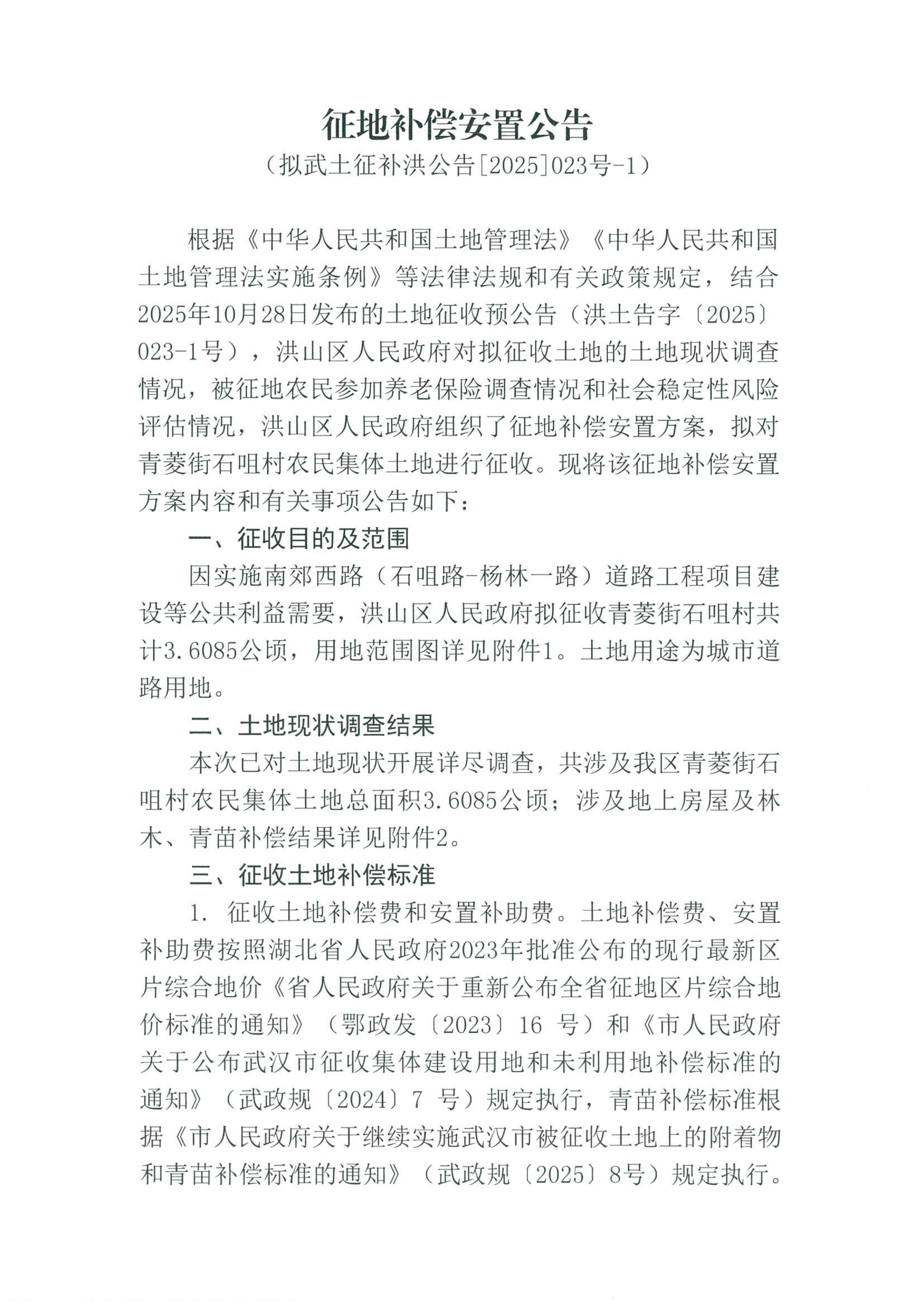 标     题 拟武土征补洪公告[2025]023号-1征地补偿安置方案公告