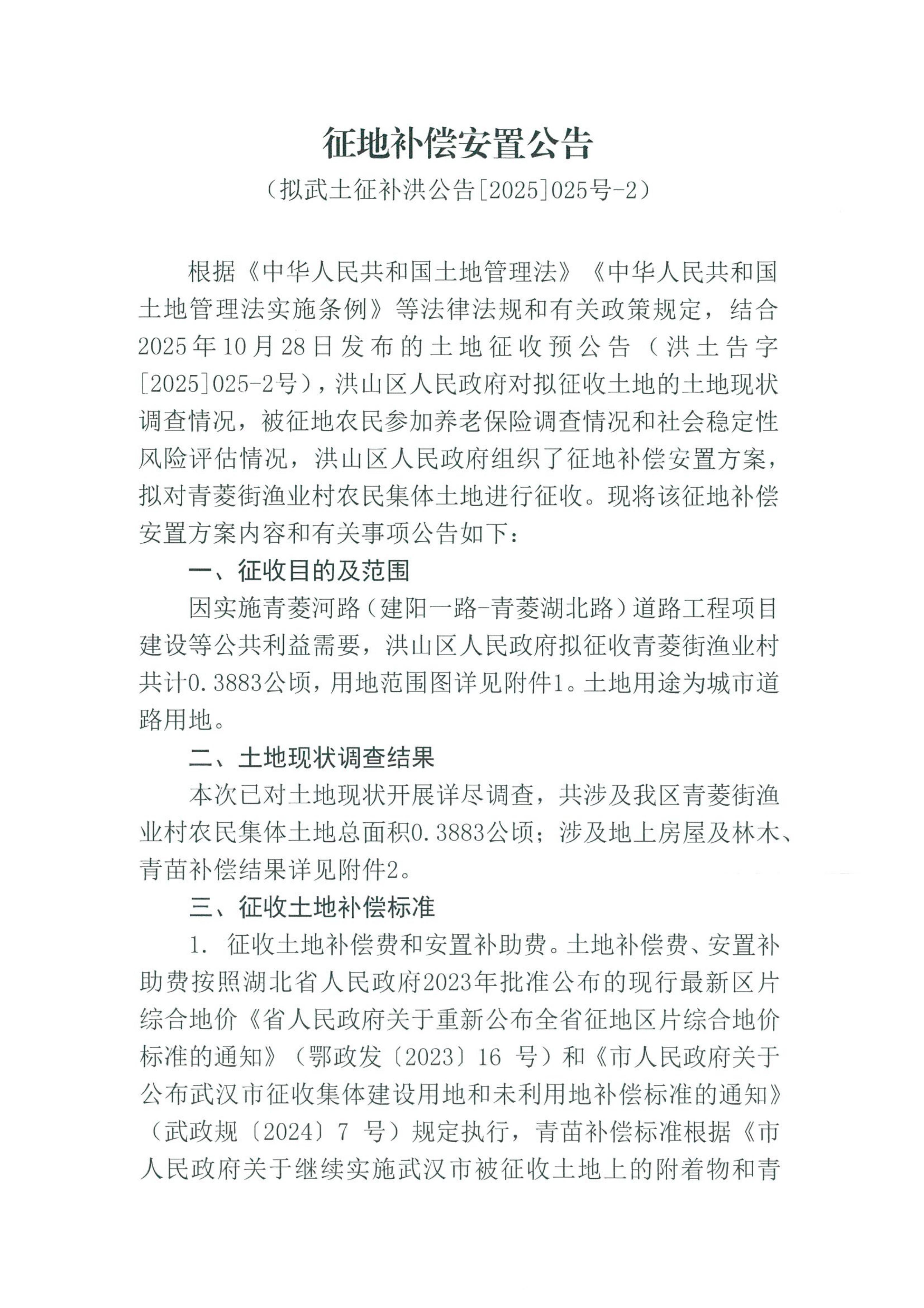 标     题 拟武土征补洪公告[2025]025号-2征地补偿安置方案公告