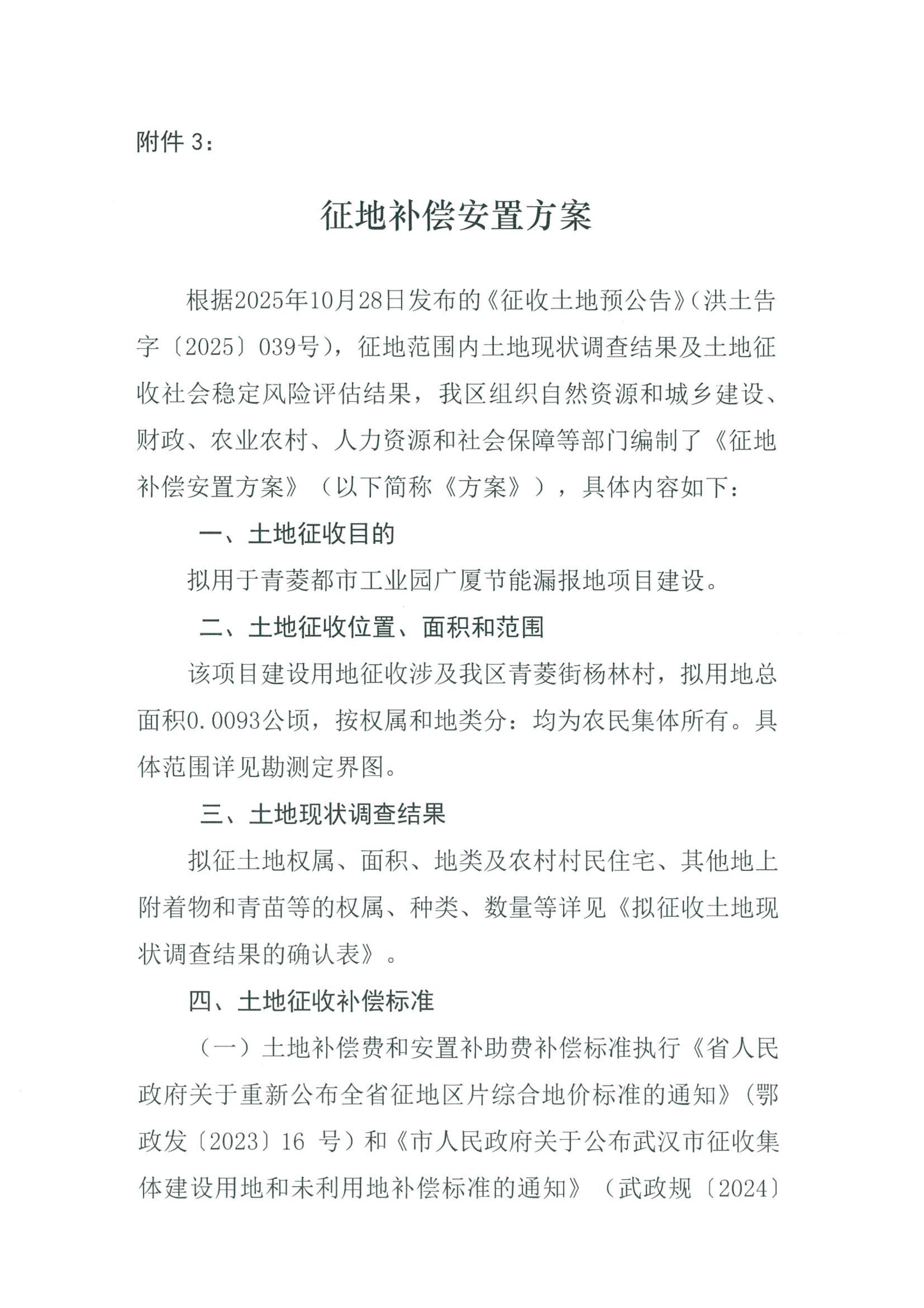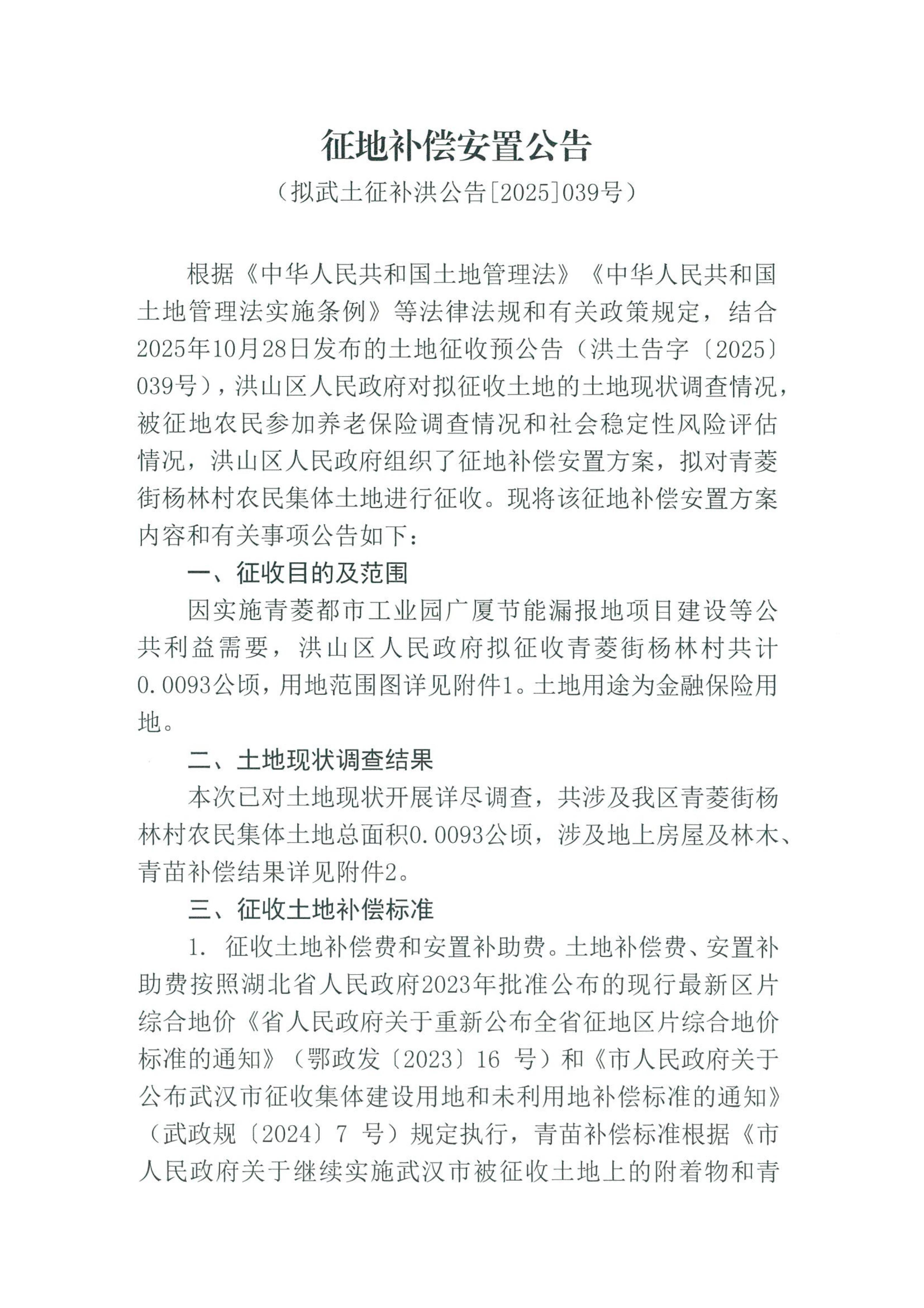 标     题 拟武土征补洪公告[2025]039号征地补偿安置方案公告