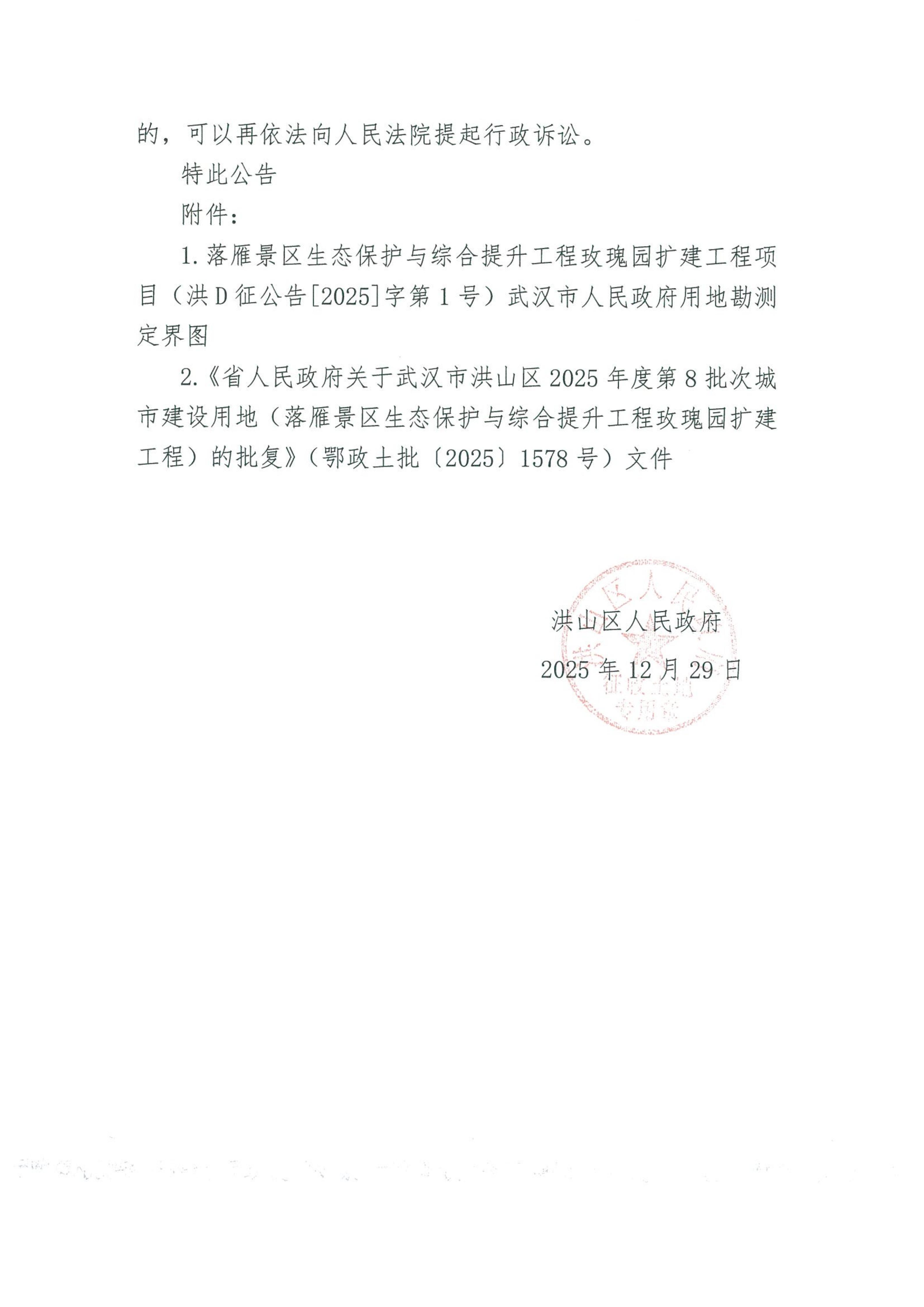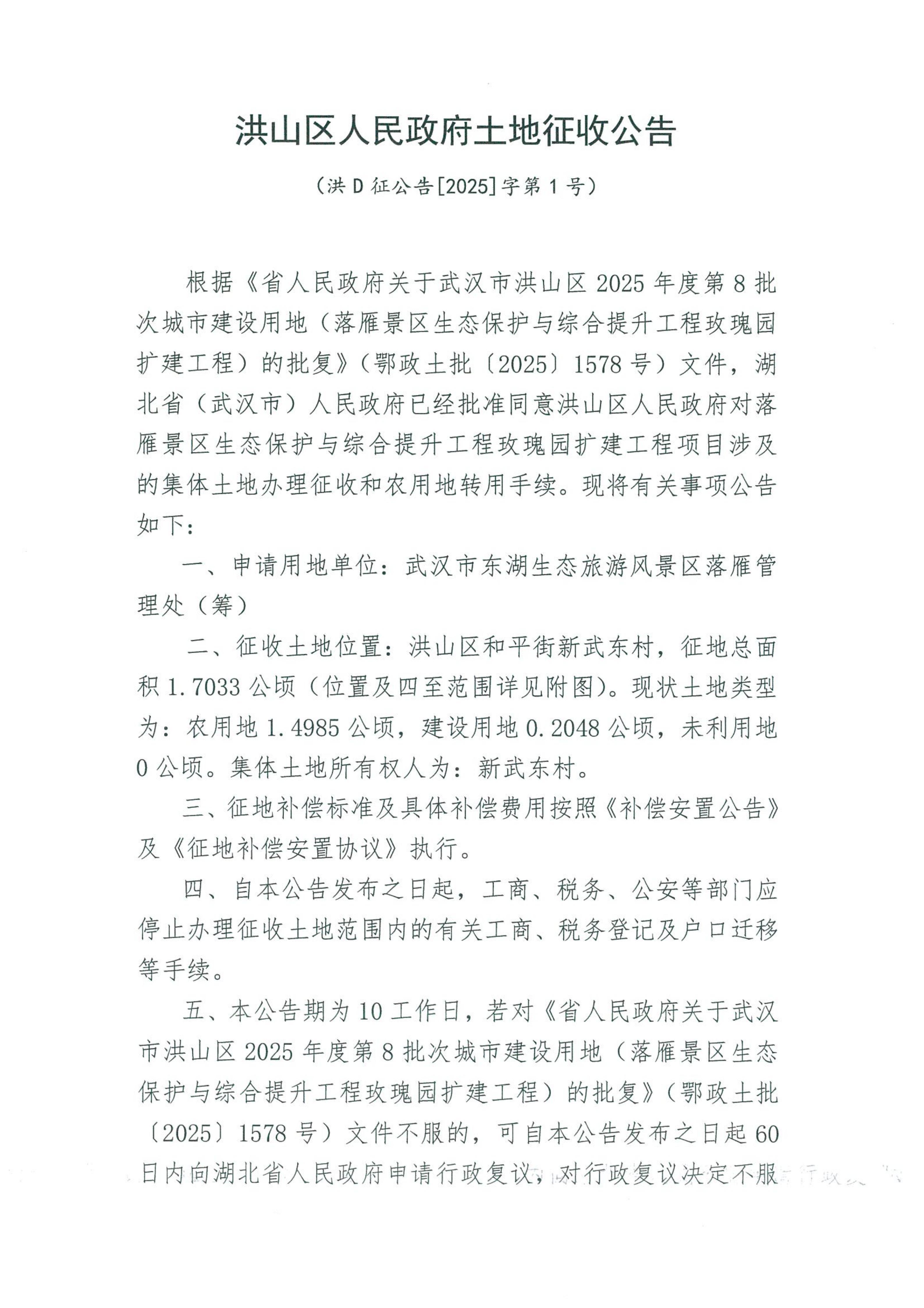 洪D征公告【2025】字第1号洪山区人民政府土地征收公告