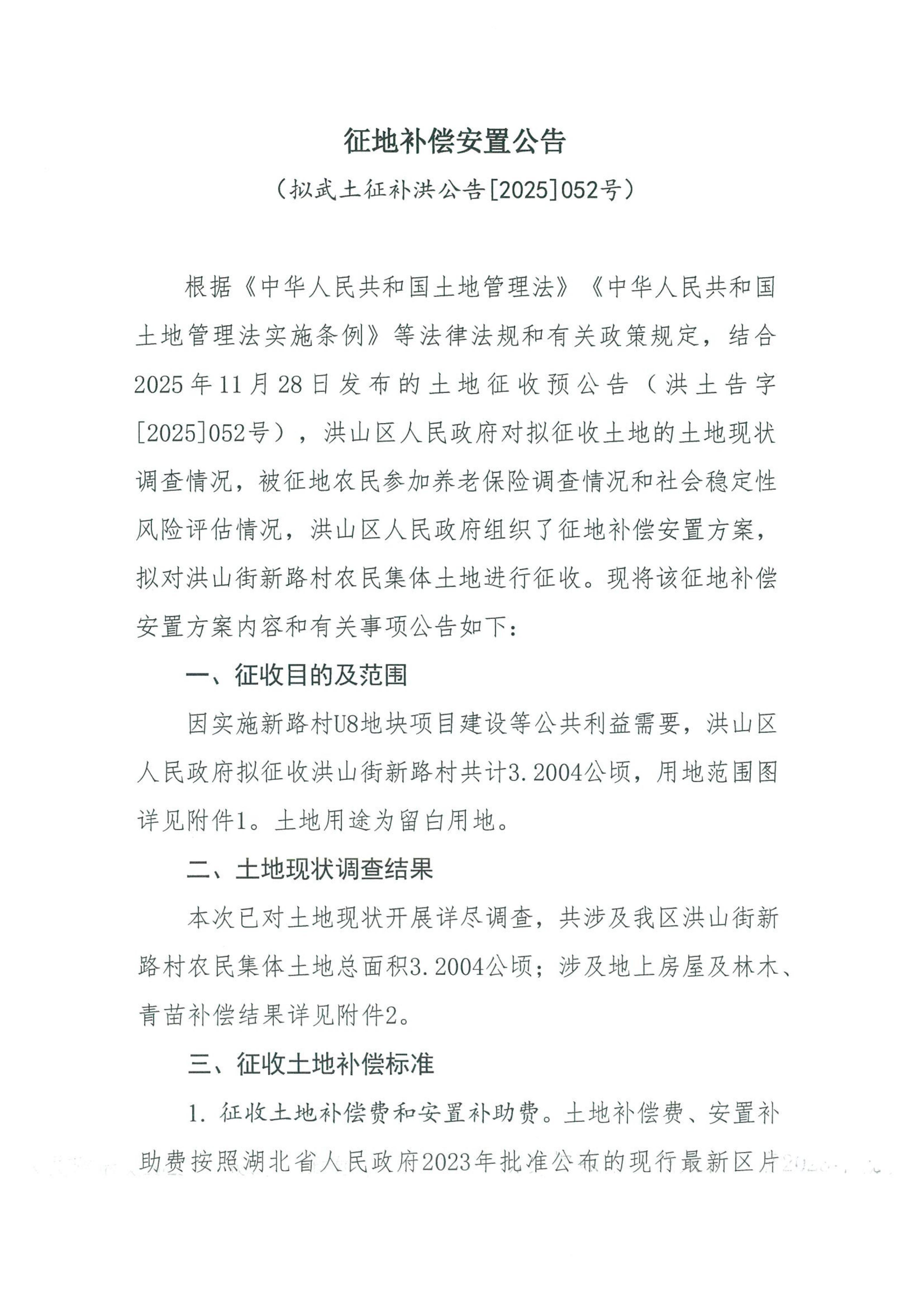 标     题 拟武土征补洪公告[2025]052号征地补偿安置方案公告