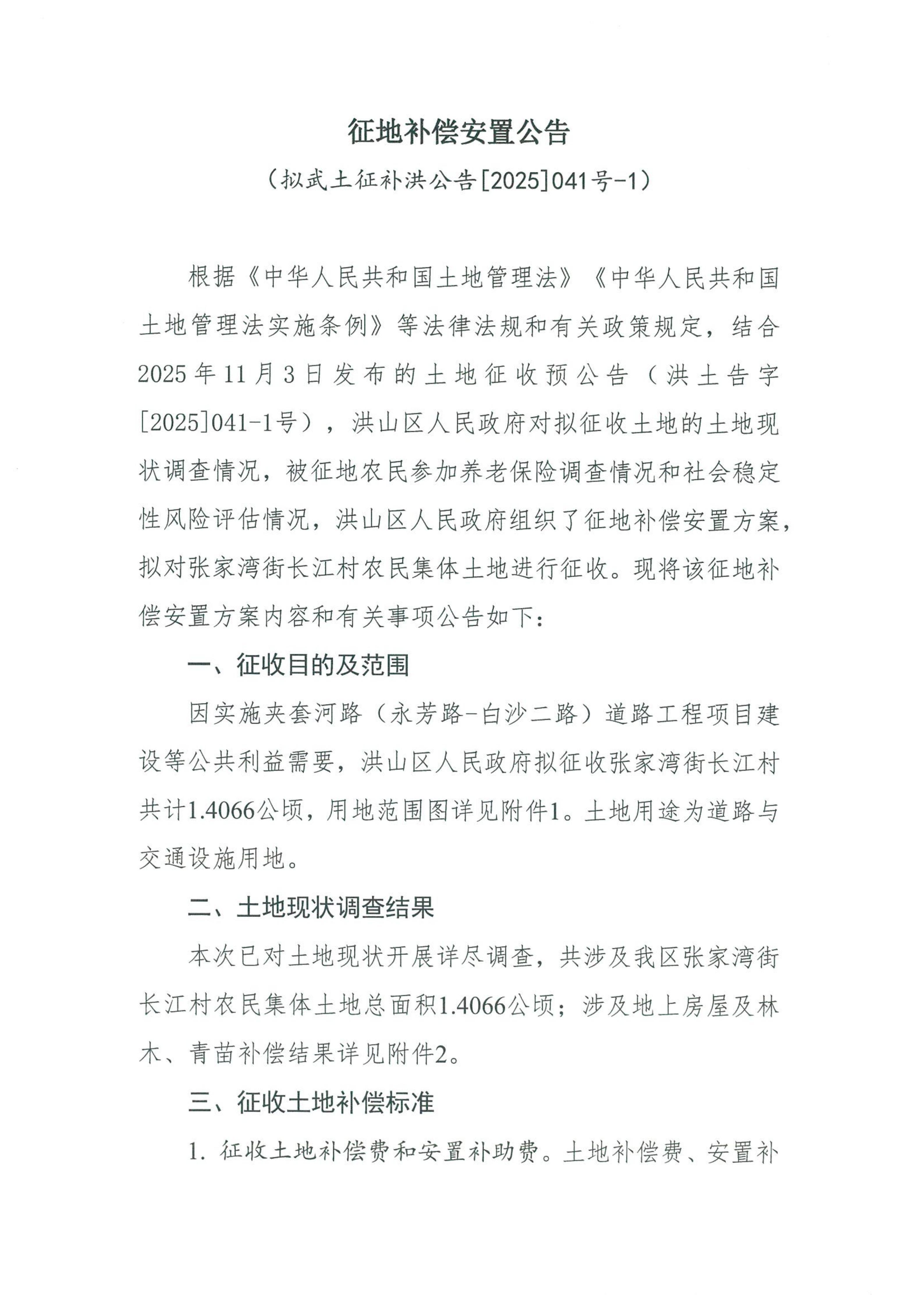 标     题 拟武土征补洪公告[2025]041号-1征地补偿安置方案公告