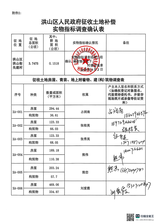 4.本公告期限为30天,公告范围为洪山街先建村所在地的街道、村、村民小组,并已在武汉市洪山区人民政府门户网站公布,公布网址为www.hongshan.gov.cn。