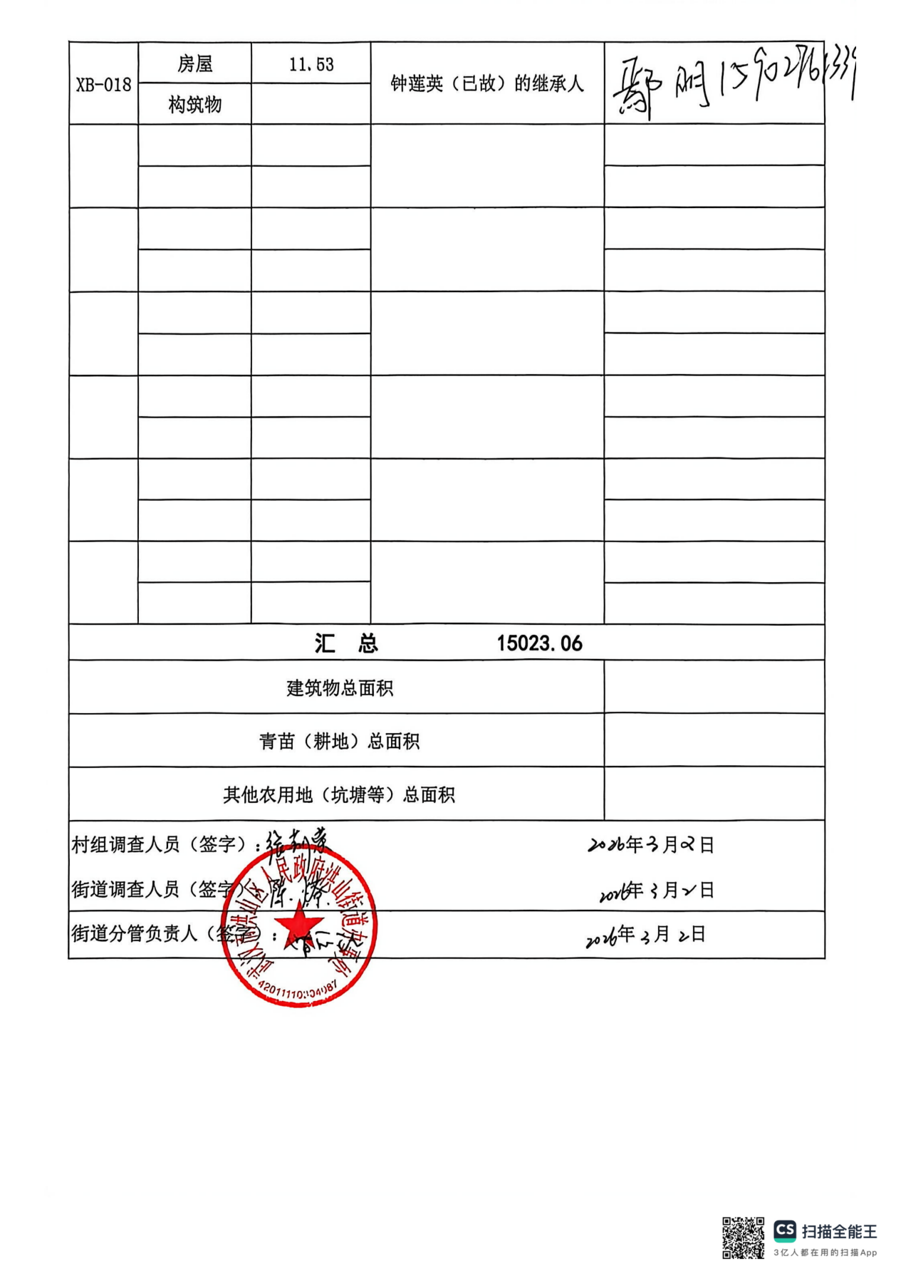 拟征土地权属、面积、地类及农村村民住宅、其他地上附着物和青苗等的权属、种类、数量等详见《拟征收土地现状调查结果的确认表》。