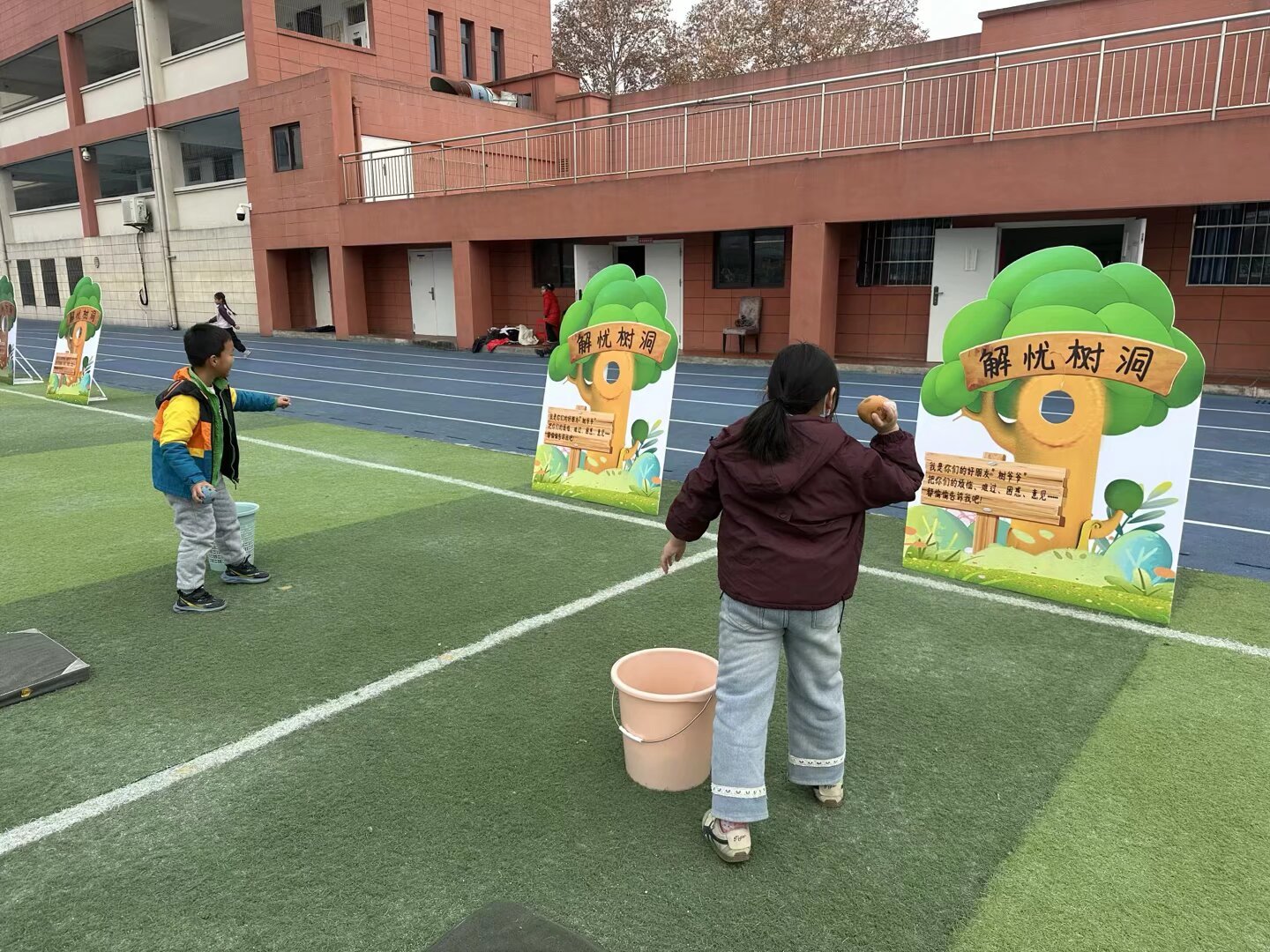 游戏协作环节成为情绪释放的重要载体。一至三年级开展“情绪接力赛”,通过“跃障小先锋”“情绪小超人”等四大趣味关卡,学生在互动中表达情绪、强化积极心理暗示,在团队协作中感受陪伴温暖,更通过投掷“烦恼沙包”入“情绪树洞”释放压力。