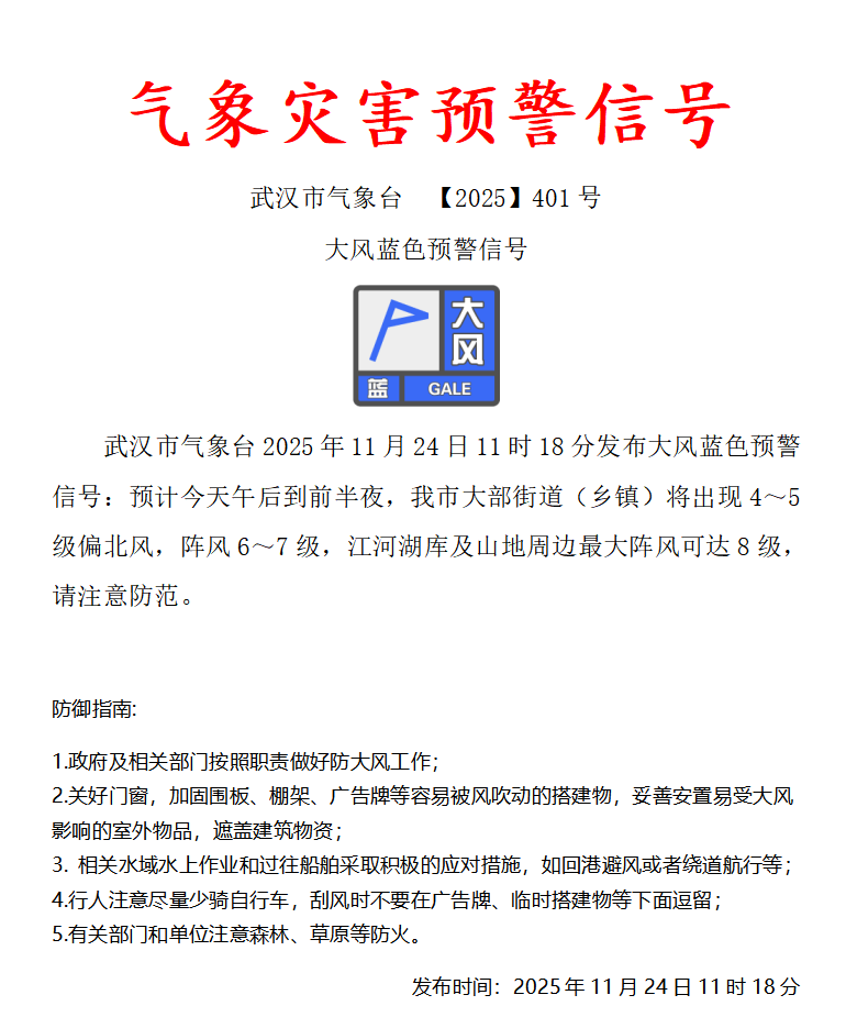 发布时间:2025-11-24 11:30 |  来源:武汉市气象台