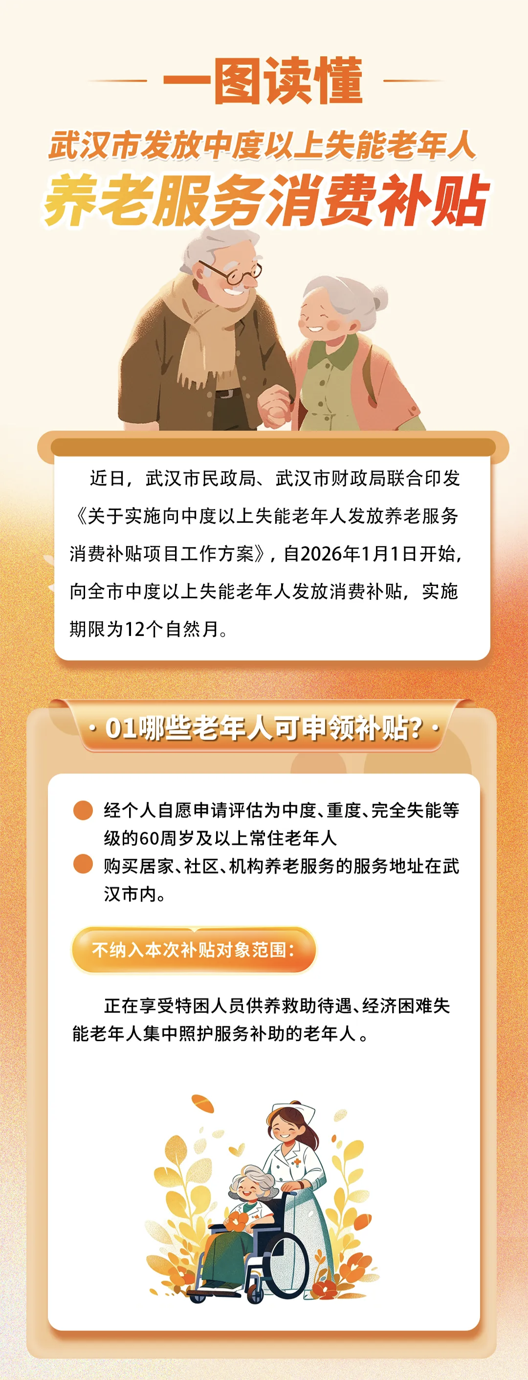 武汉市发放中度以上失能老年人养老服务消费补贴