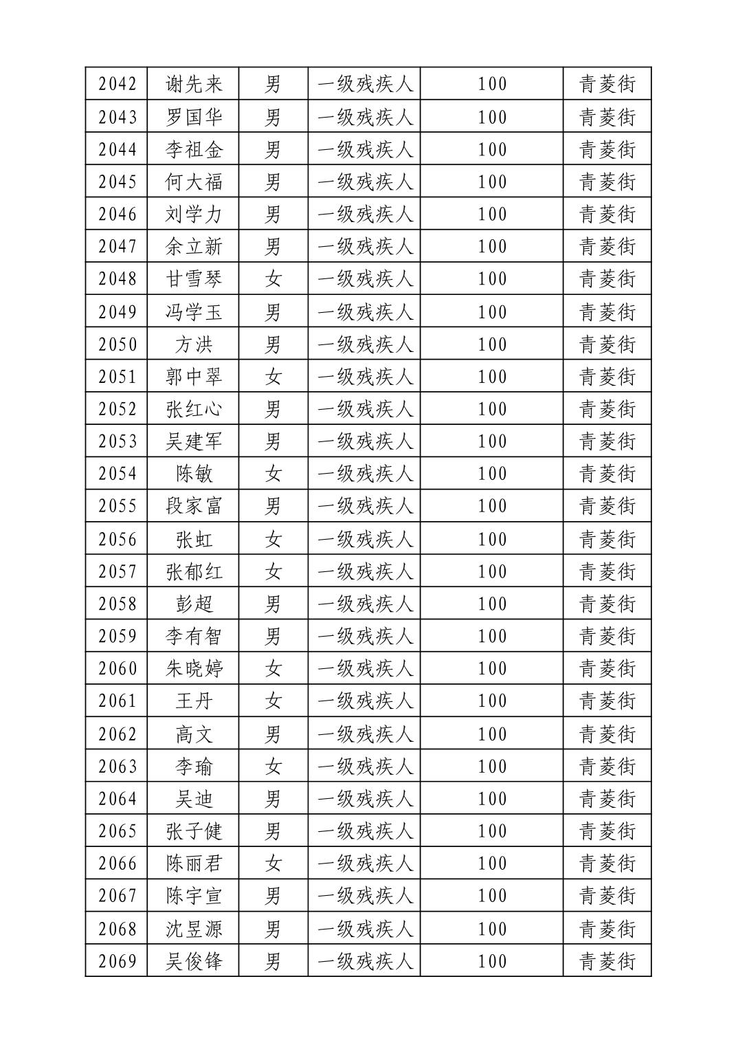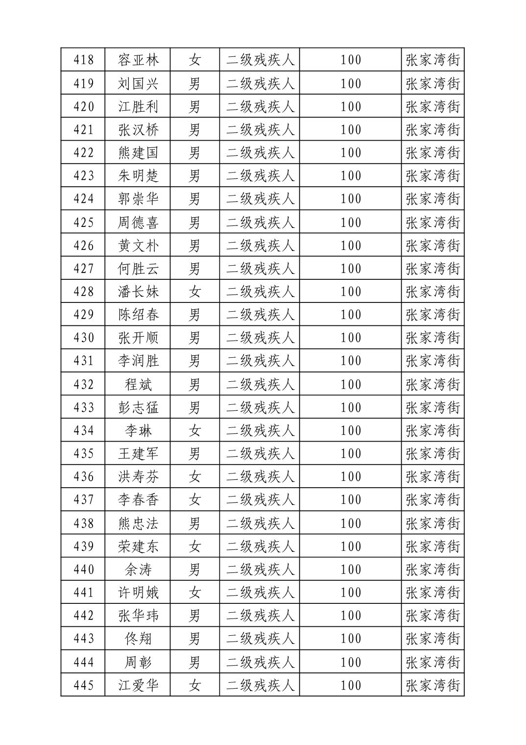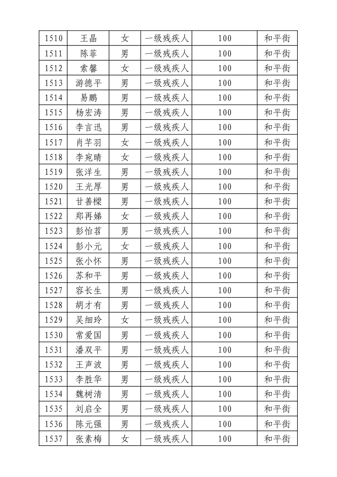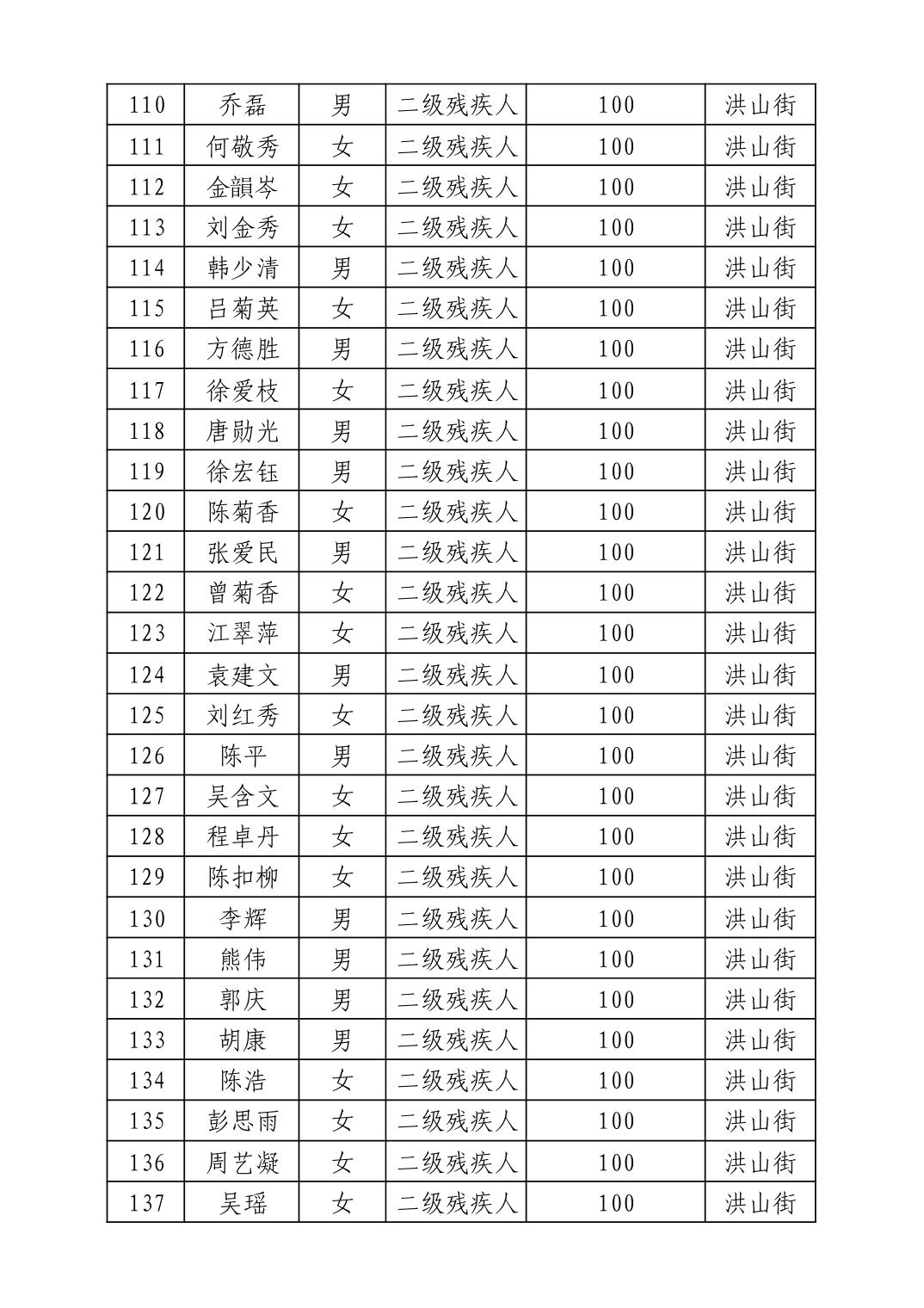 2025年3月武汉市洪山区重度残疾人护理补贴发放表