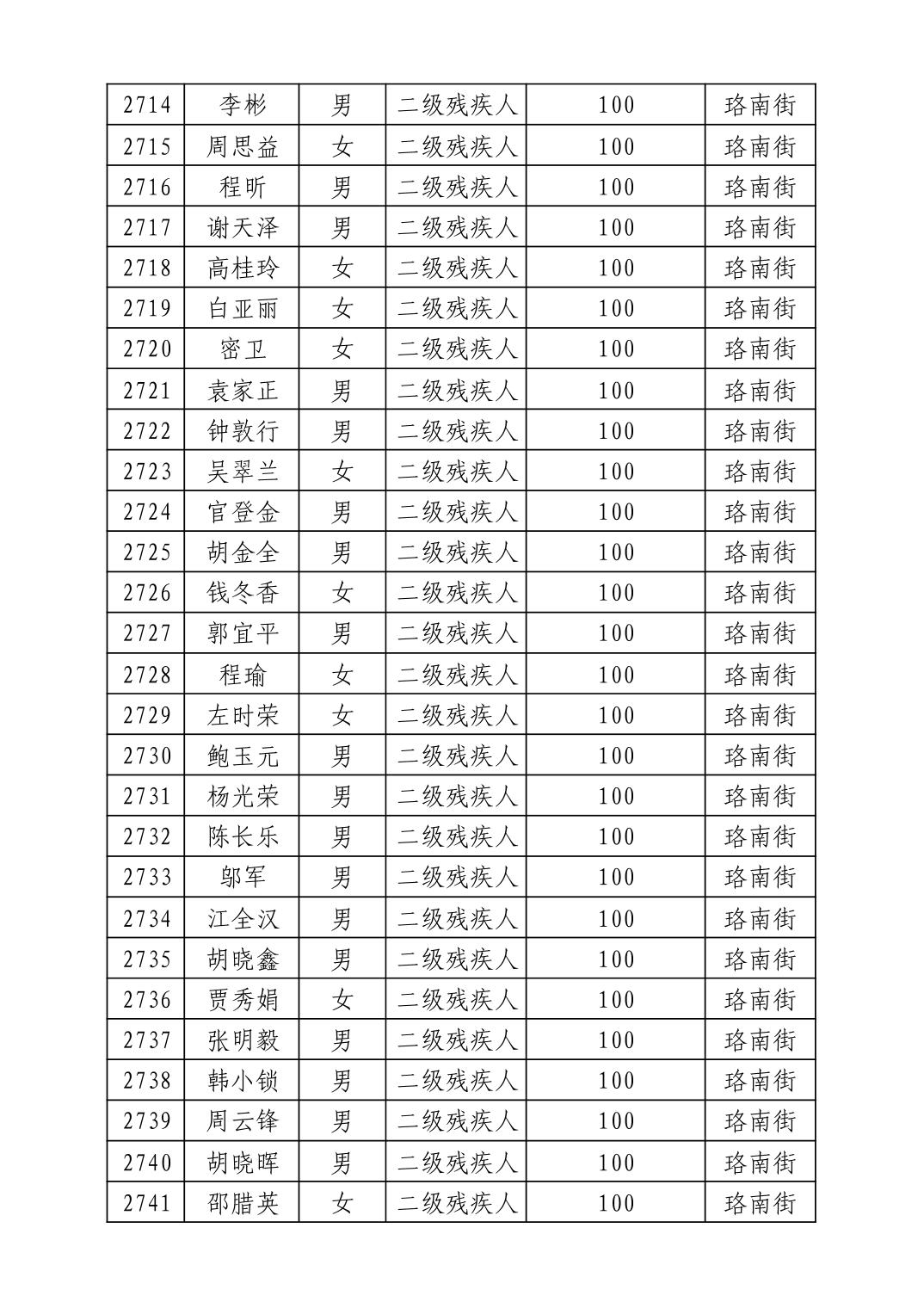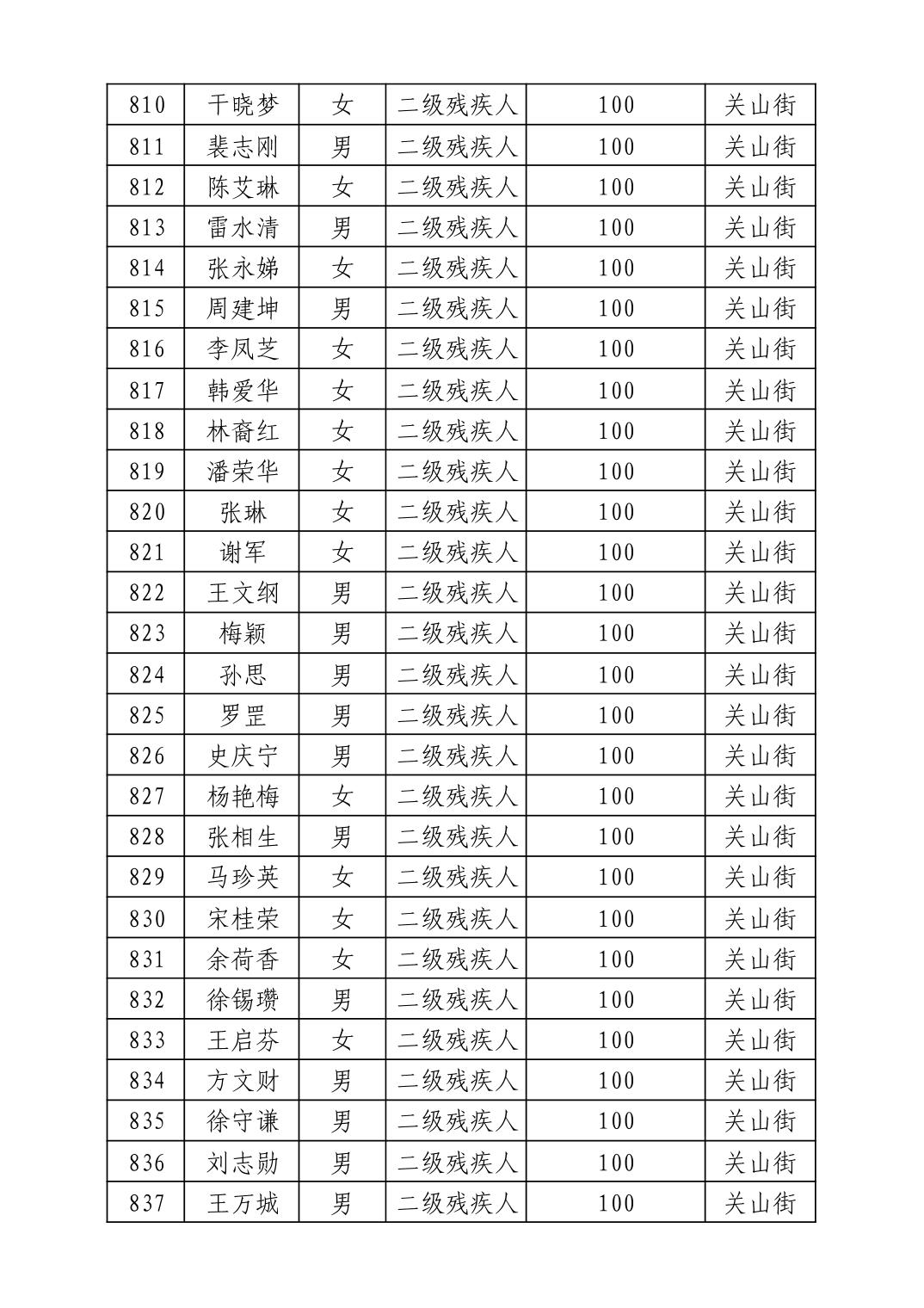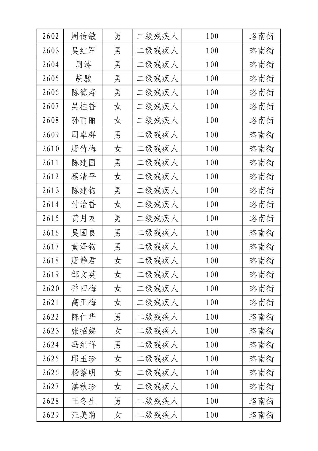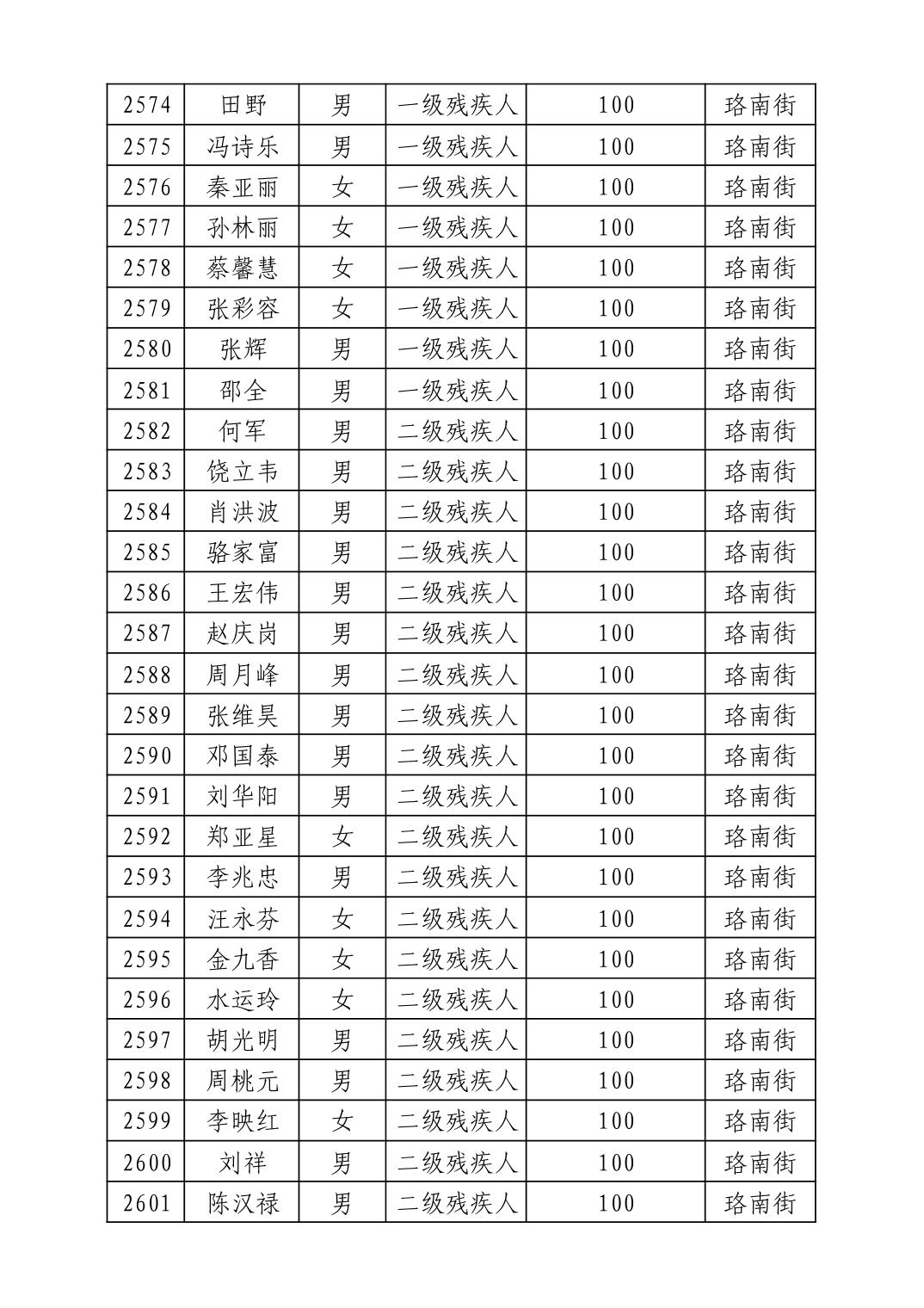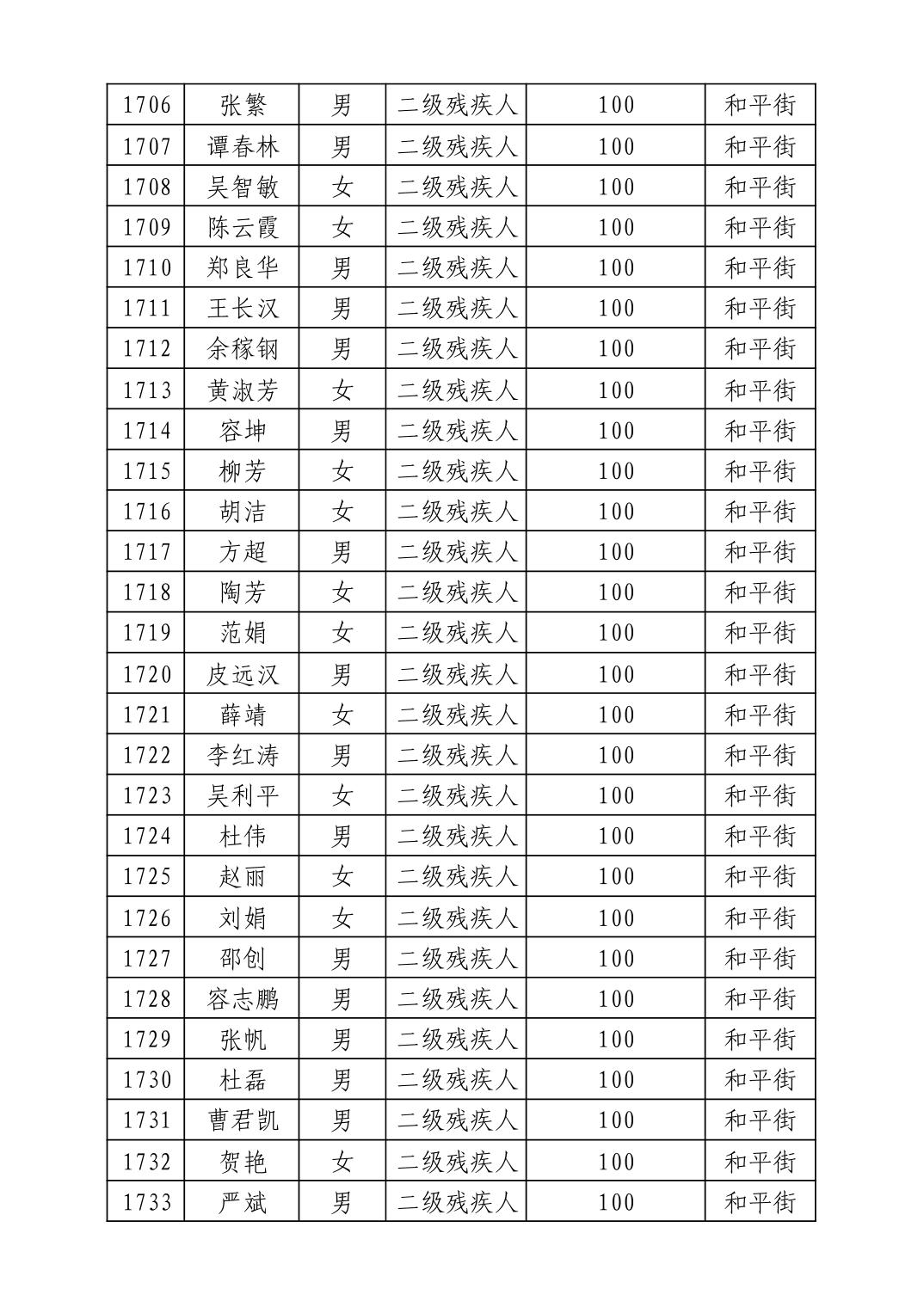 2025年3月武汉市洪山区重度残疾人护理补贴发放表