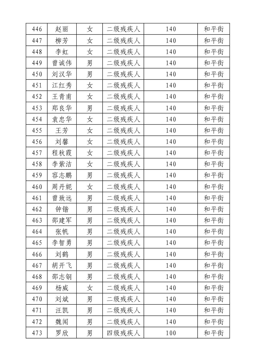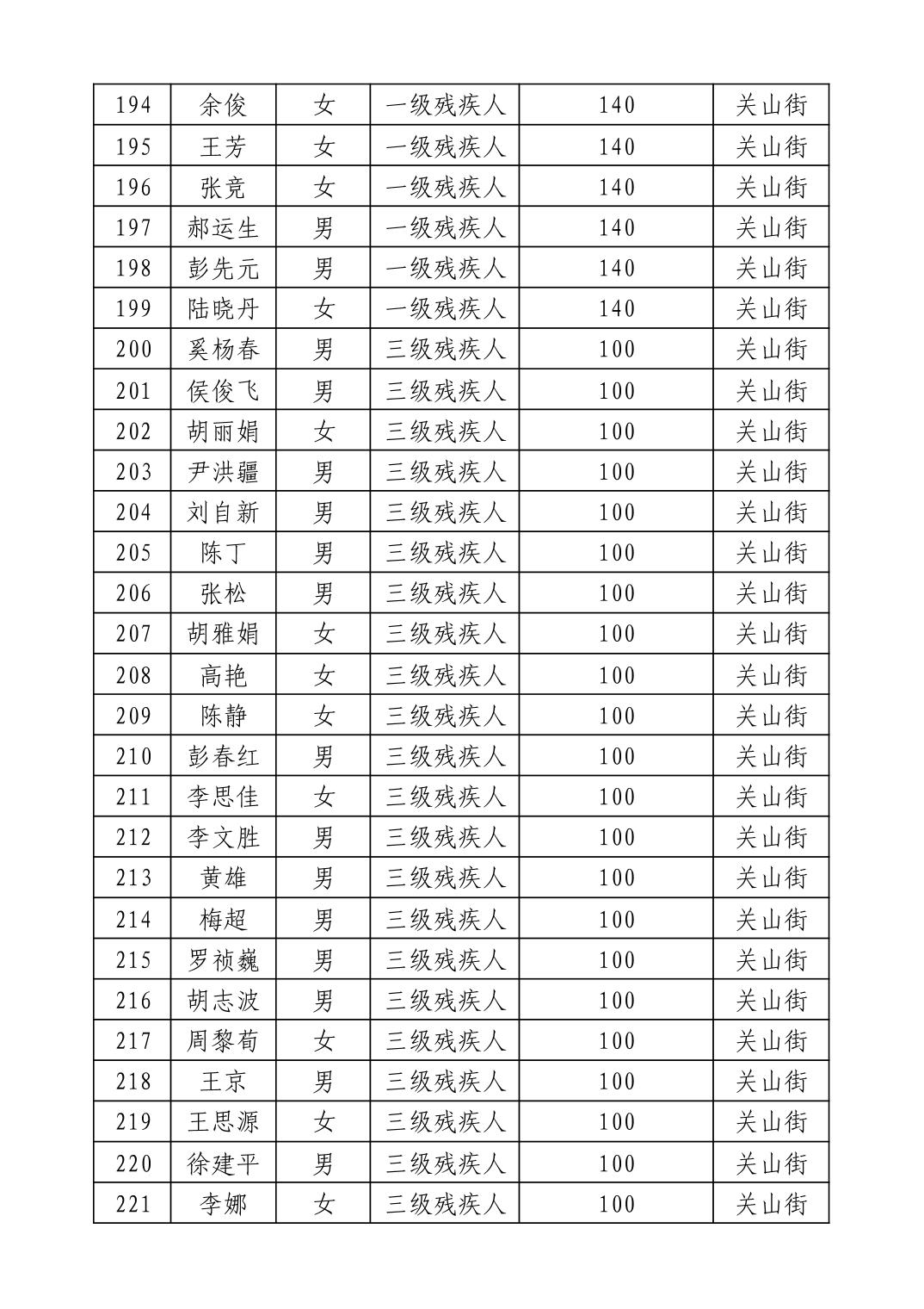 2025年4月武汉市洪山区困难残疾人生活补贴发放表
