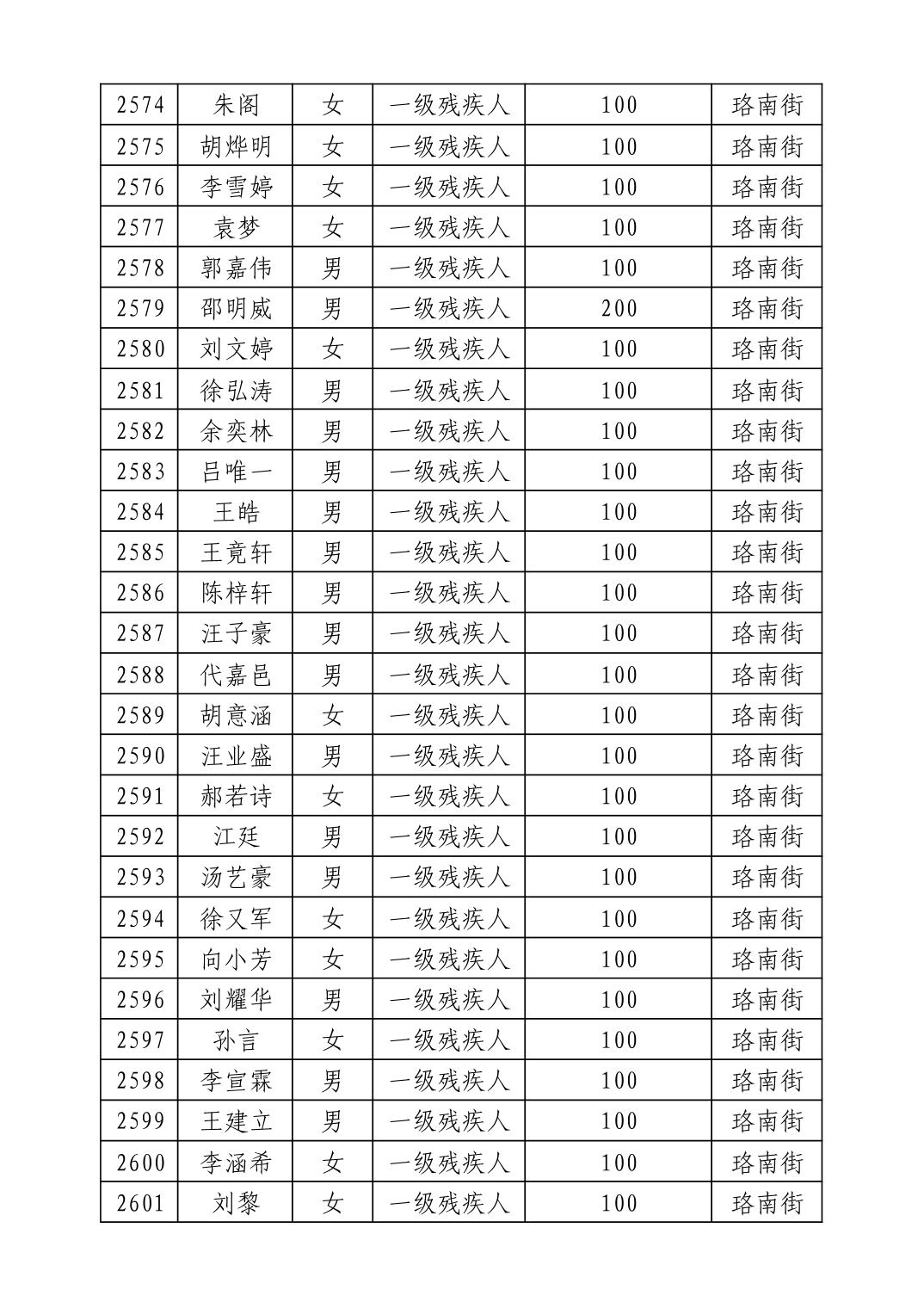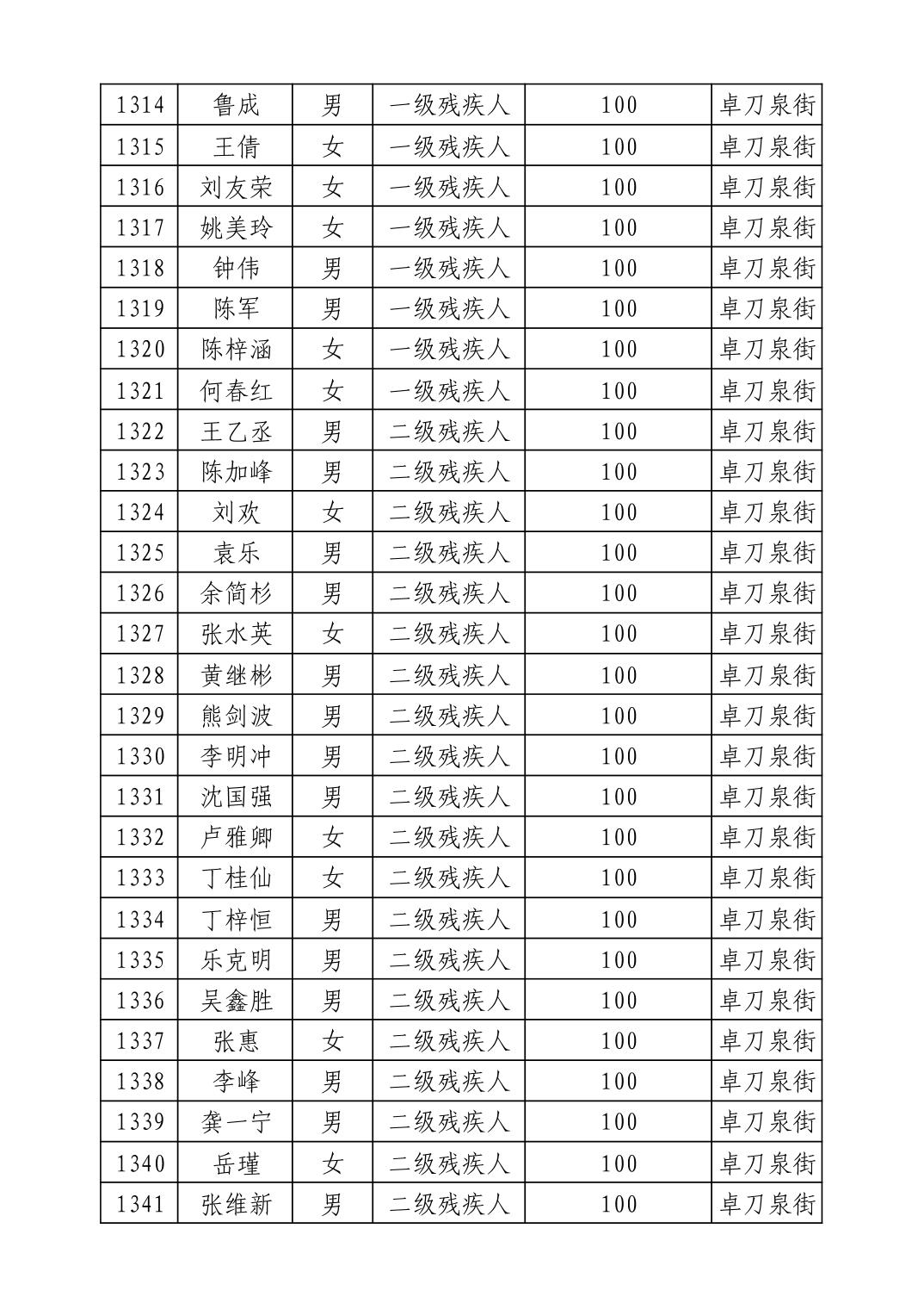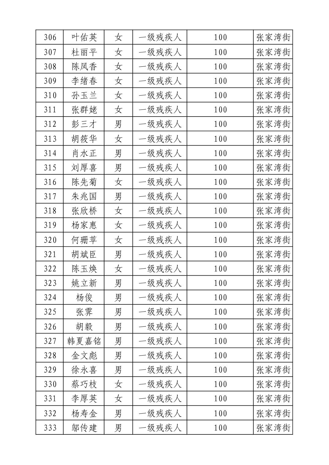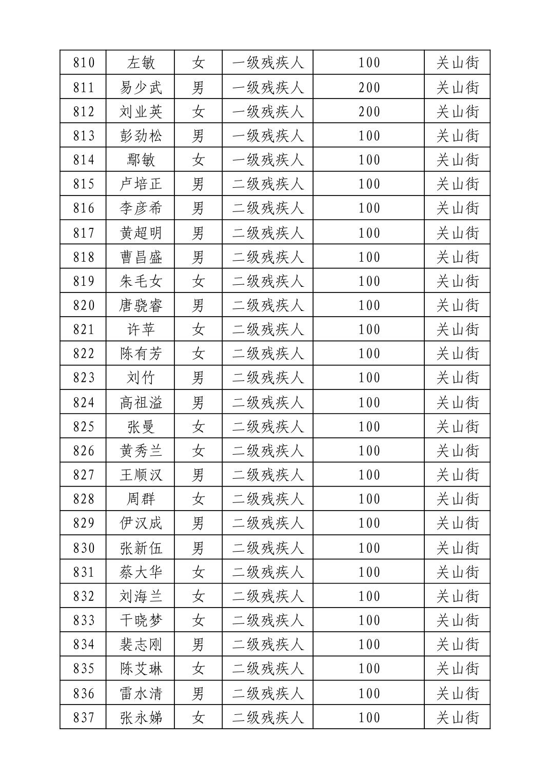 2025年6月武汉市洪山区重度残疾人护理补贴发放表