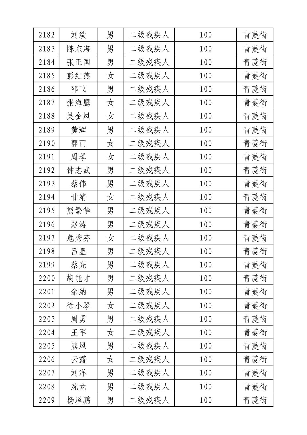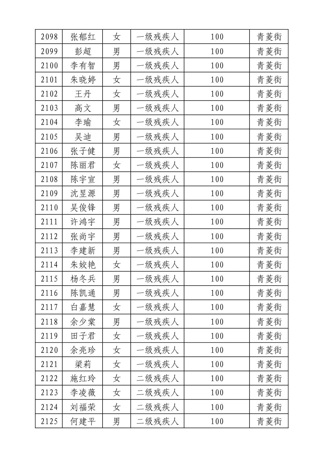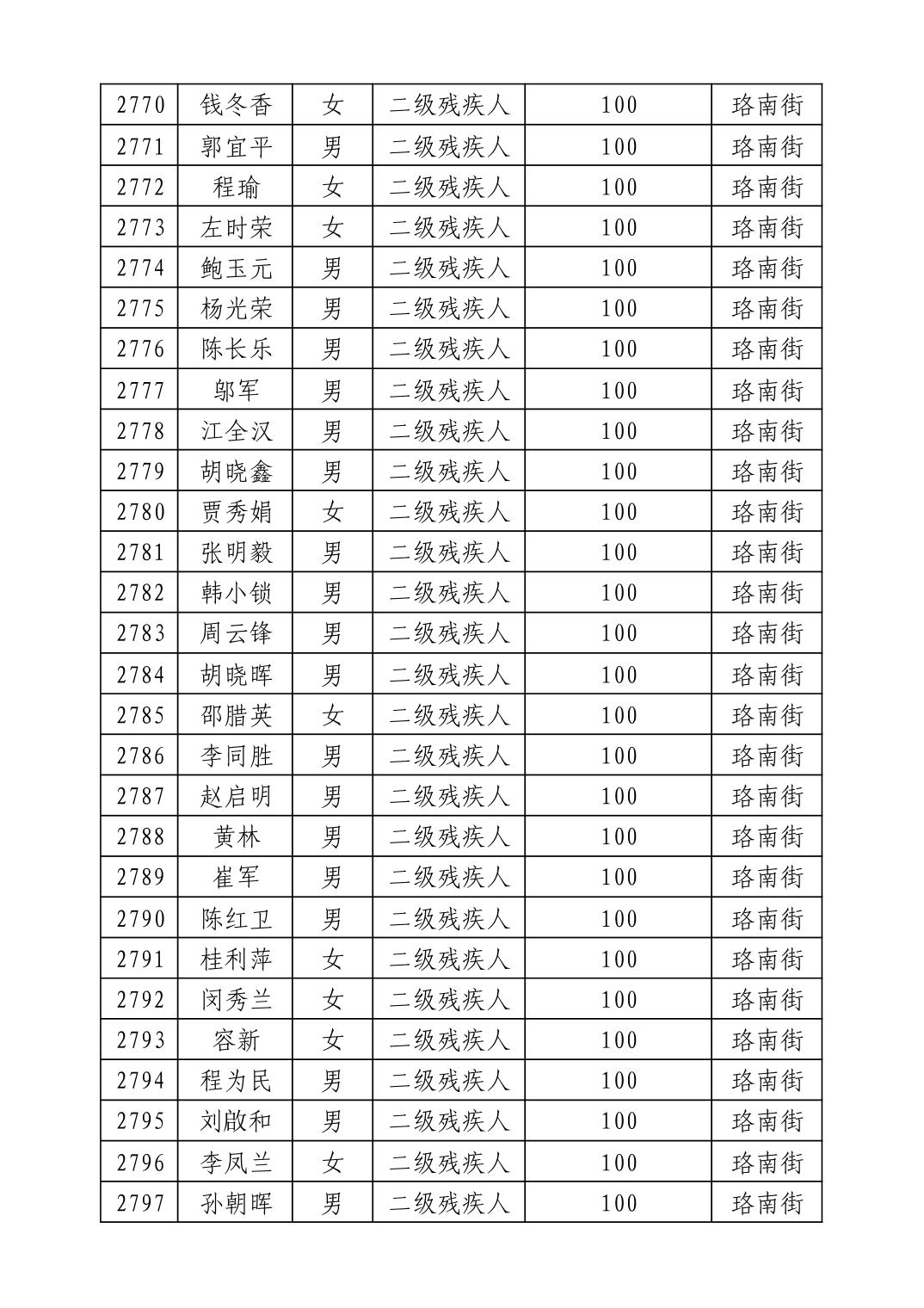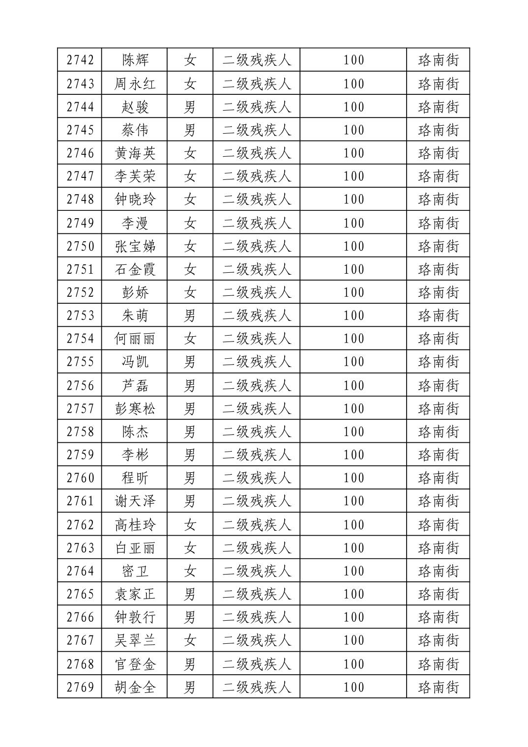 2025年6月武汉市洪山区重度残疾人护理补贴发放表