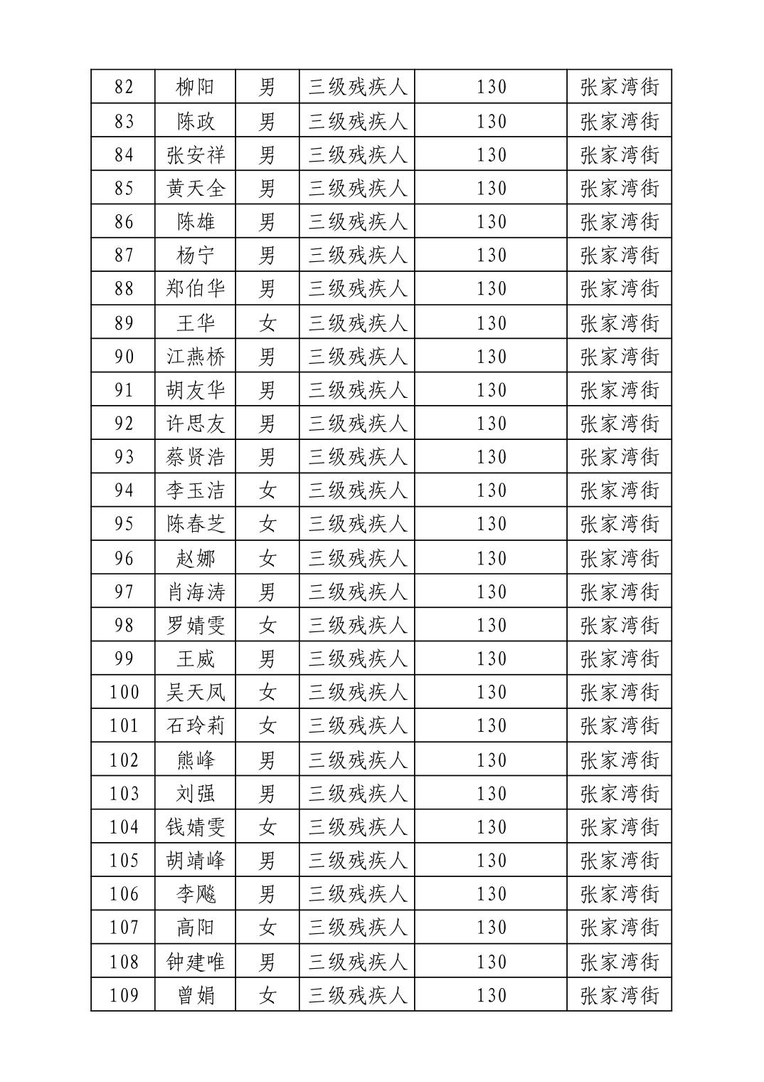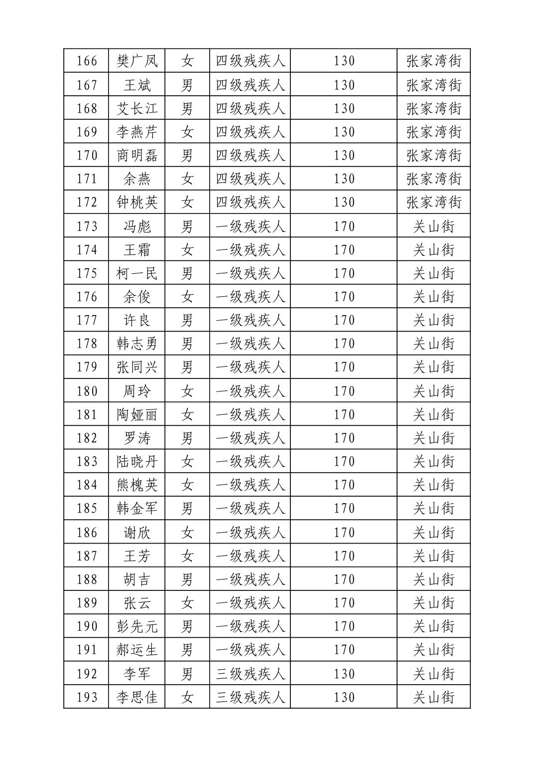 2025年8月武汉市洪山区困难残疾人生活补贴发放表