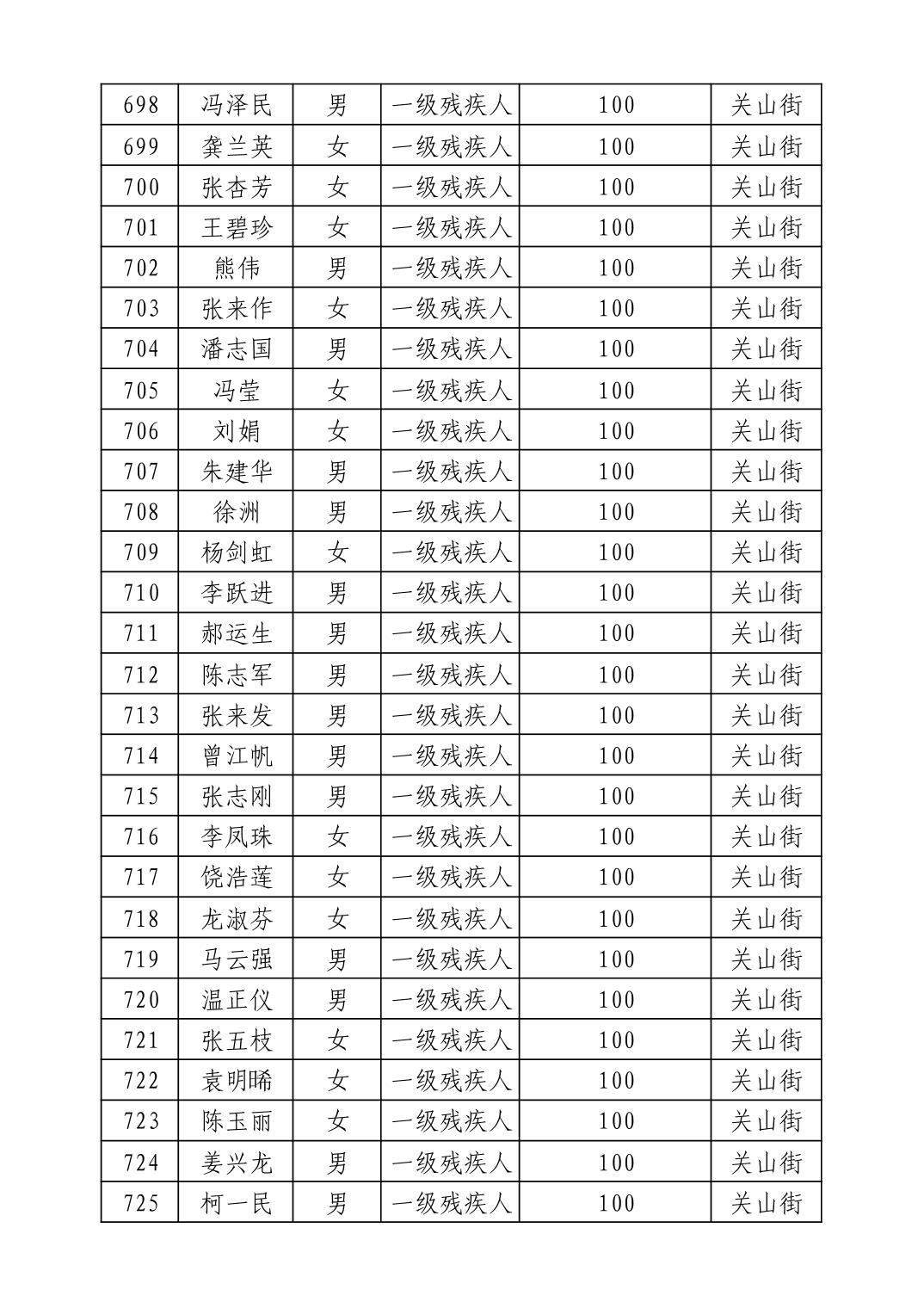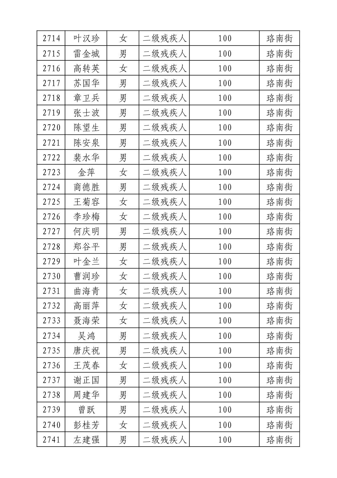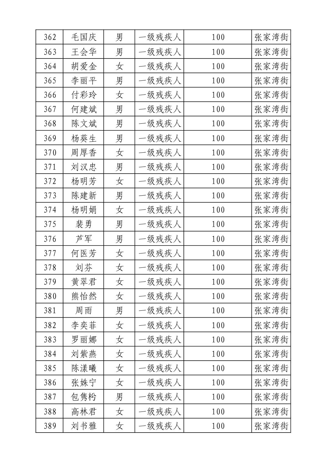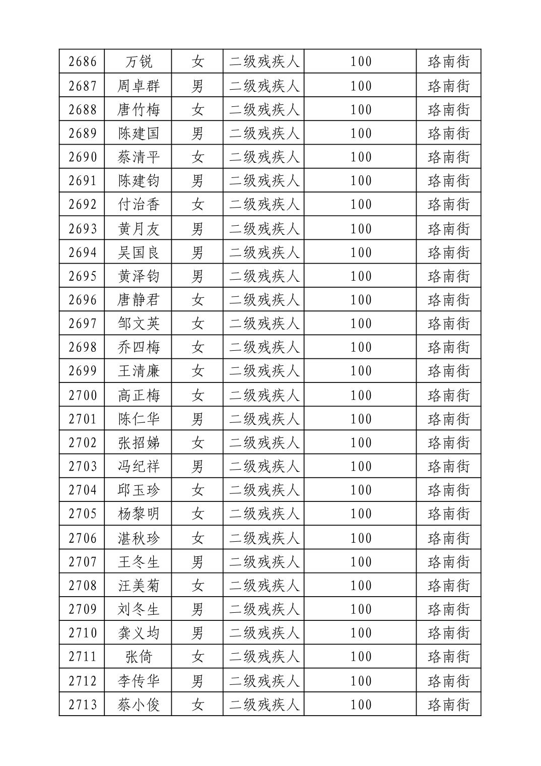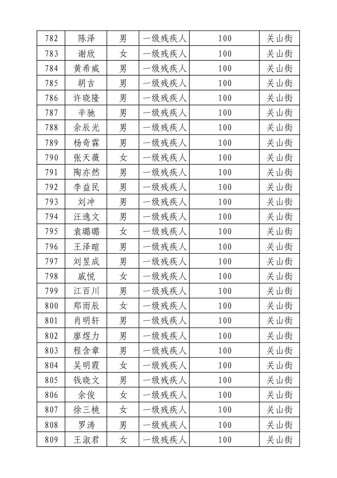 2025年9月武汉市洪山区重度残疾人护理补贴发放表