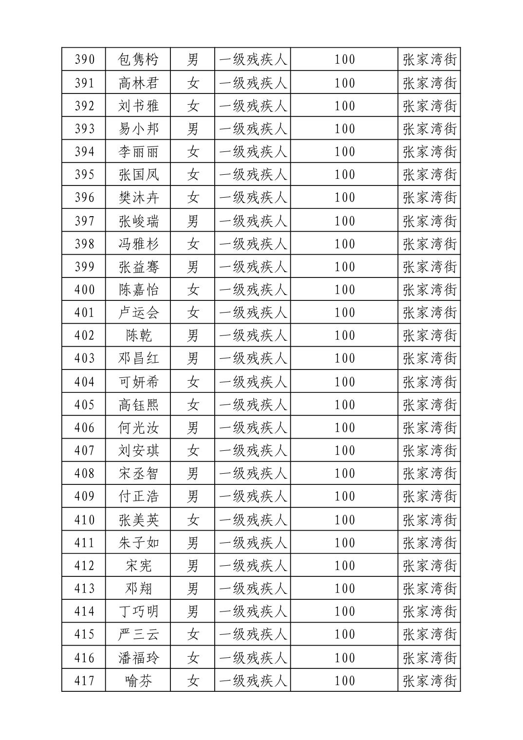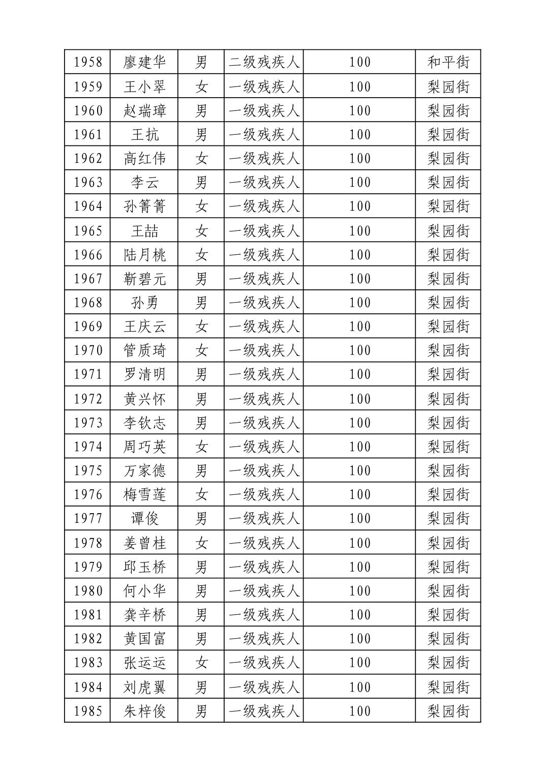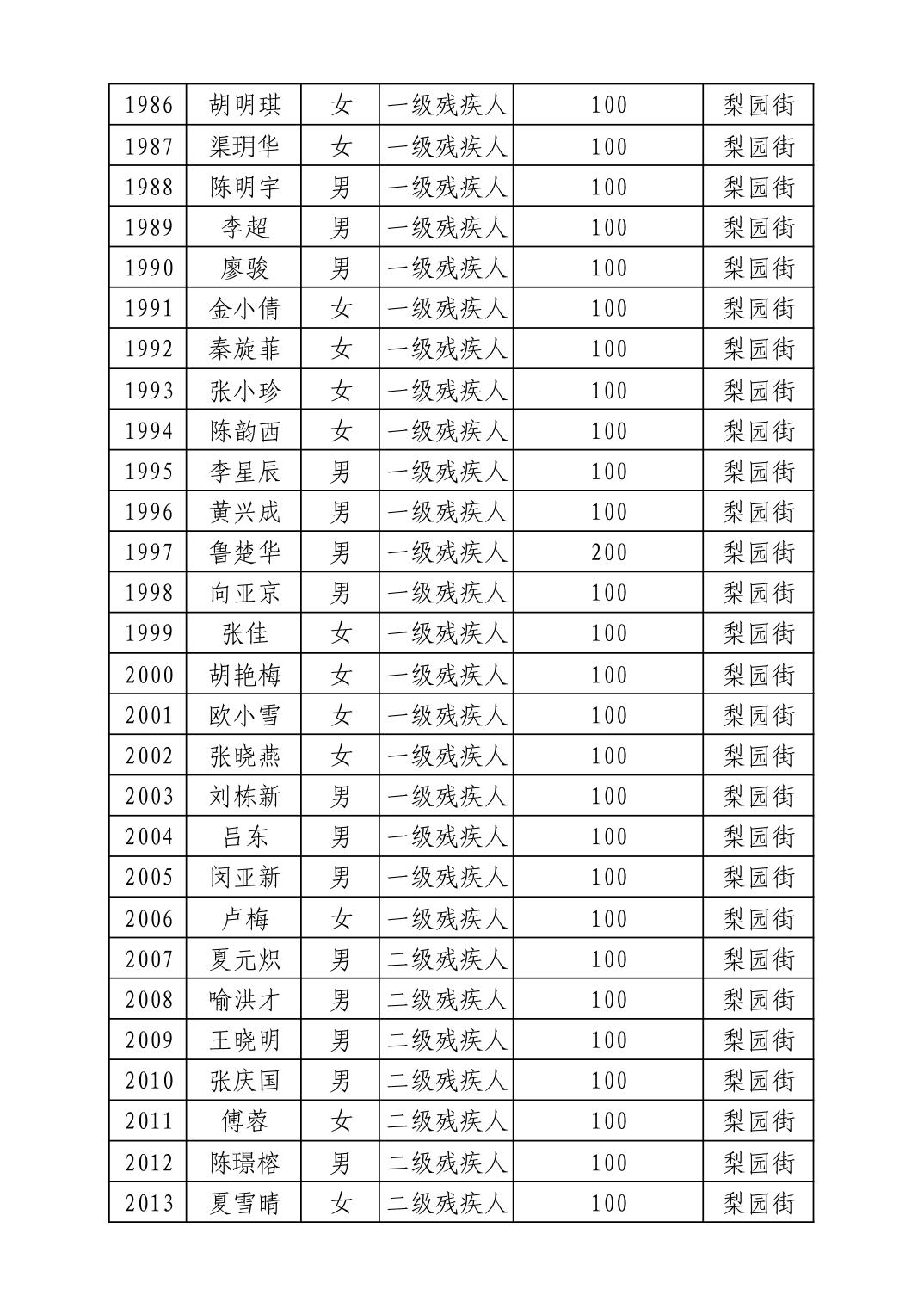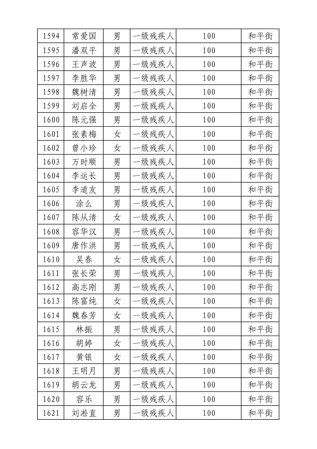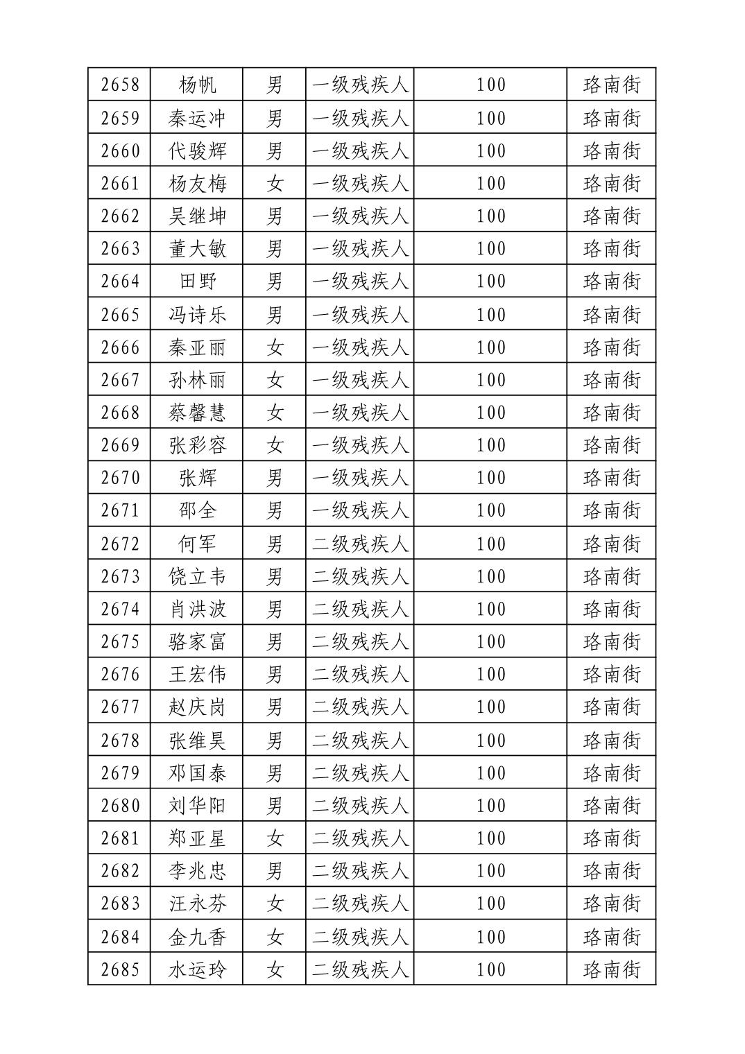 2025年10月武汉市洪山区重度残疾人护理补贴发放表