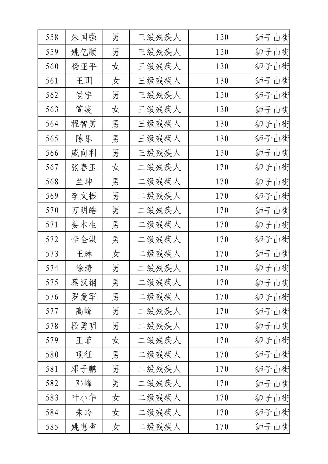 2025年11月武汉市洪山区困难残疾人生活补贴发放表