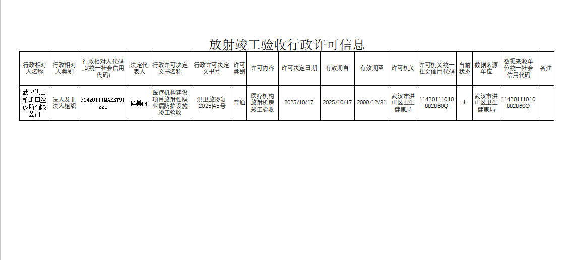 放射竣工验收行政许可信息20251017