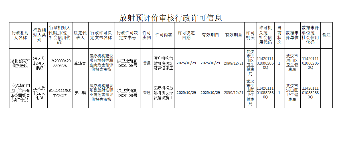 标     题 放射预评价行政许可信息20251029
