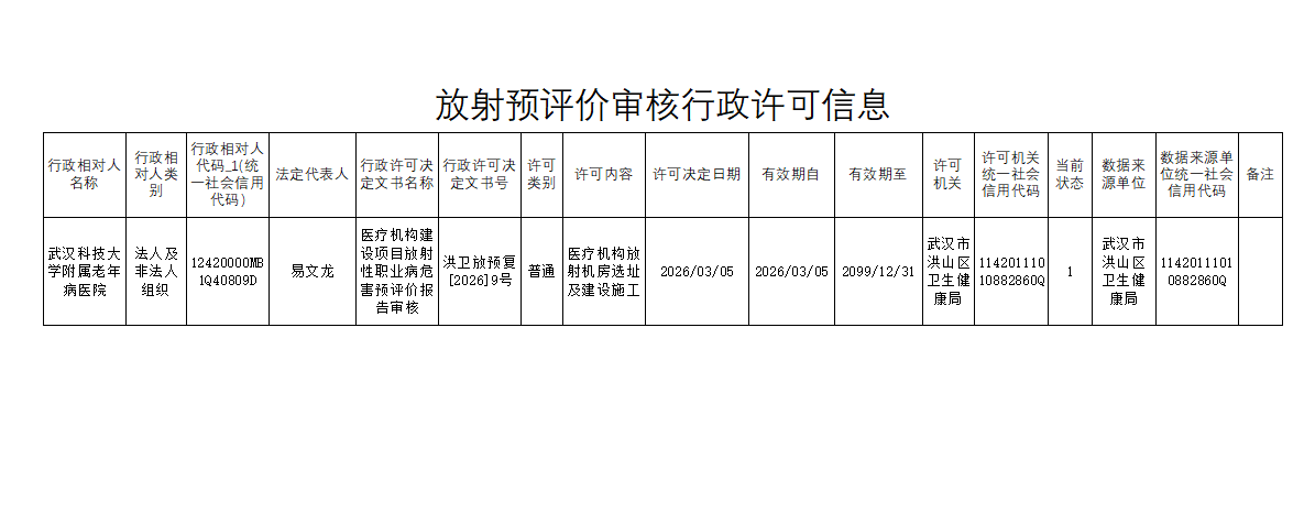 标     题 放射预评价行政许可信息20260305