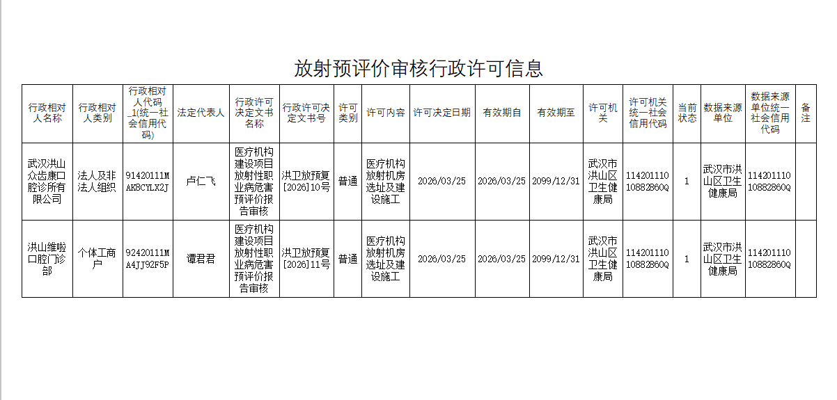 标     题 放射预评价行政许可信息20260325