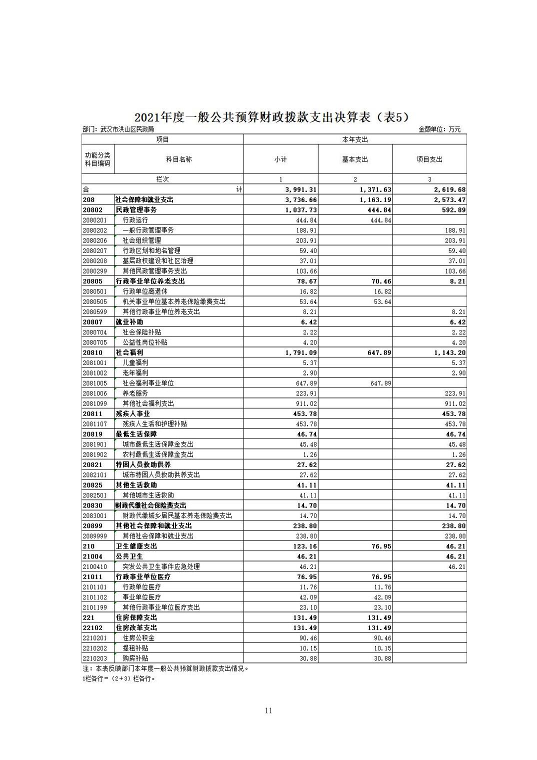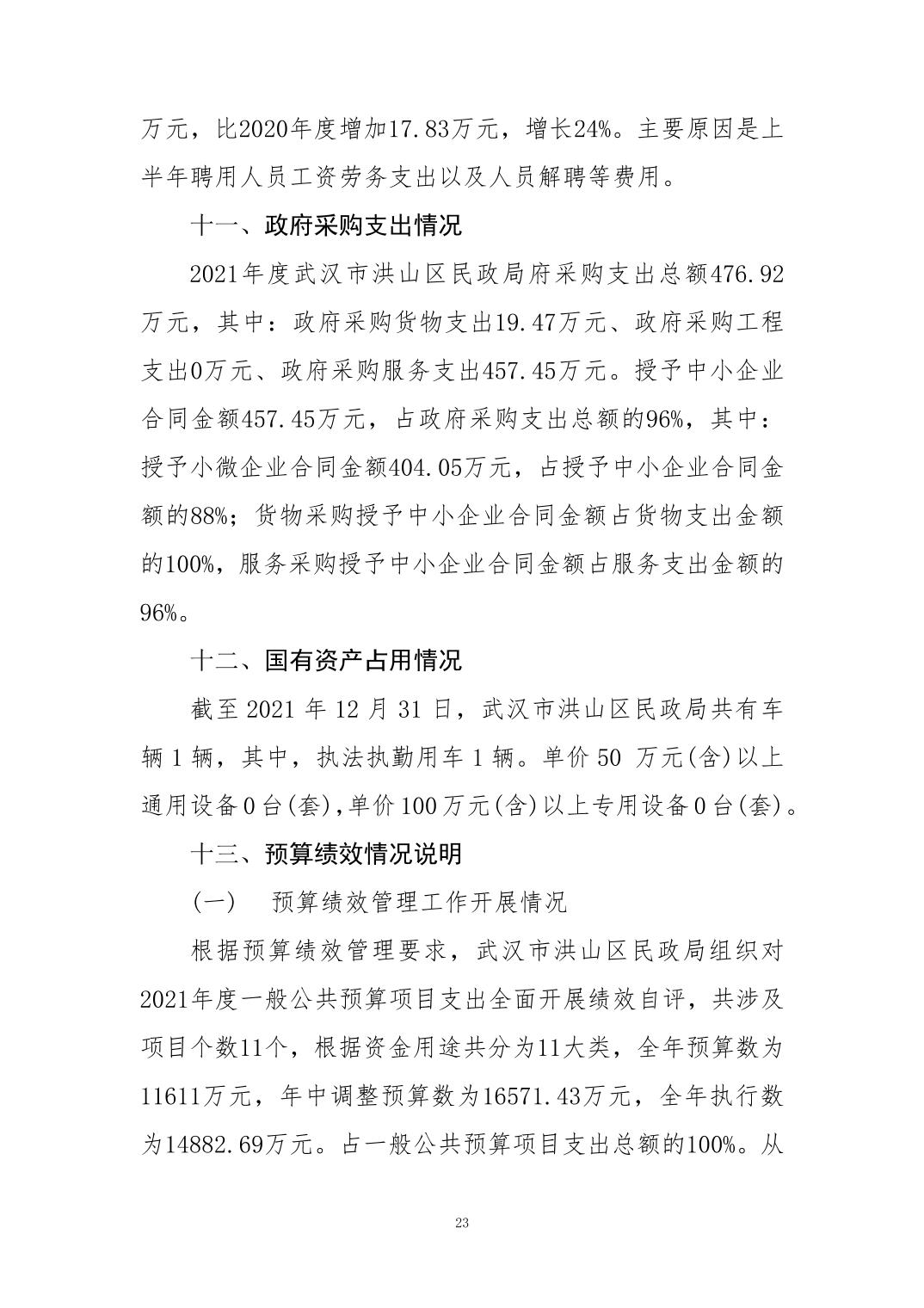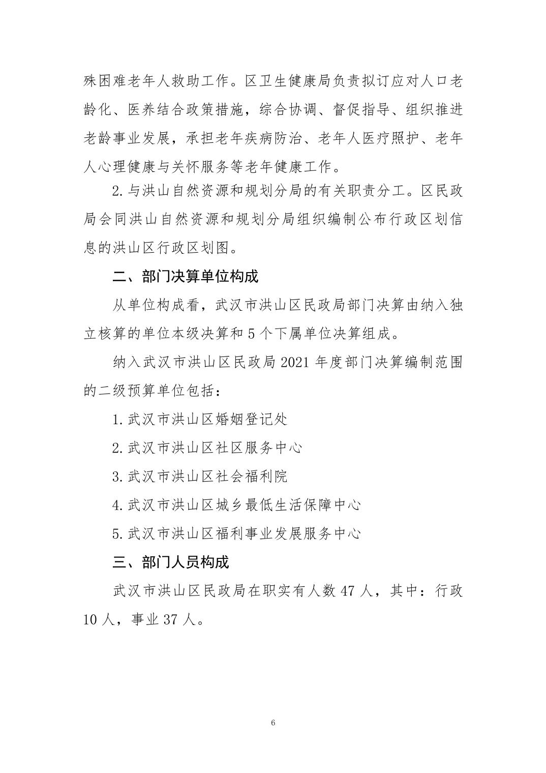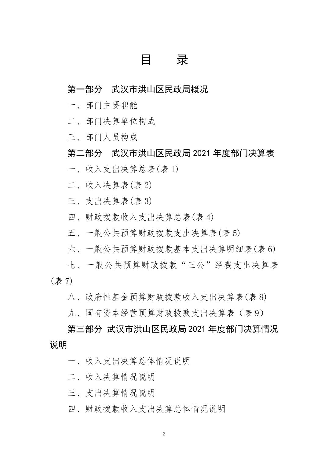 名 称:2021年度武汉市洪山区民政局部门决算