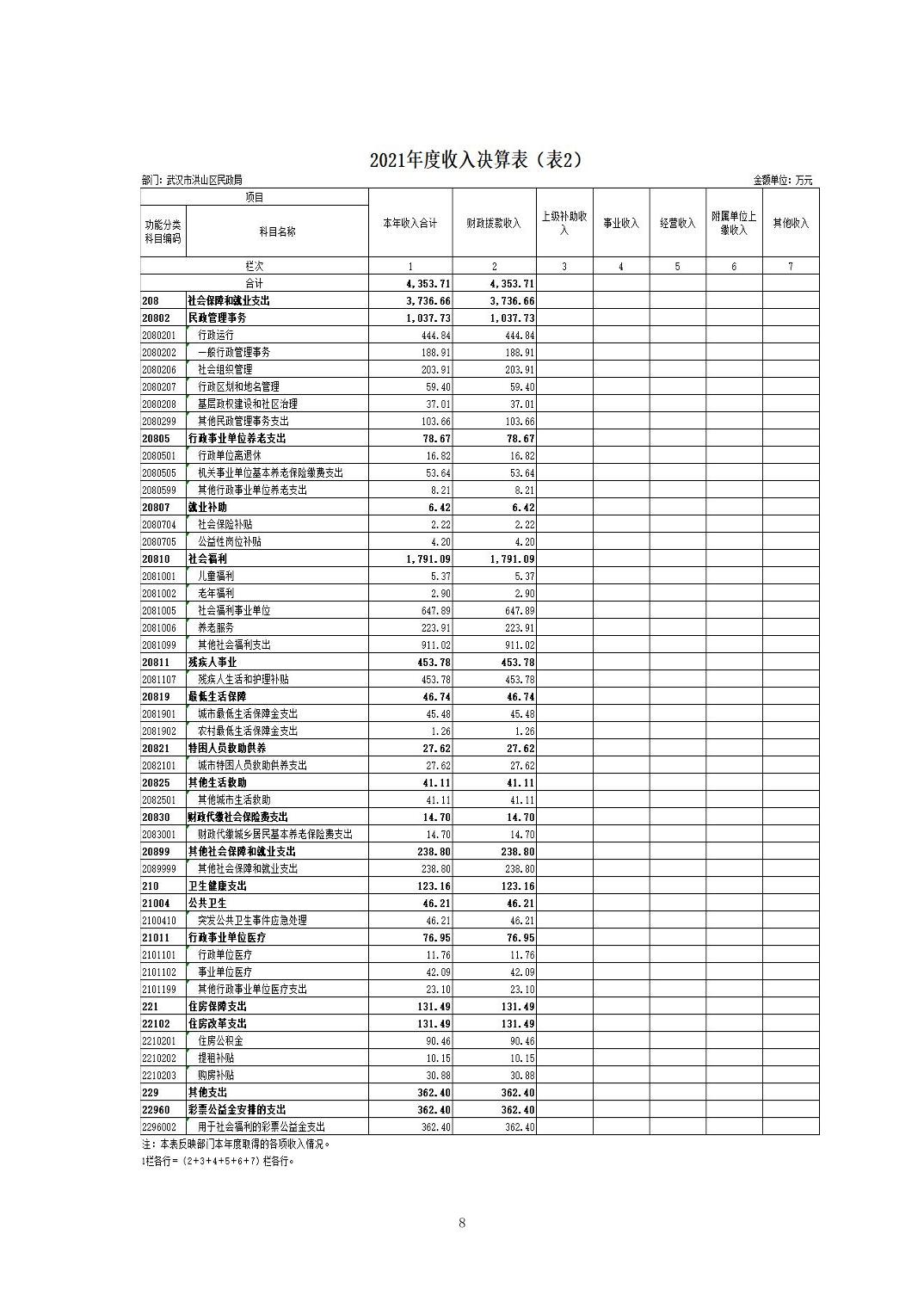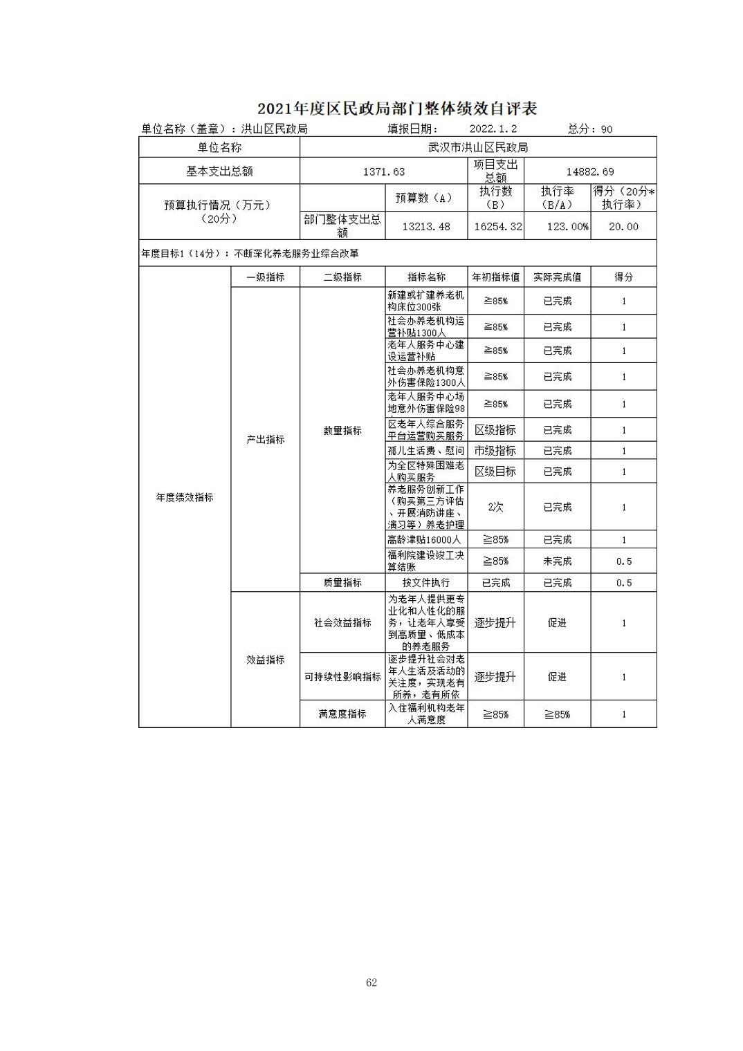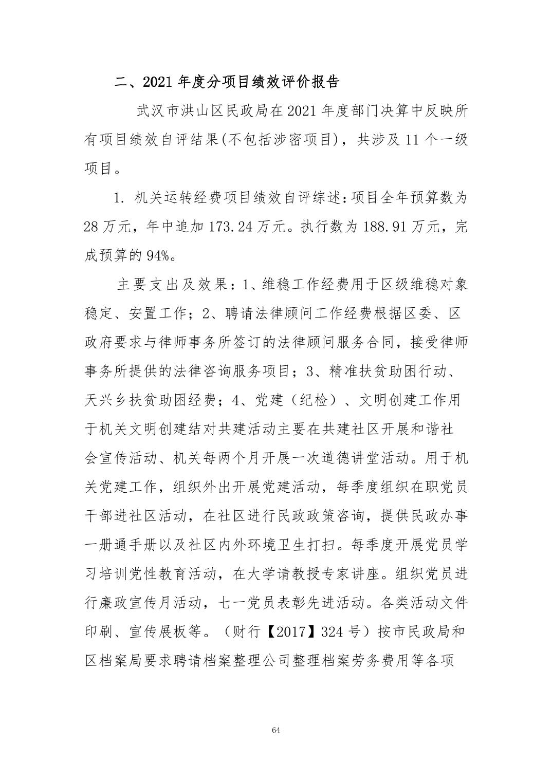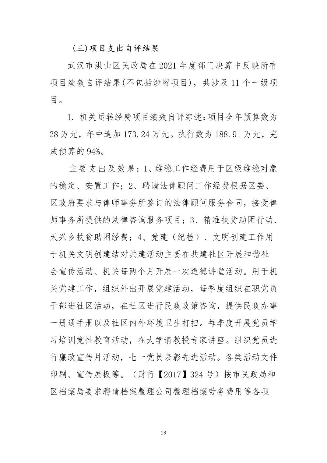名 称:2021年度武汉市洪山区民政局部门决算