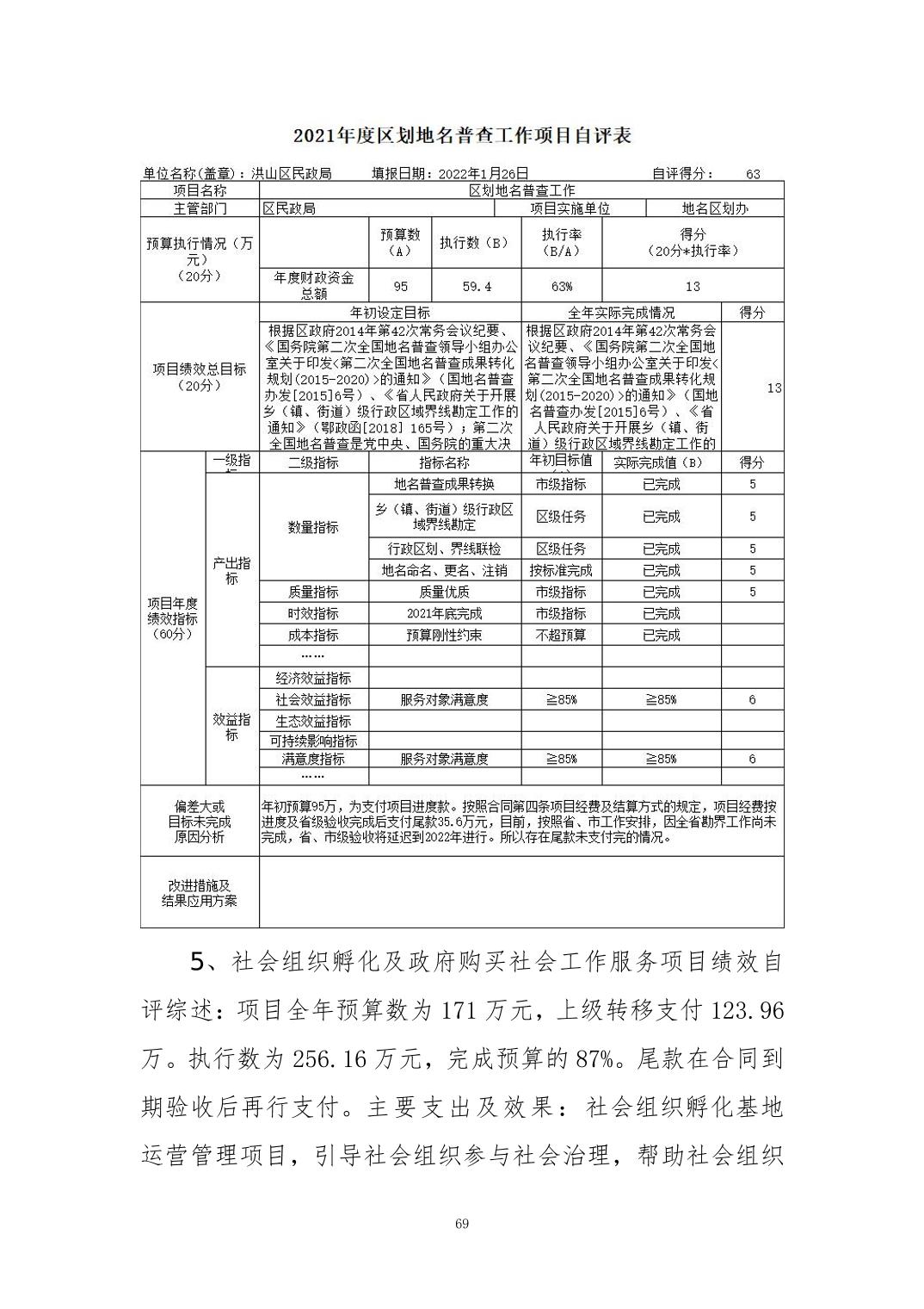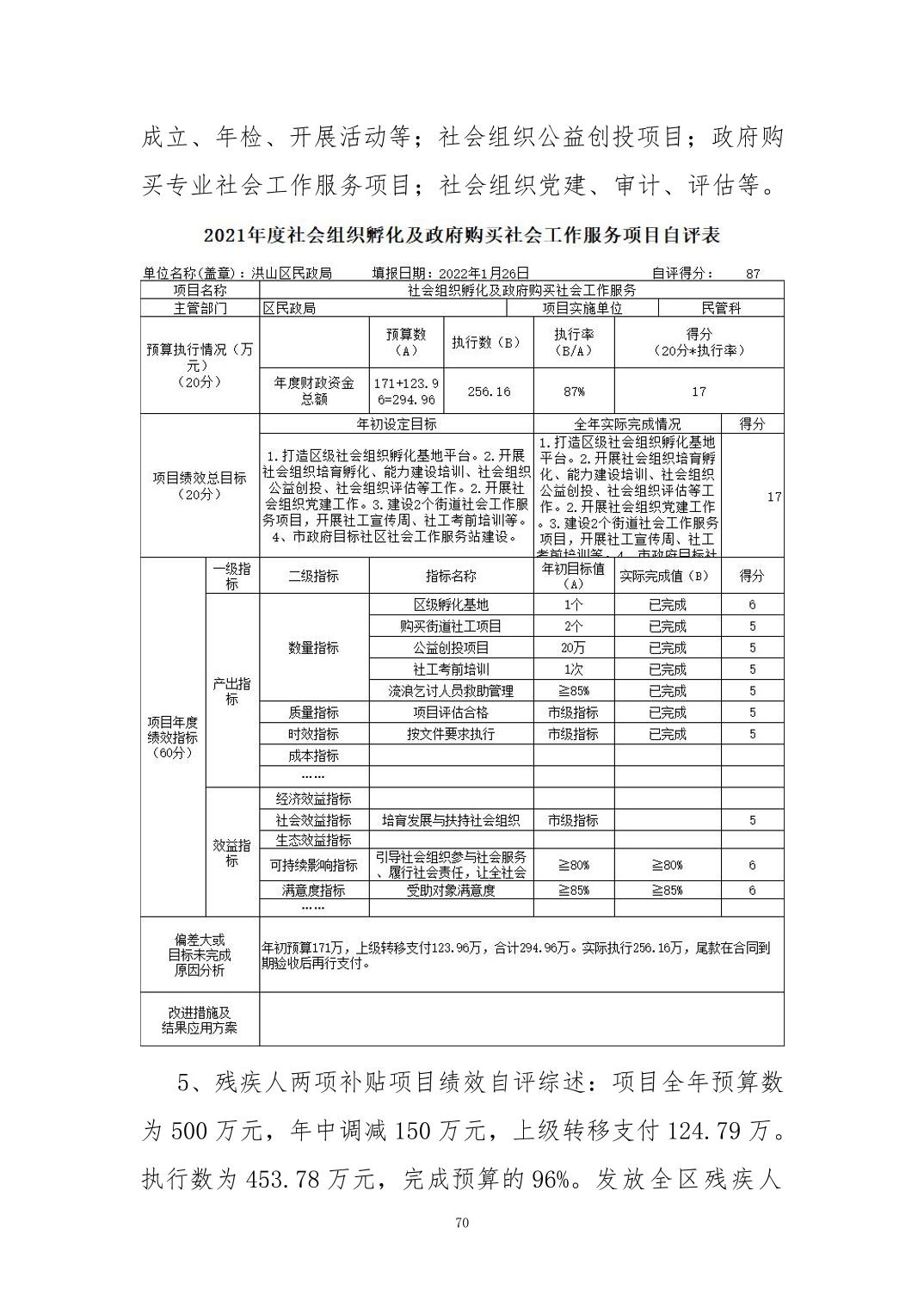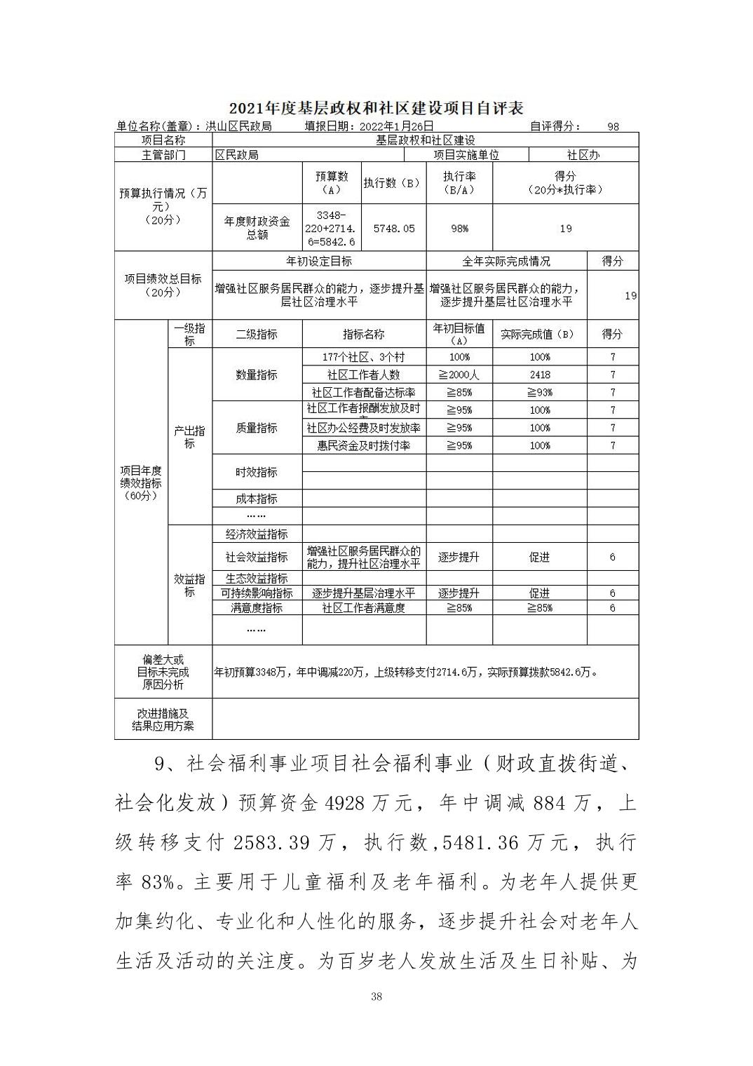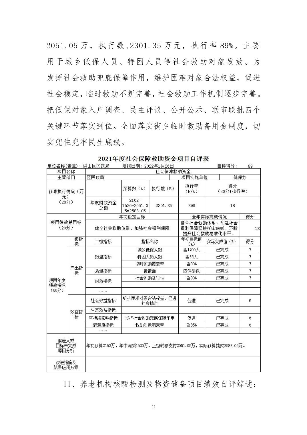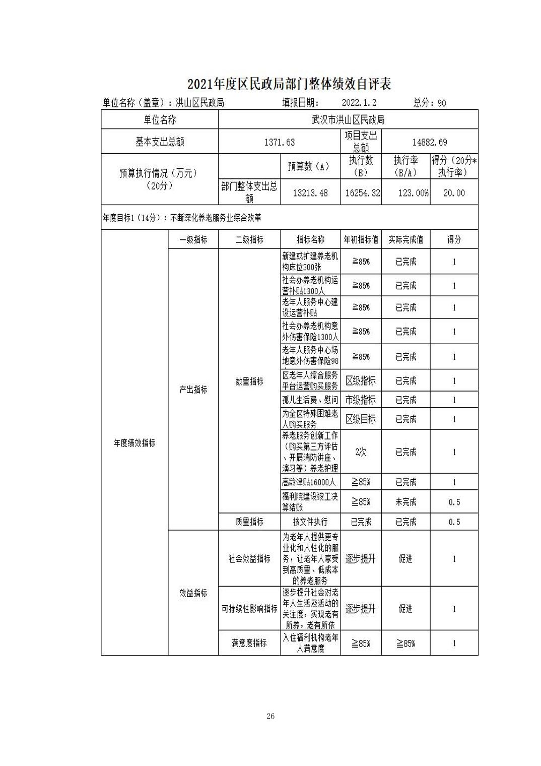 名 称:2021年度武汉市洪山区民政局部门决算