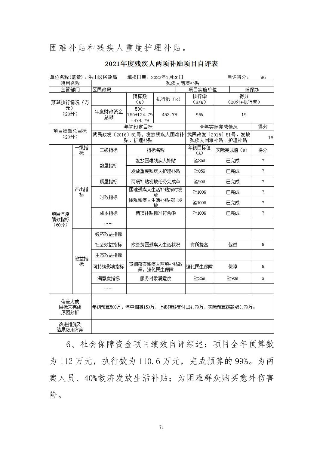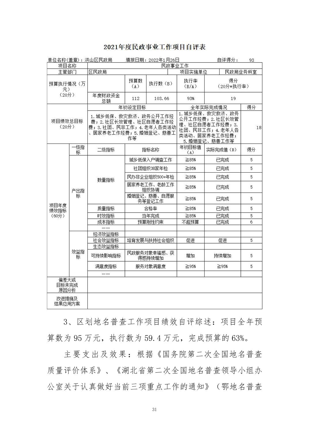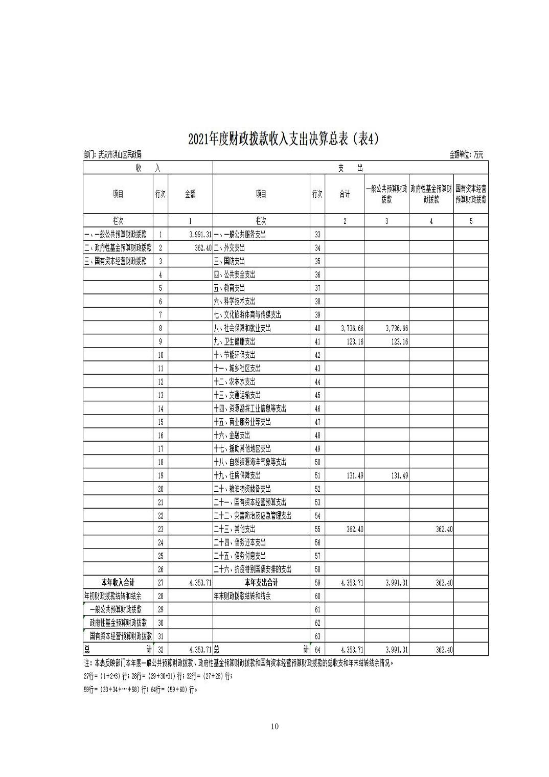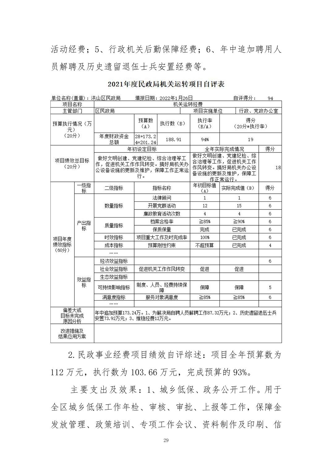 名 称:2021年度武汉市洪山区民政局部门决算