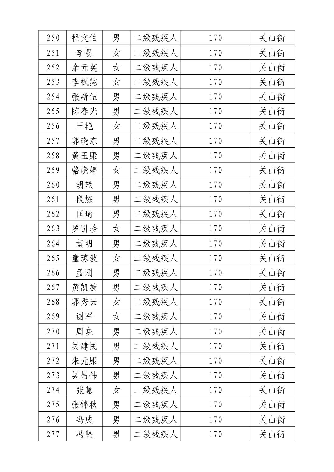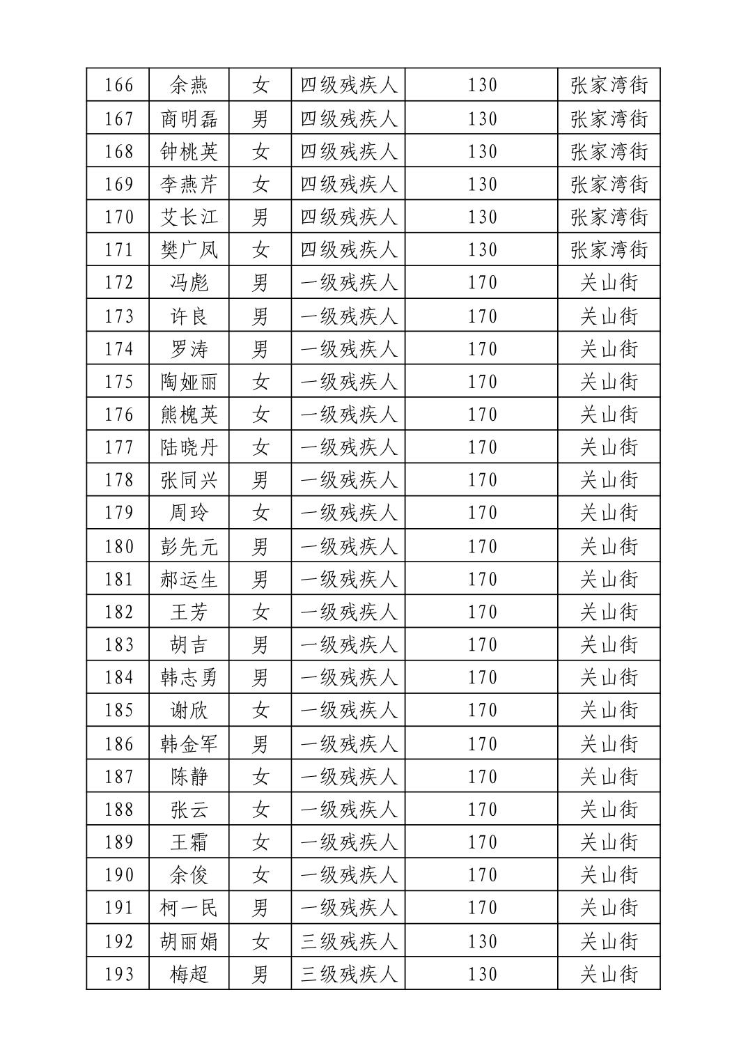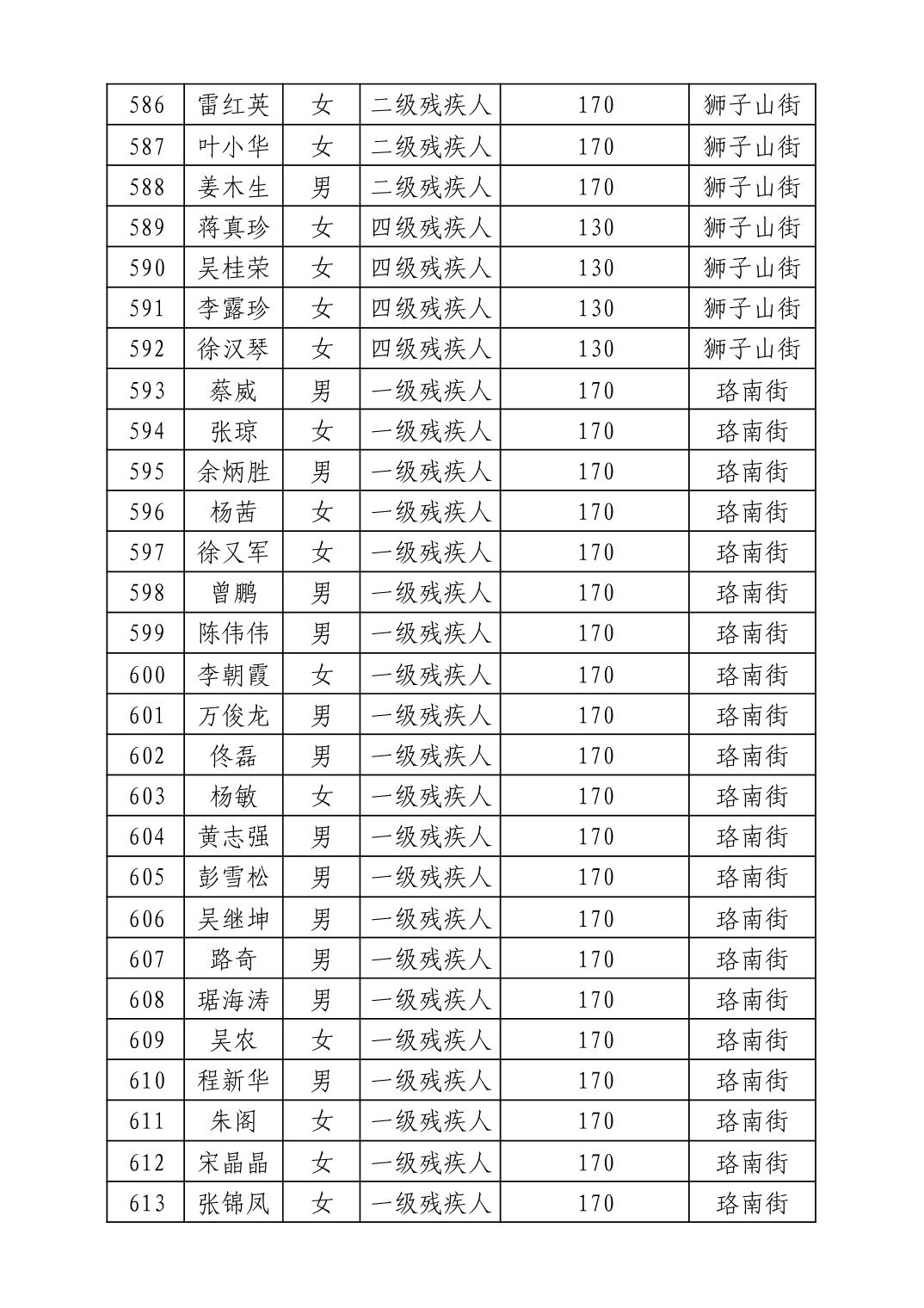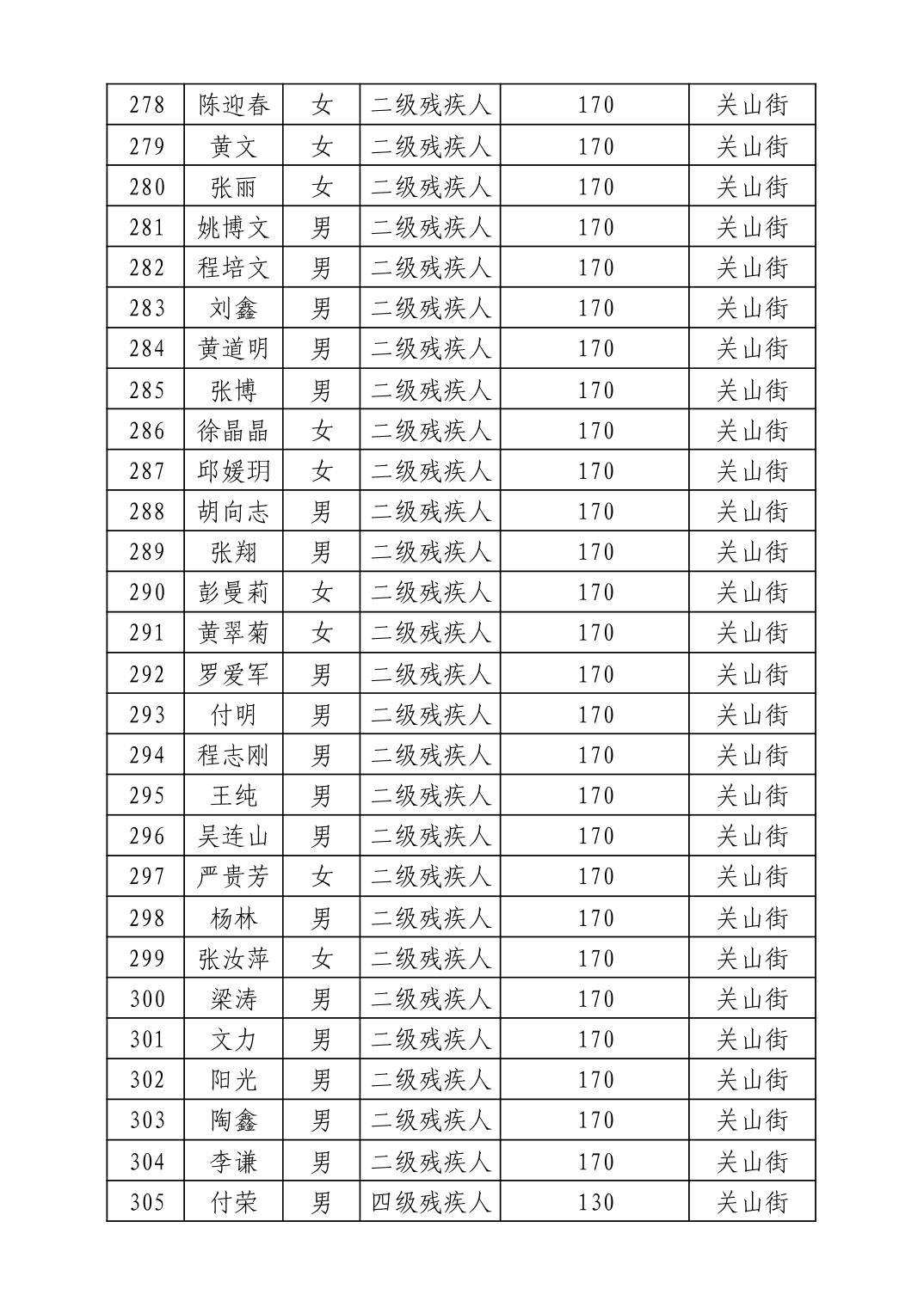 名 称:2025年7月武汉市洪山区困难残疾人生活补贴发放表