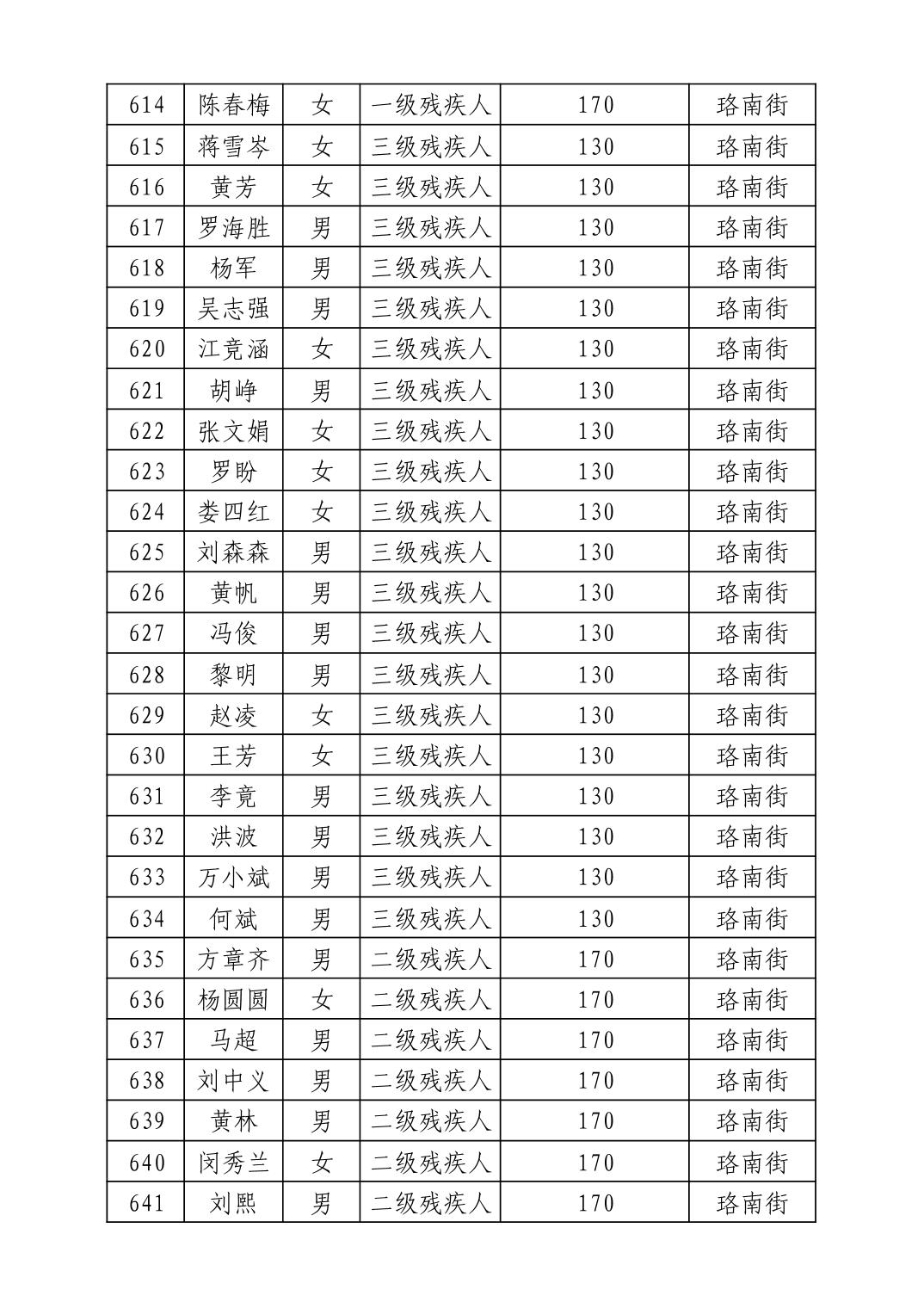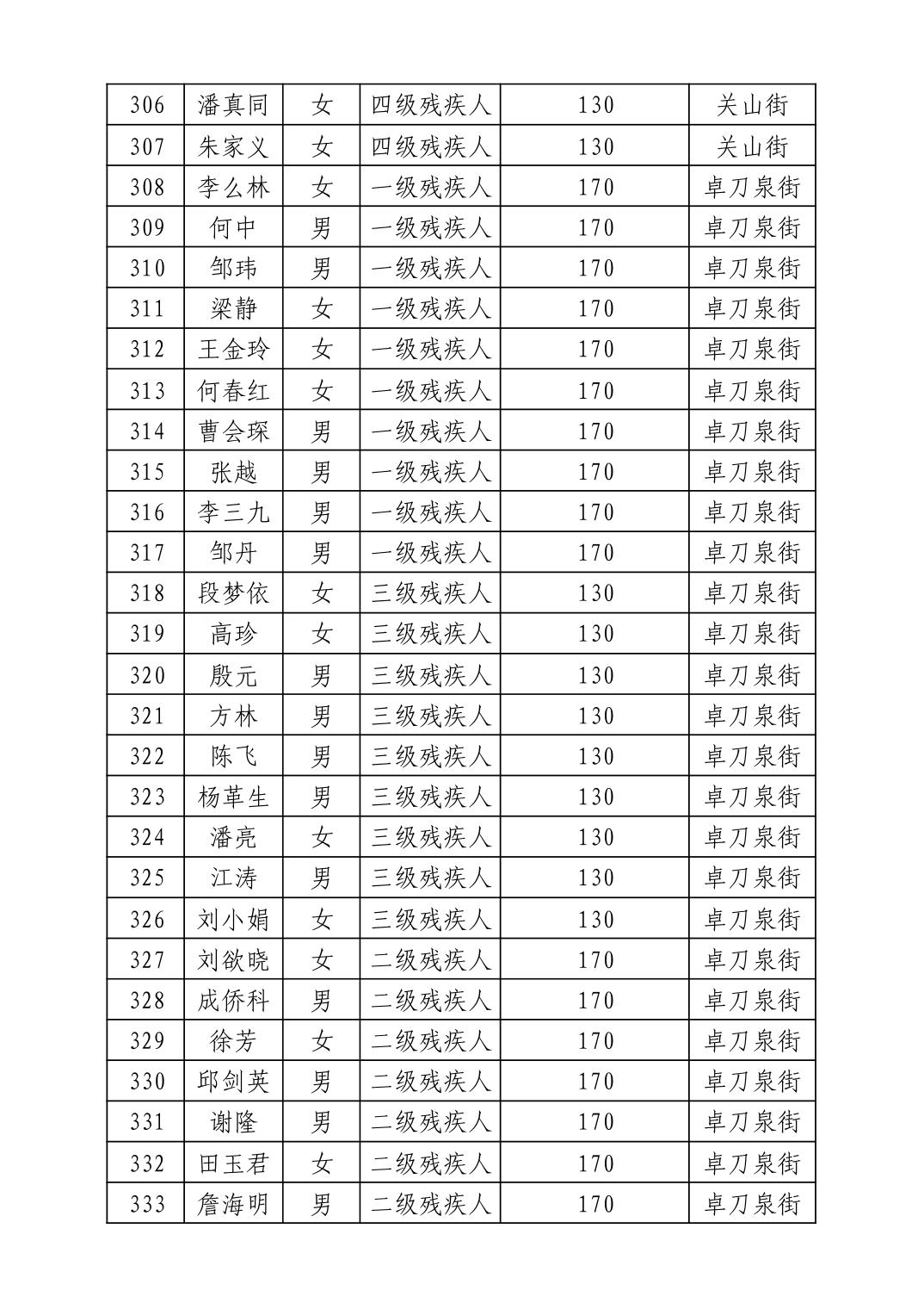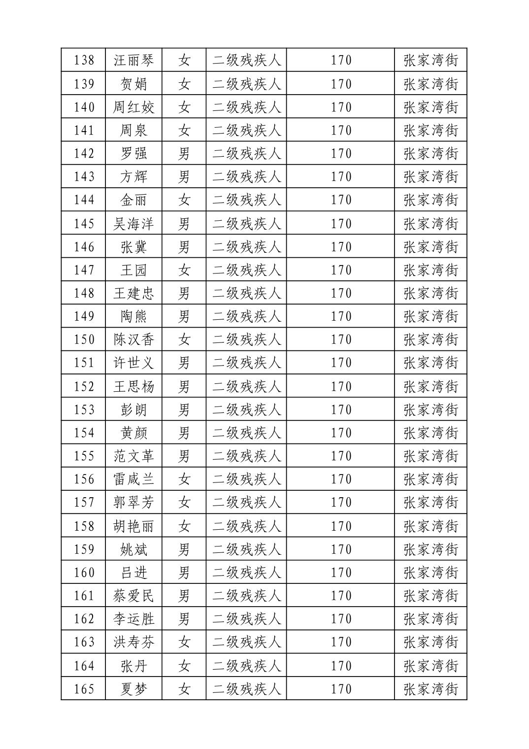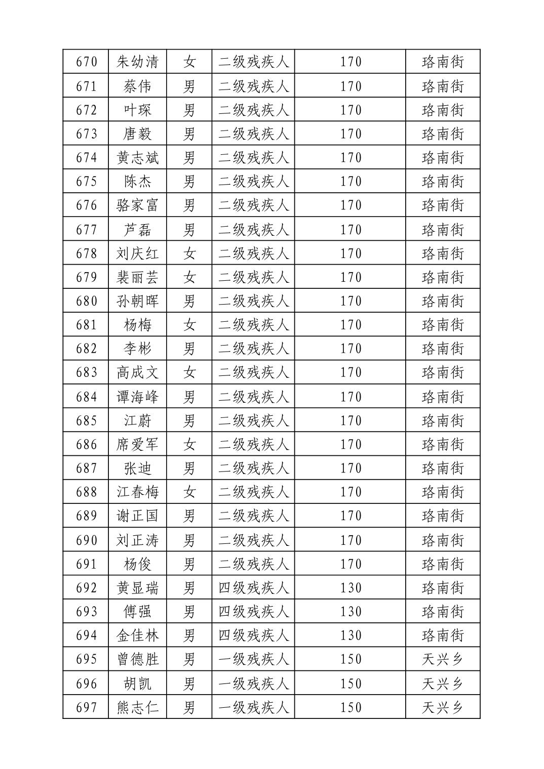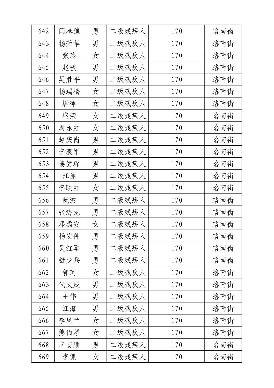 名 称:2025年7月武汉市洪山区困难残疾人生活补贴发放表