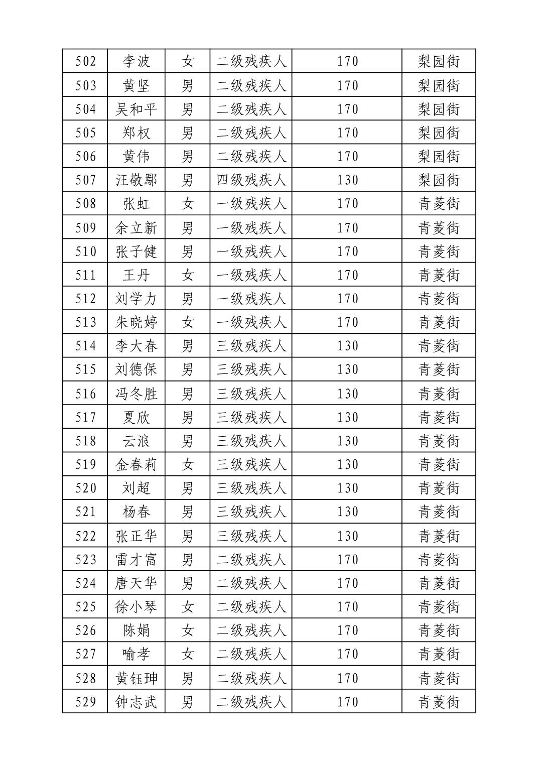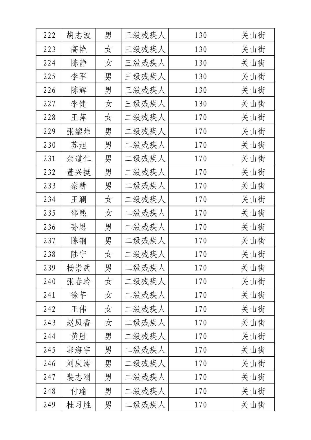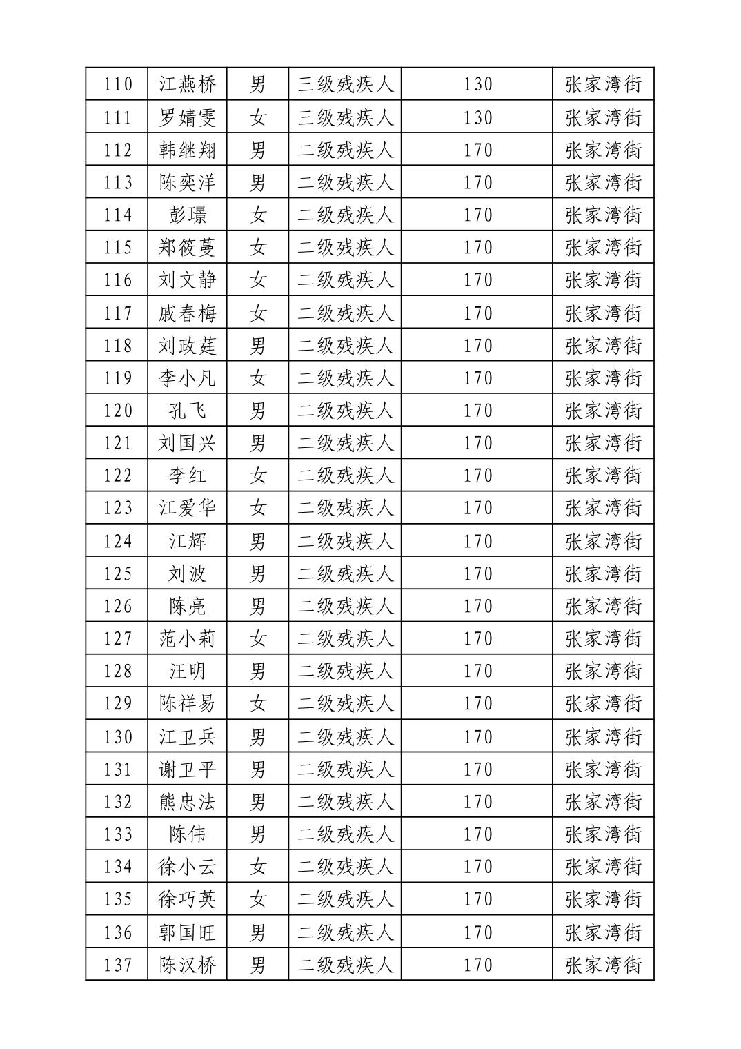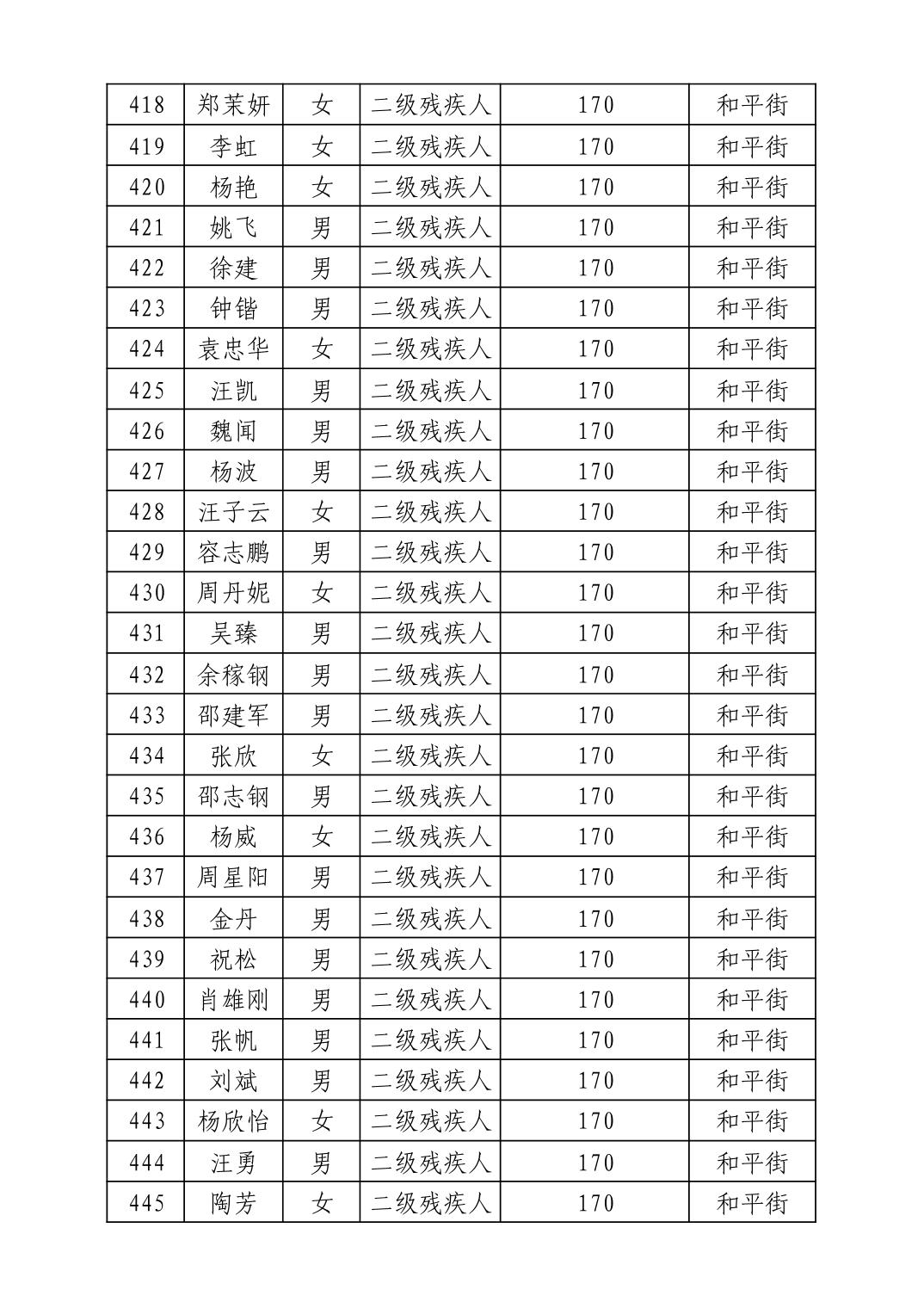 名 称:2025年7月武汉市洪山区困难残疾人生活补贴发放表