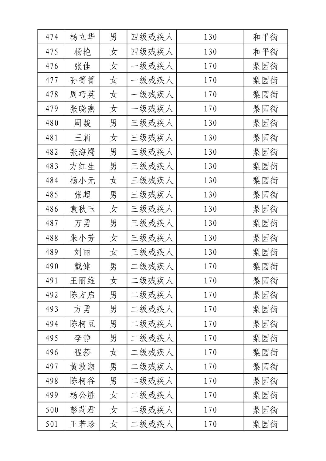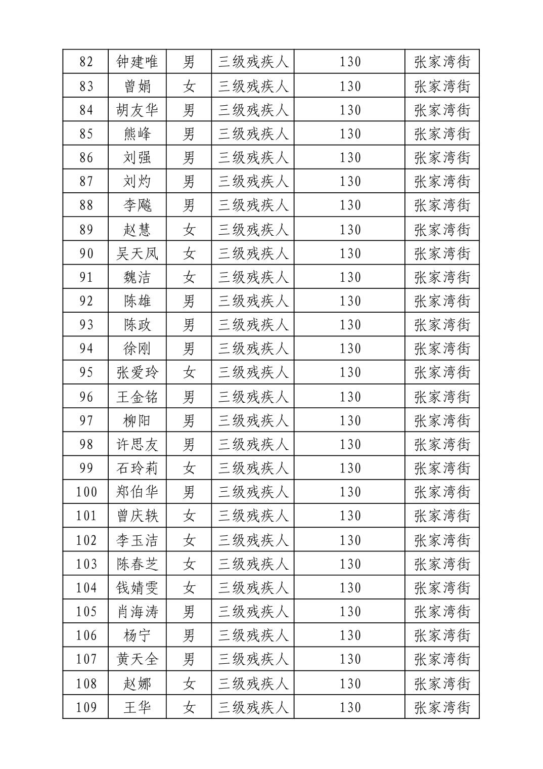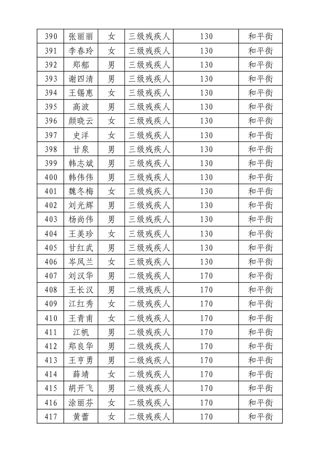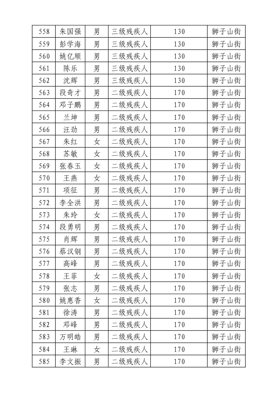 名 称:2025年7月武汉市洪山区困难残疾人生活补贴发放表