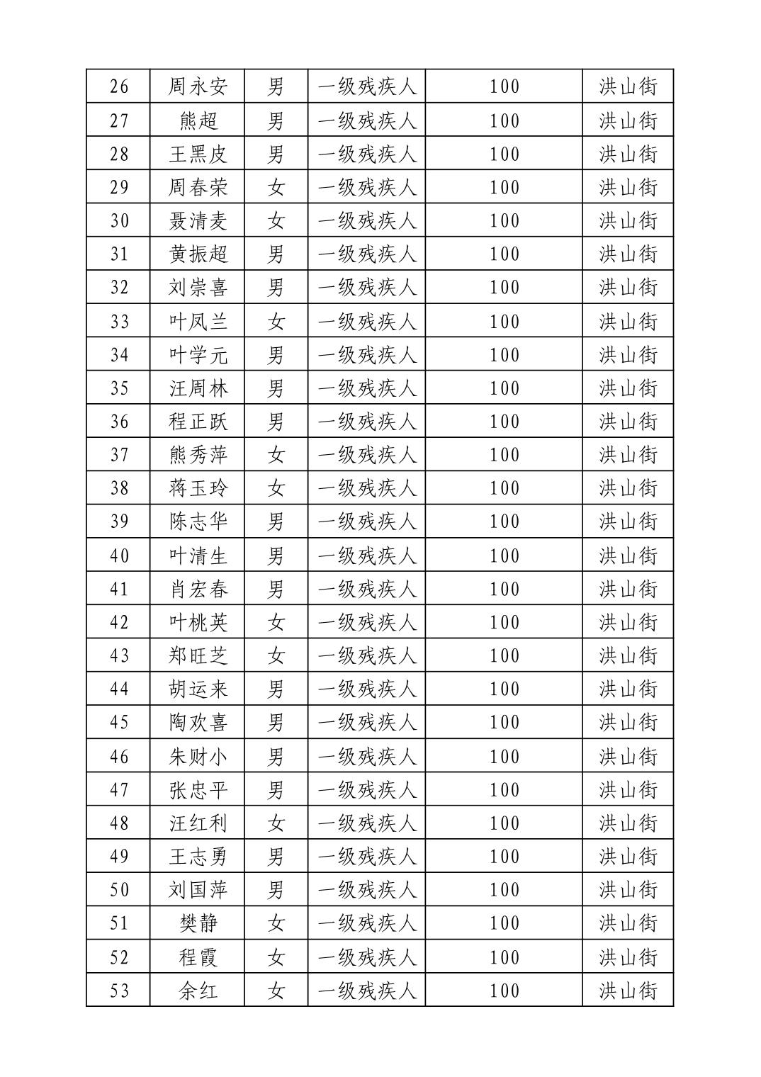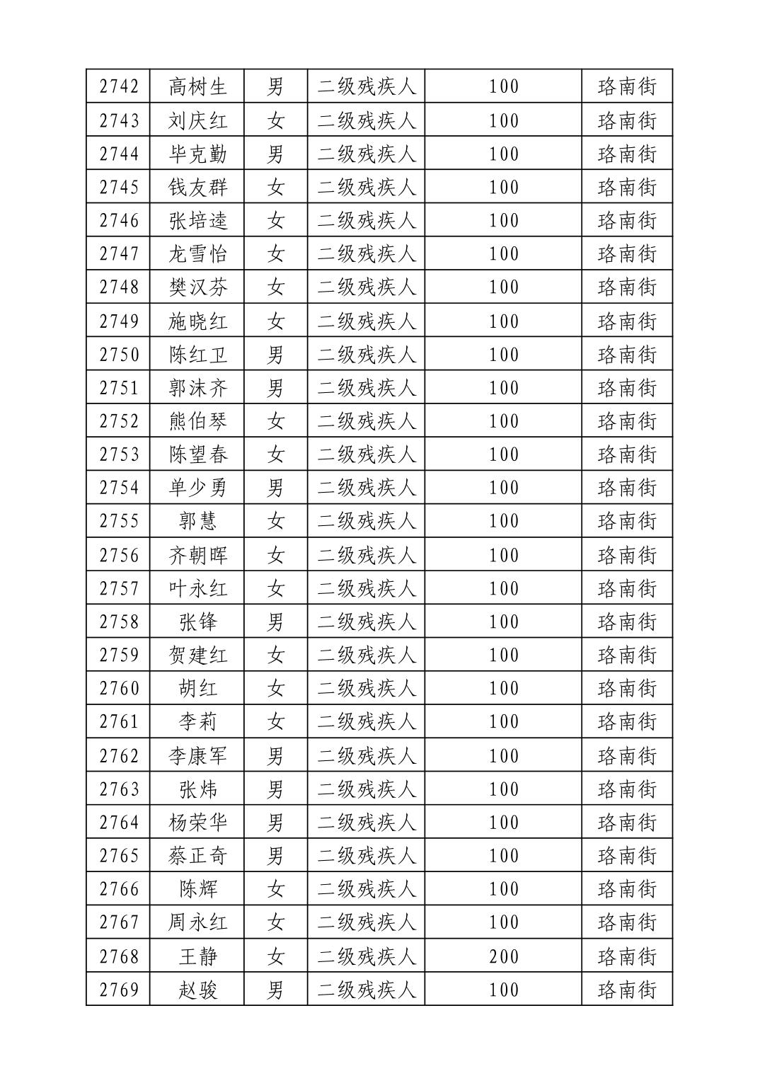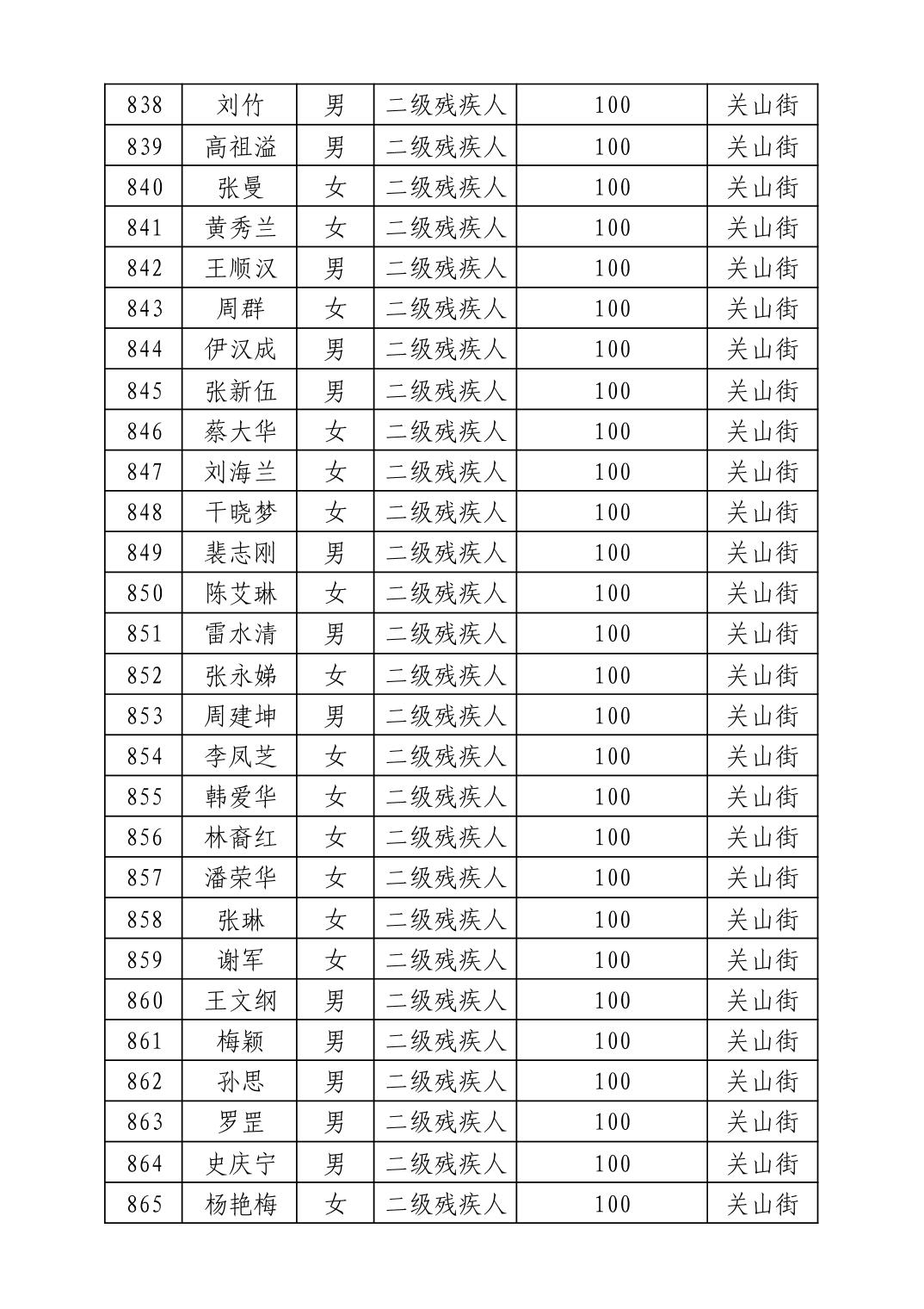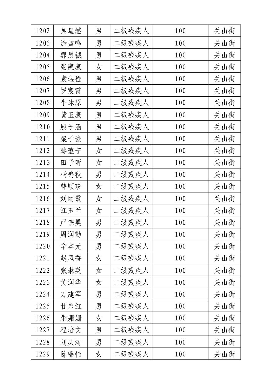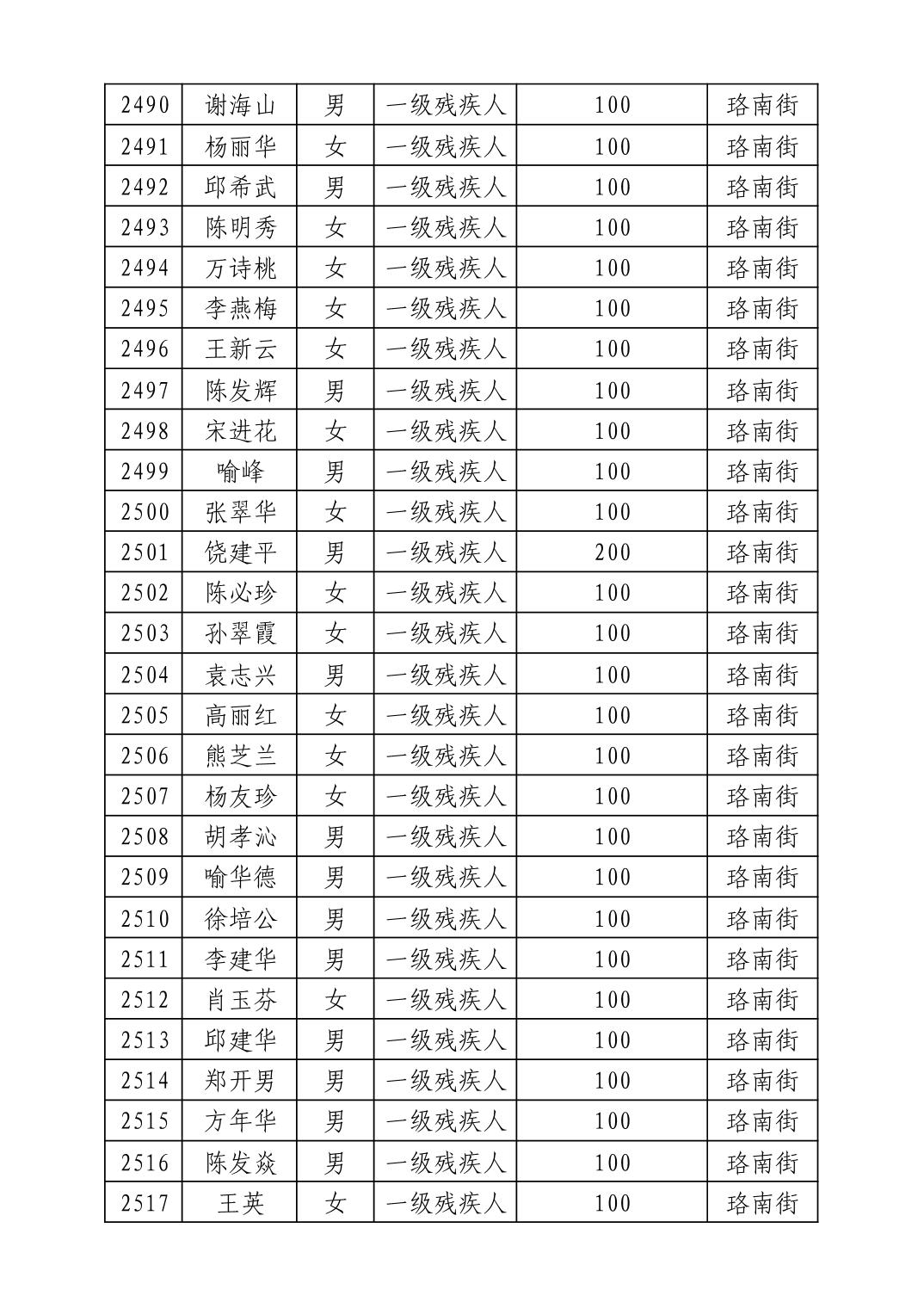名 称:2025年8月武汉市洪山区重度残疾人护理补贴发放表