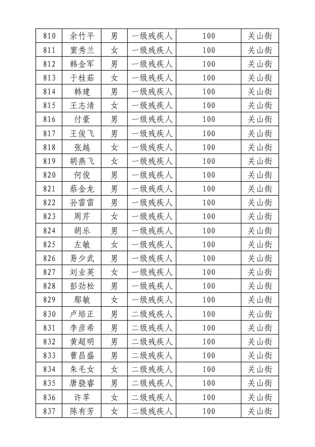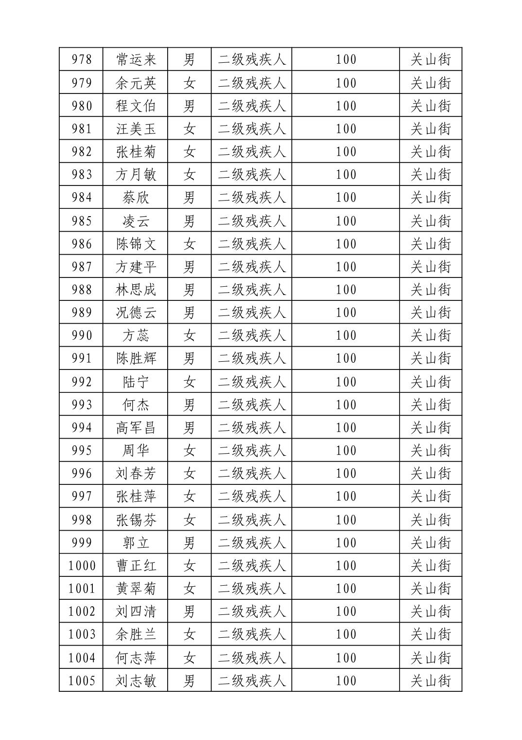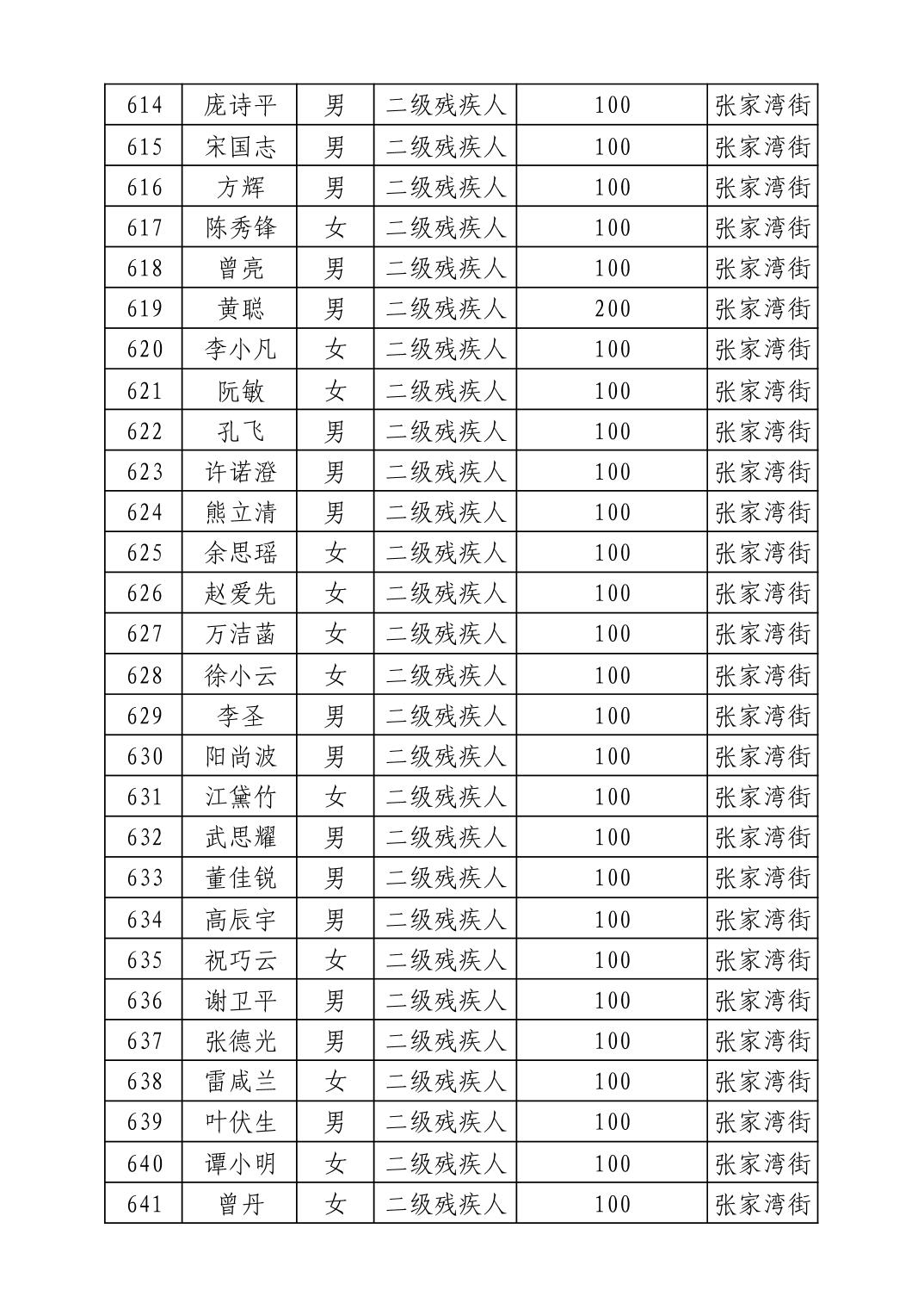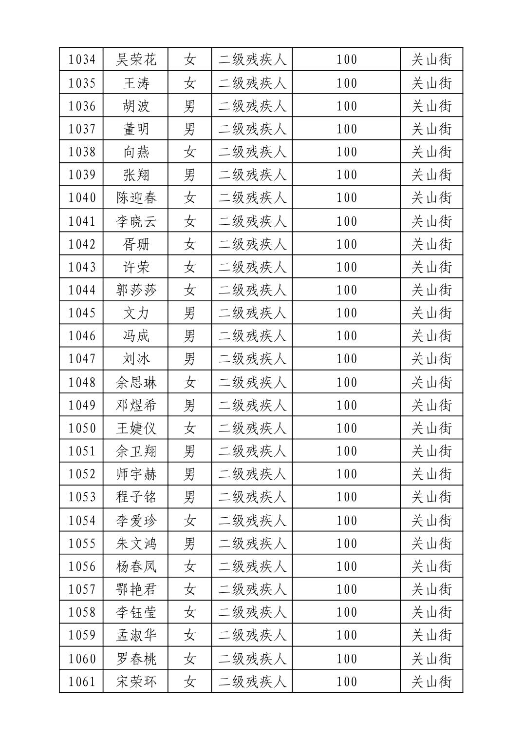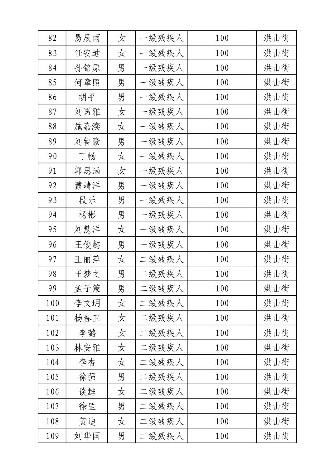 名 称:2025年8月武汉市洪山区重度残疾人护理补贴发放表