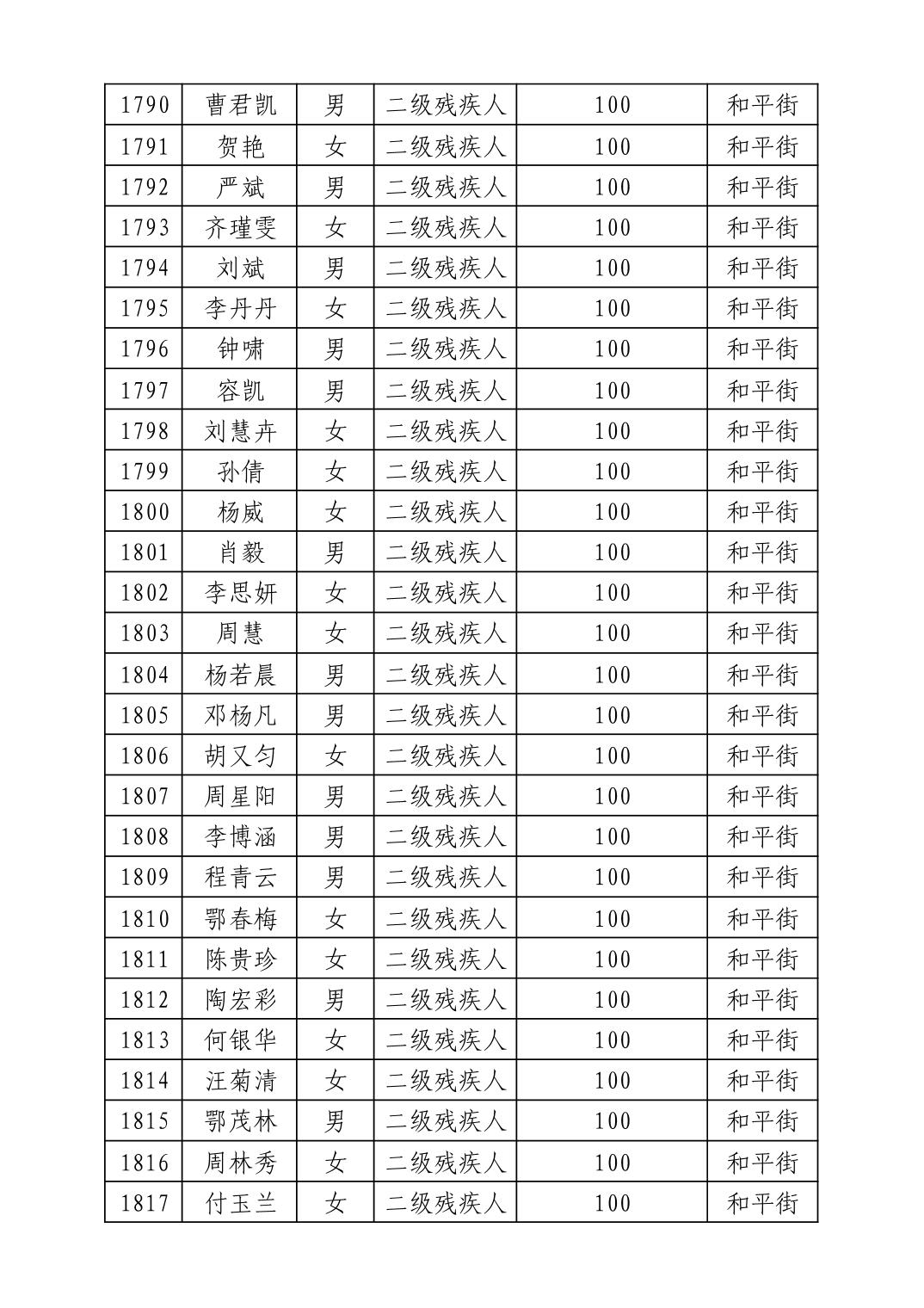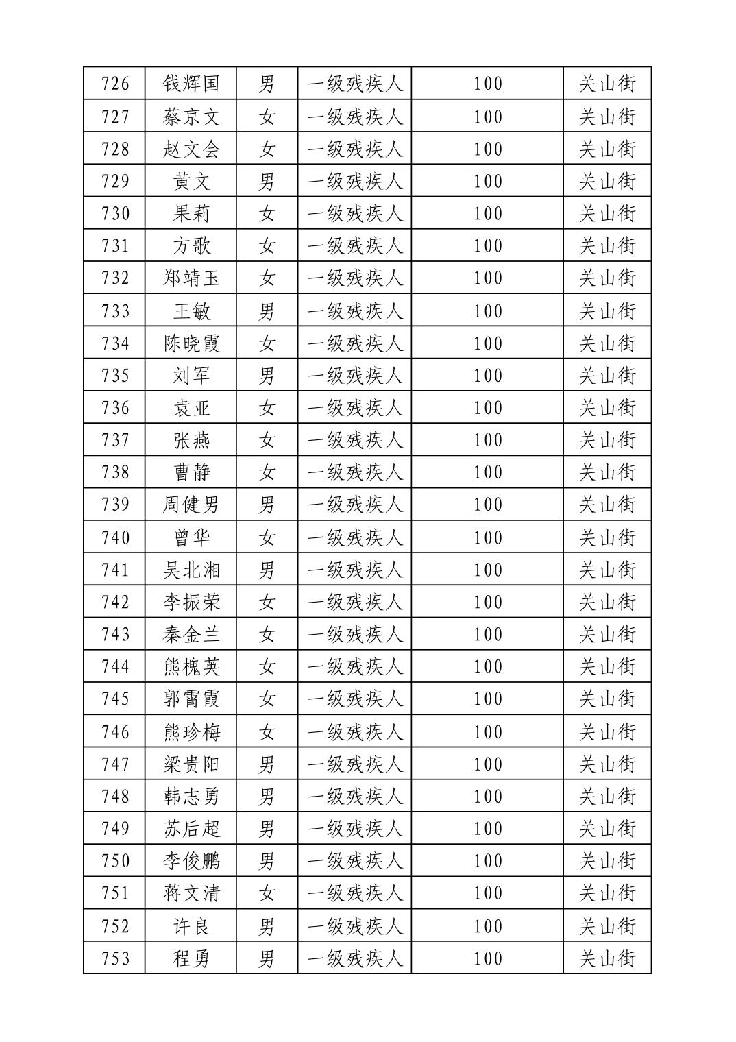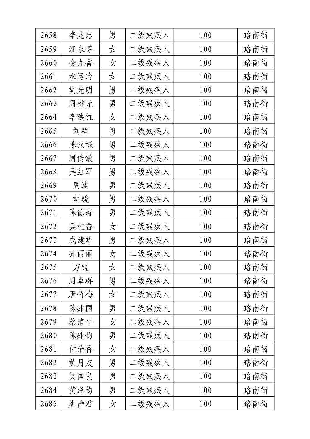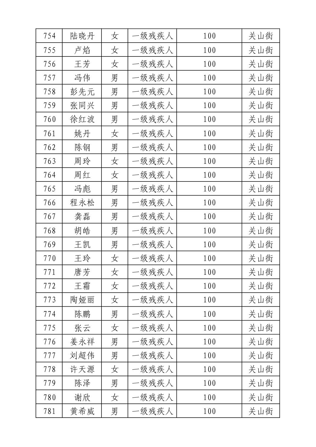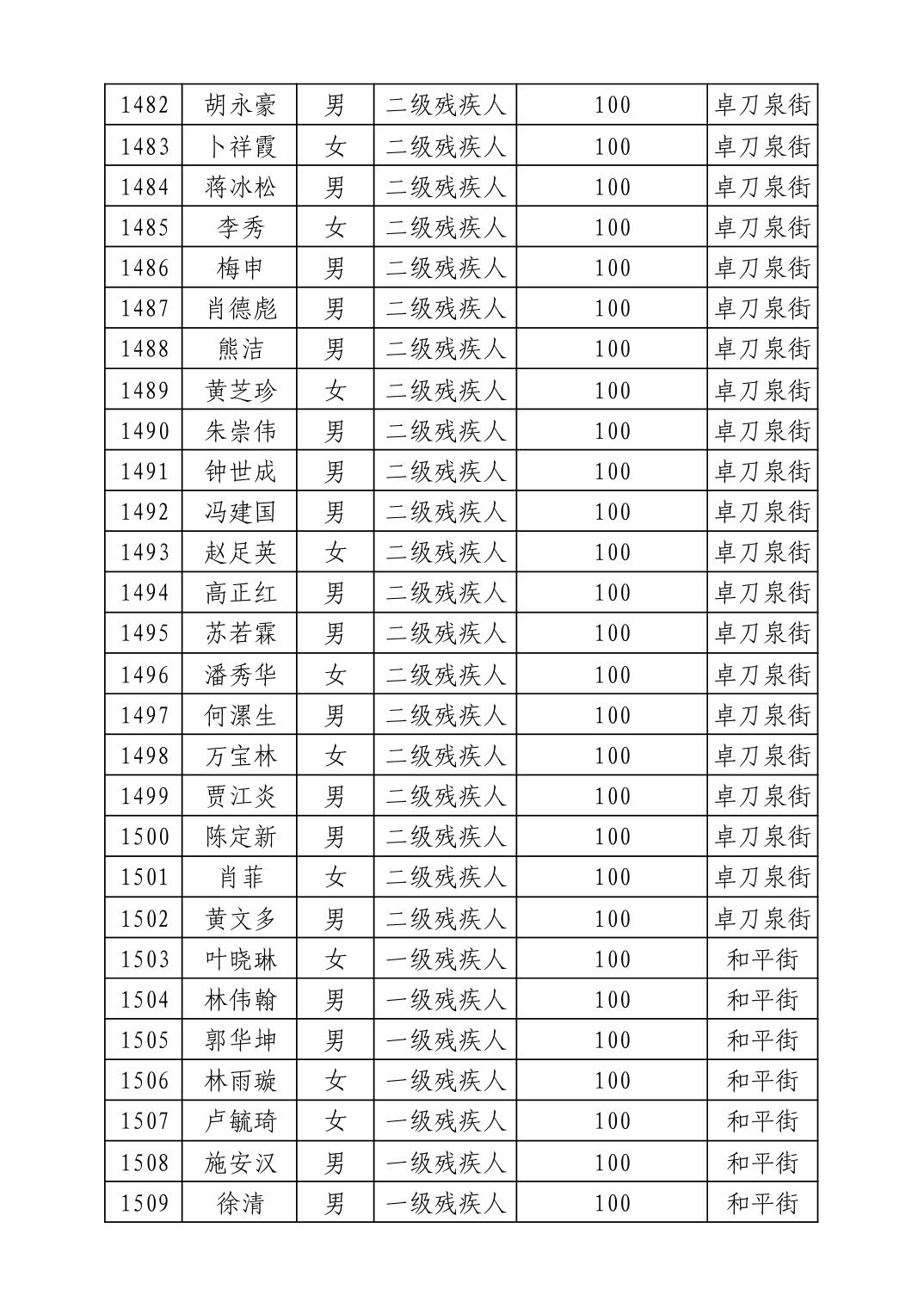 名 称:2025年8月武汉市洪山区重度残疾人护理补贴发放表