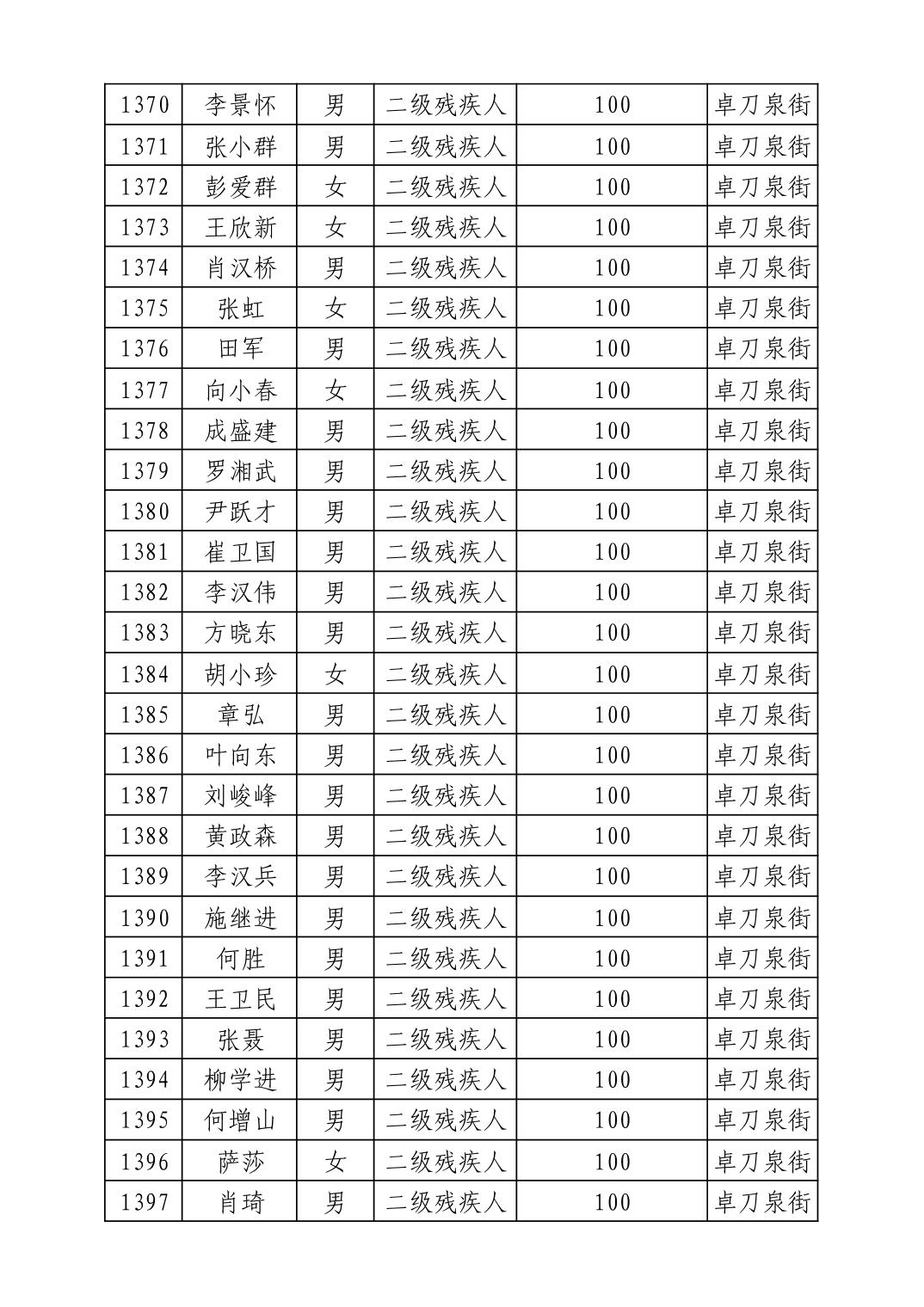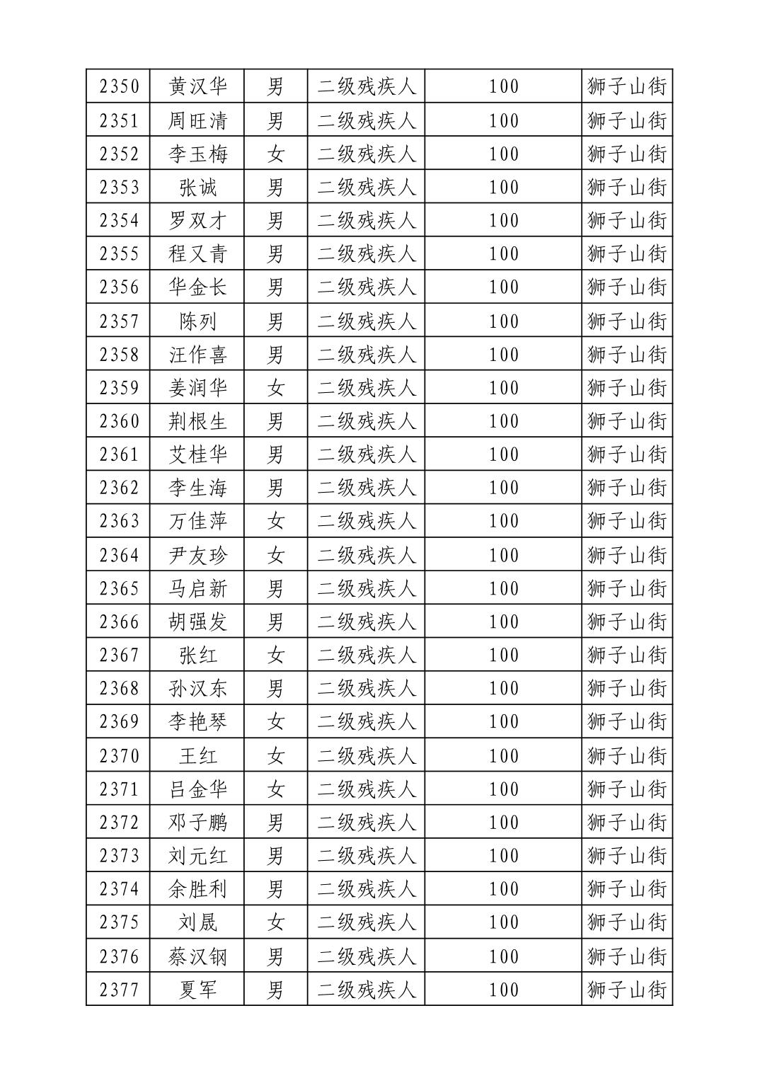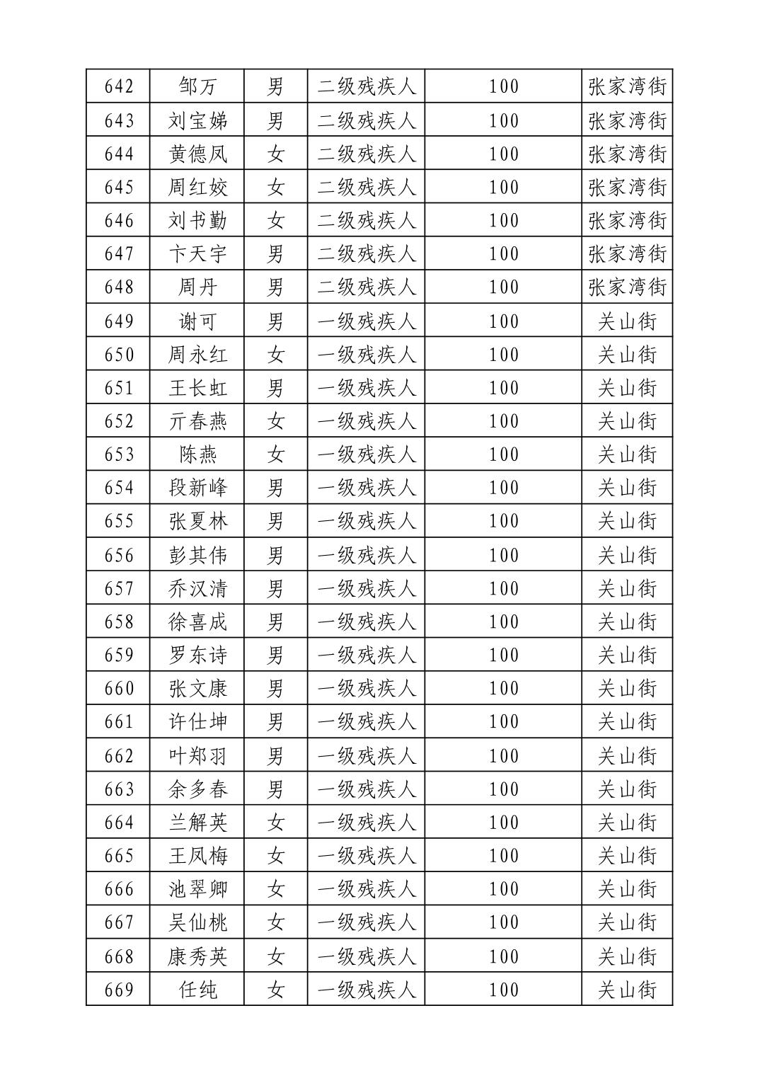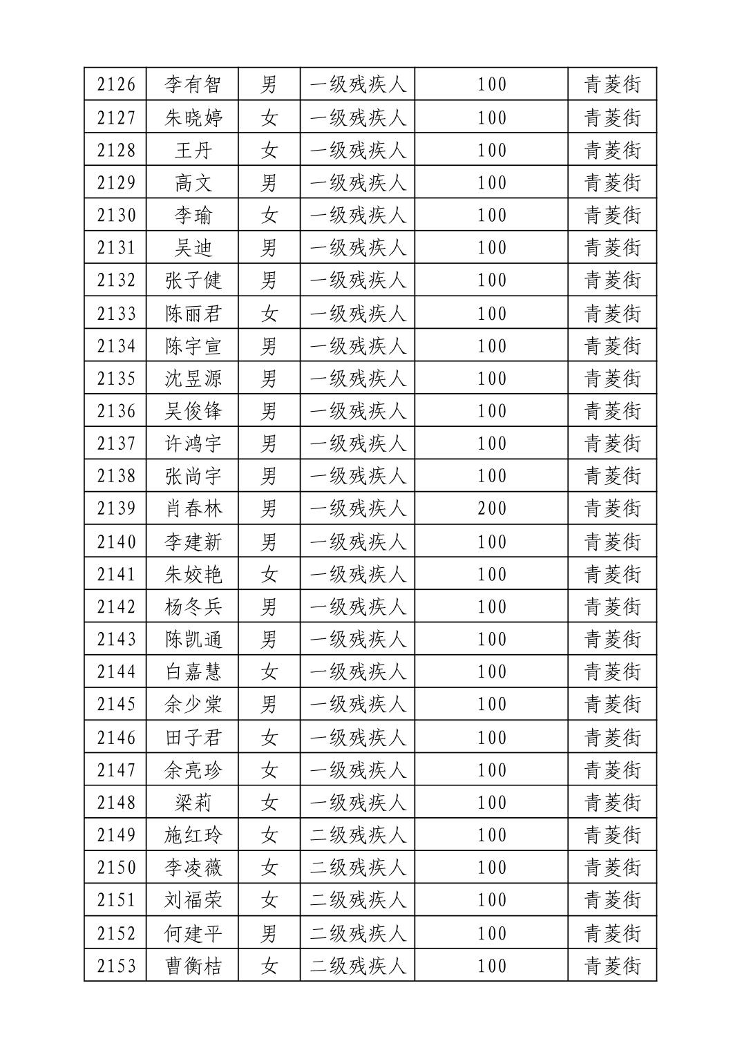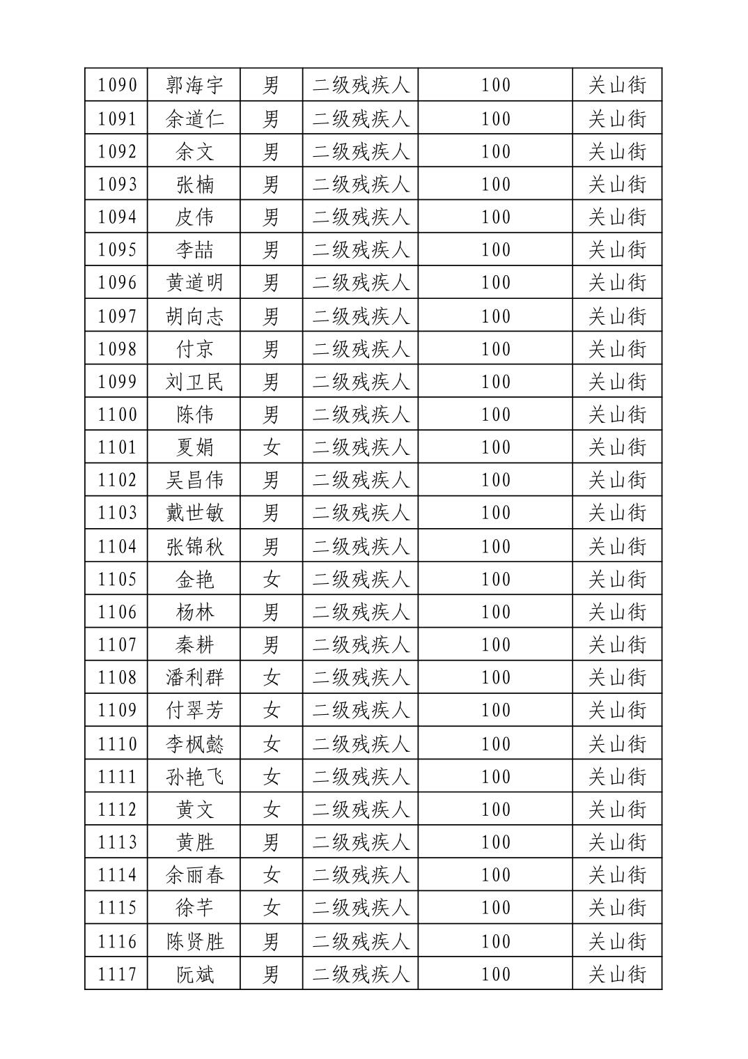 名 称:2025年8月武汉市洪山区重度残疾人护理补贴发放表