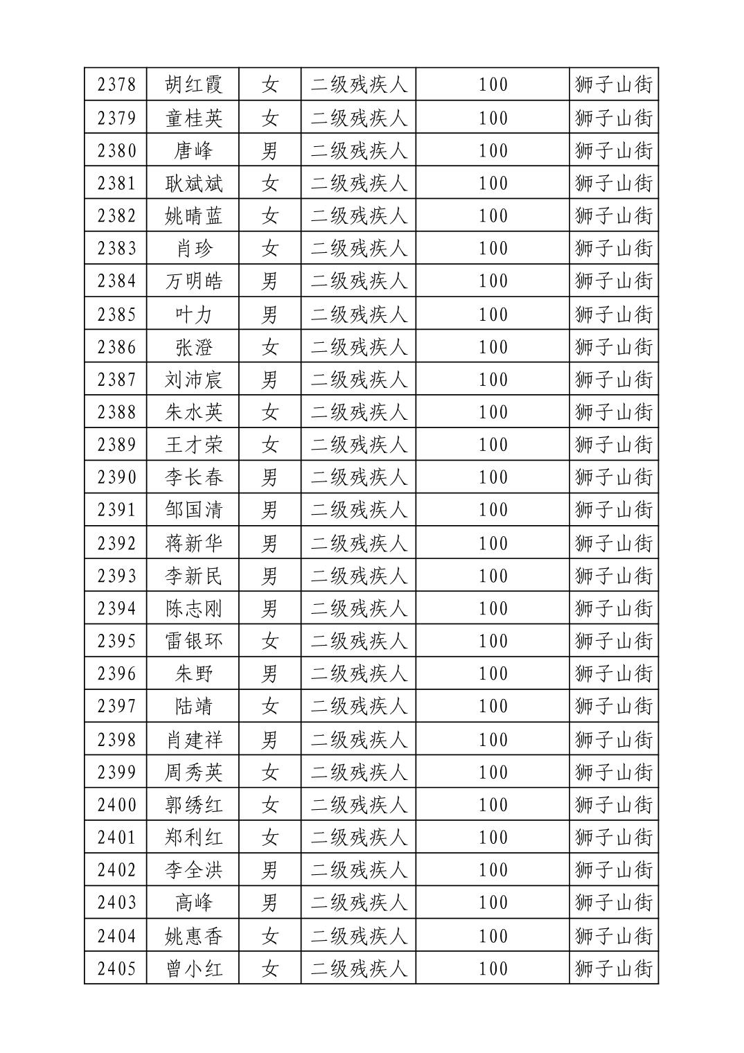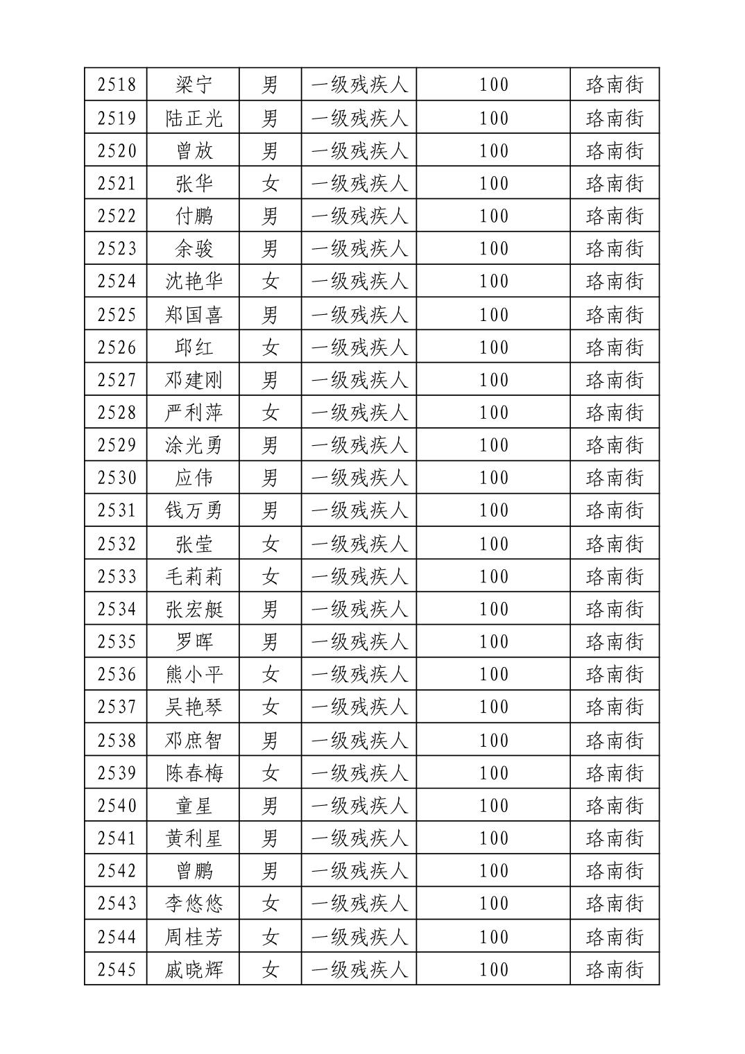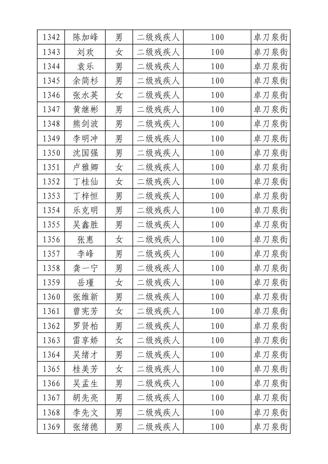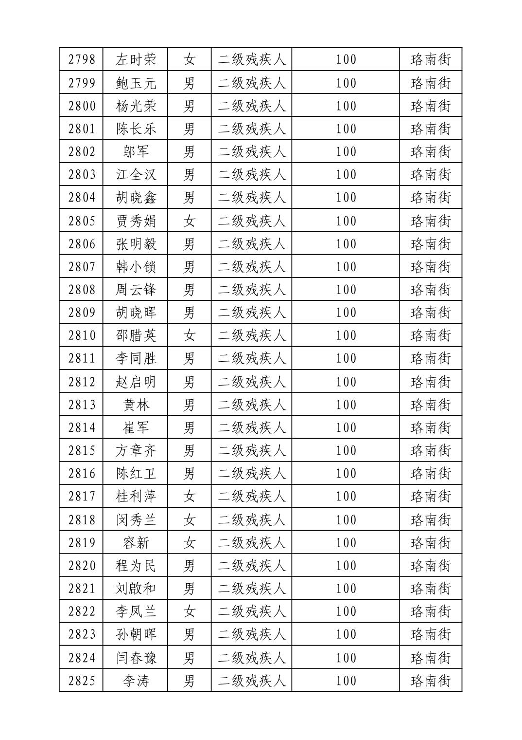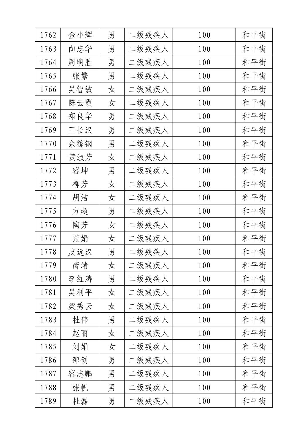 名 称:2025年8月武汉市洪山区重度残疾人护理补贴发放表