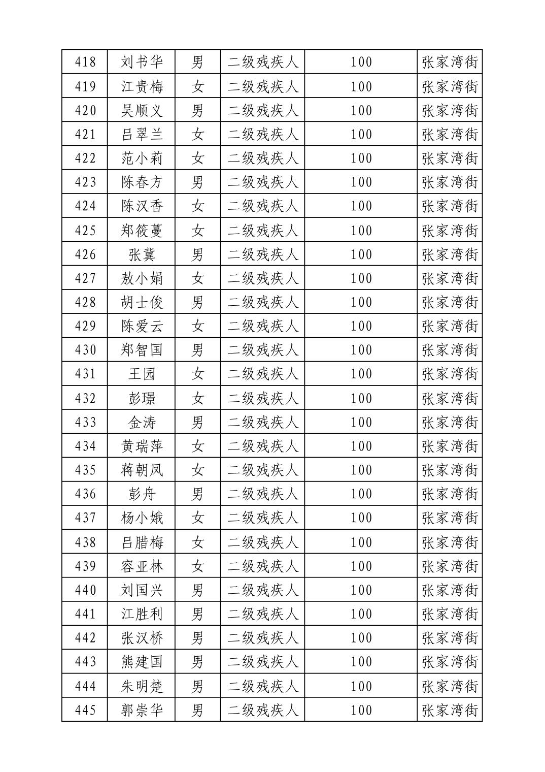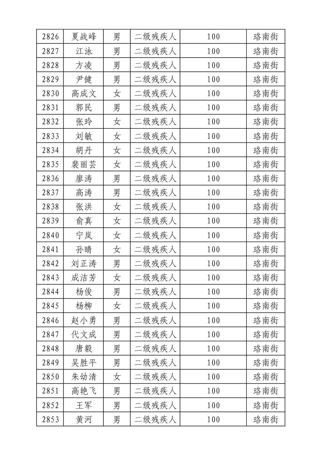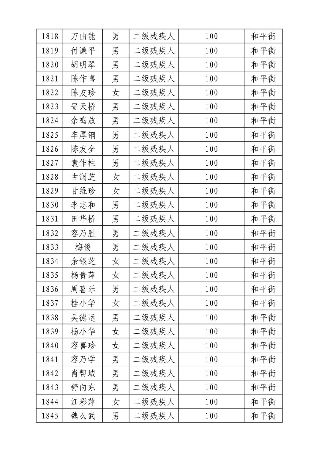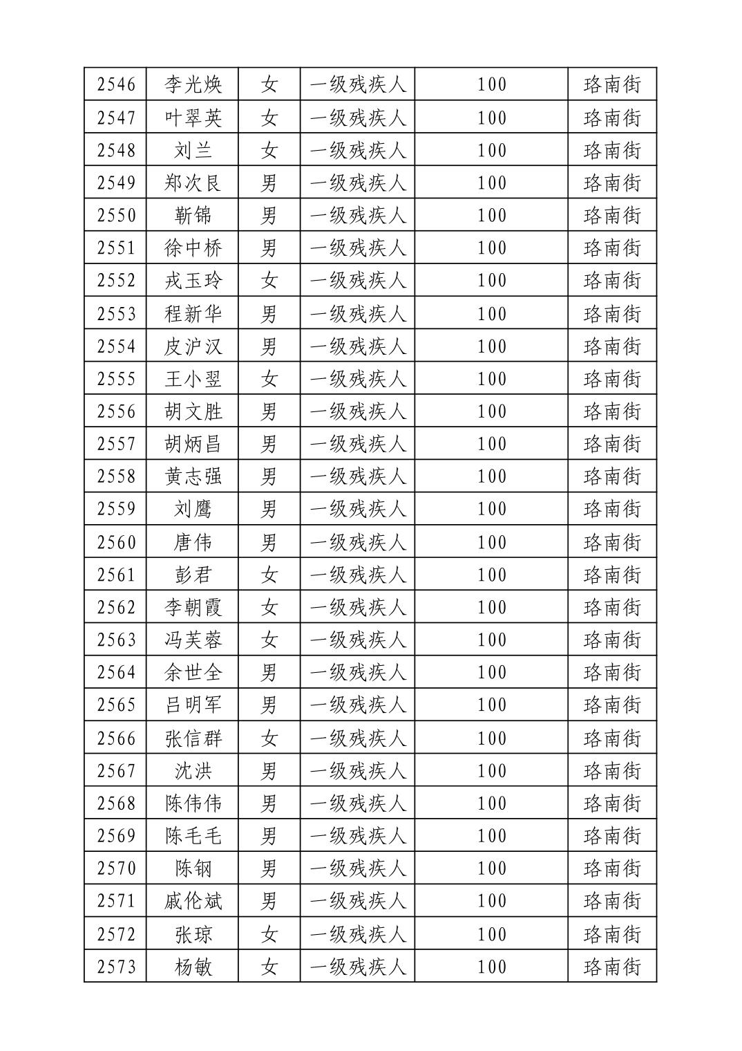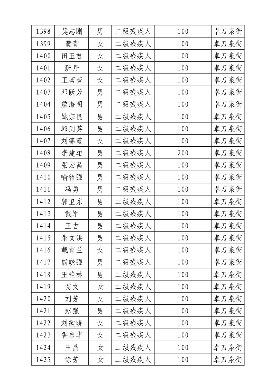 名 称:2025年8月武汉市洪山区重度残疾人护理补贴发放表