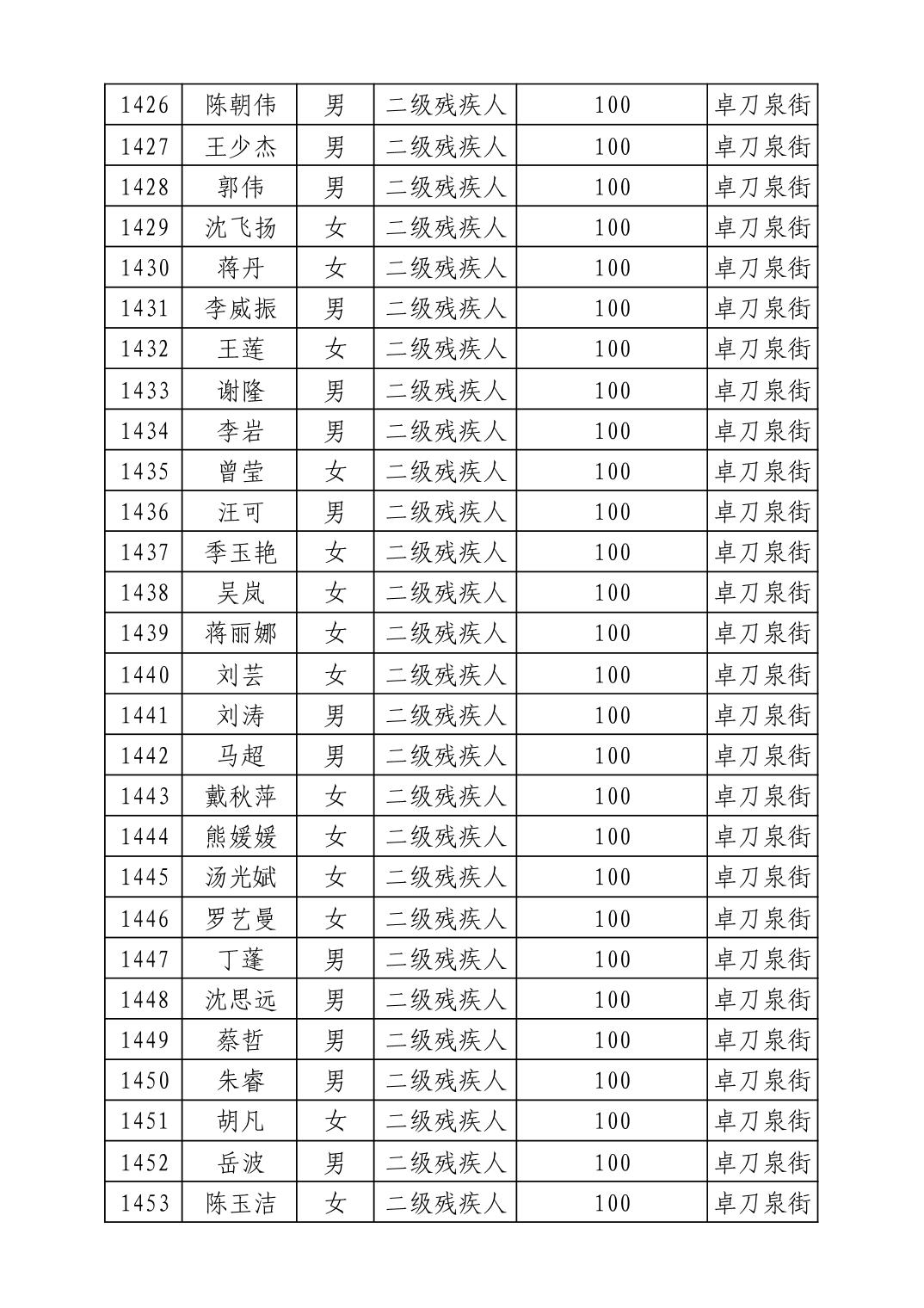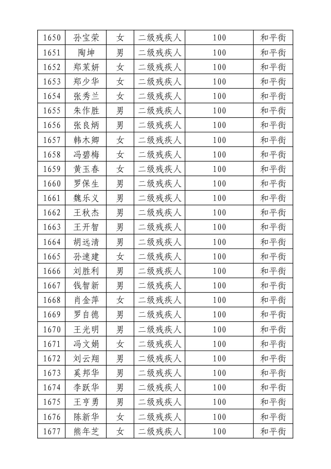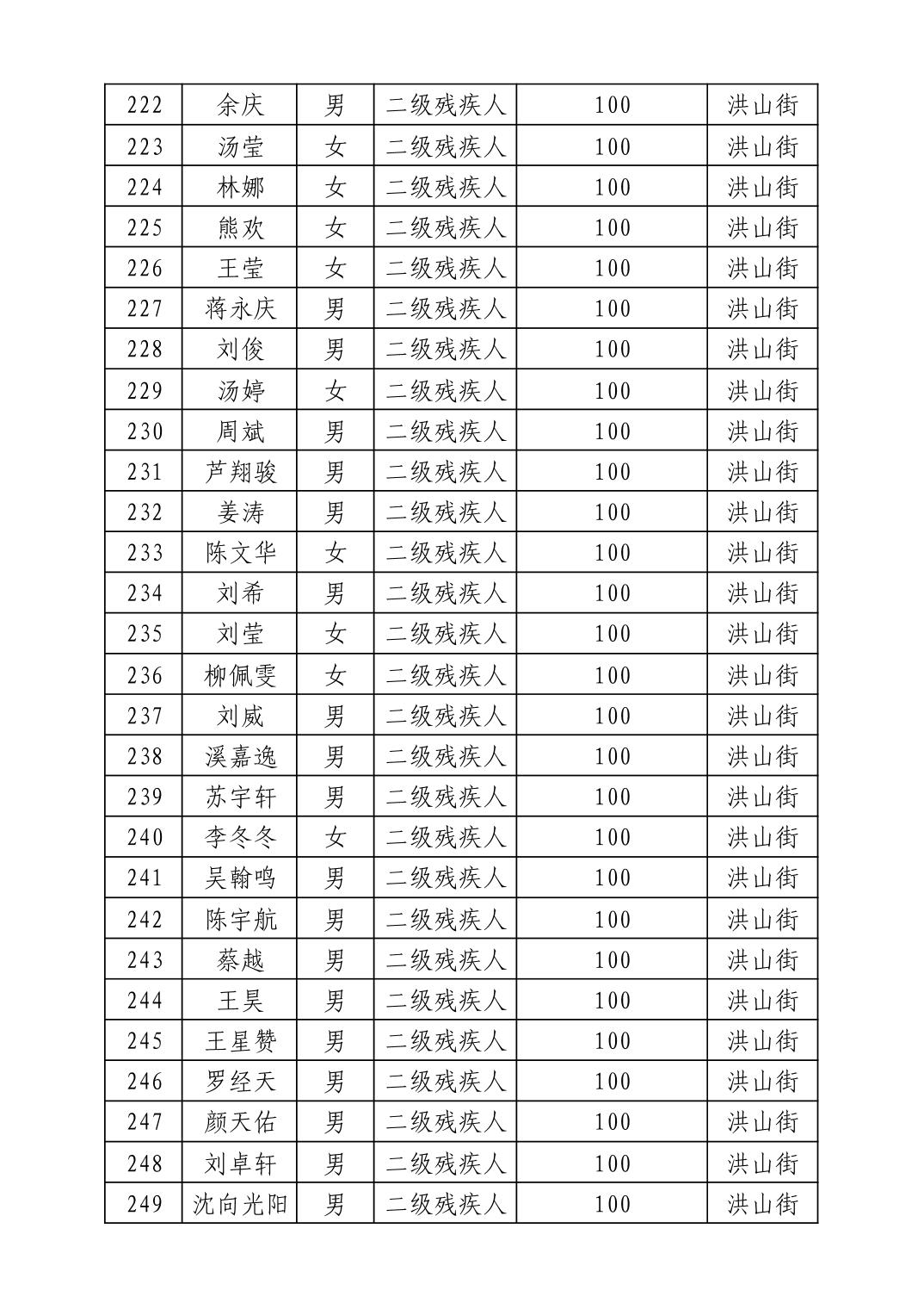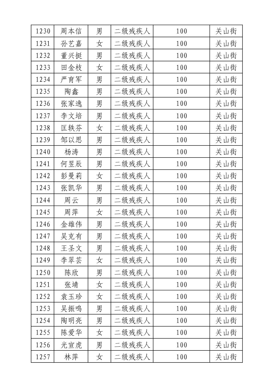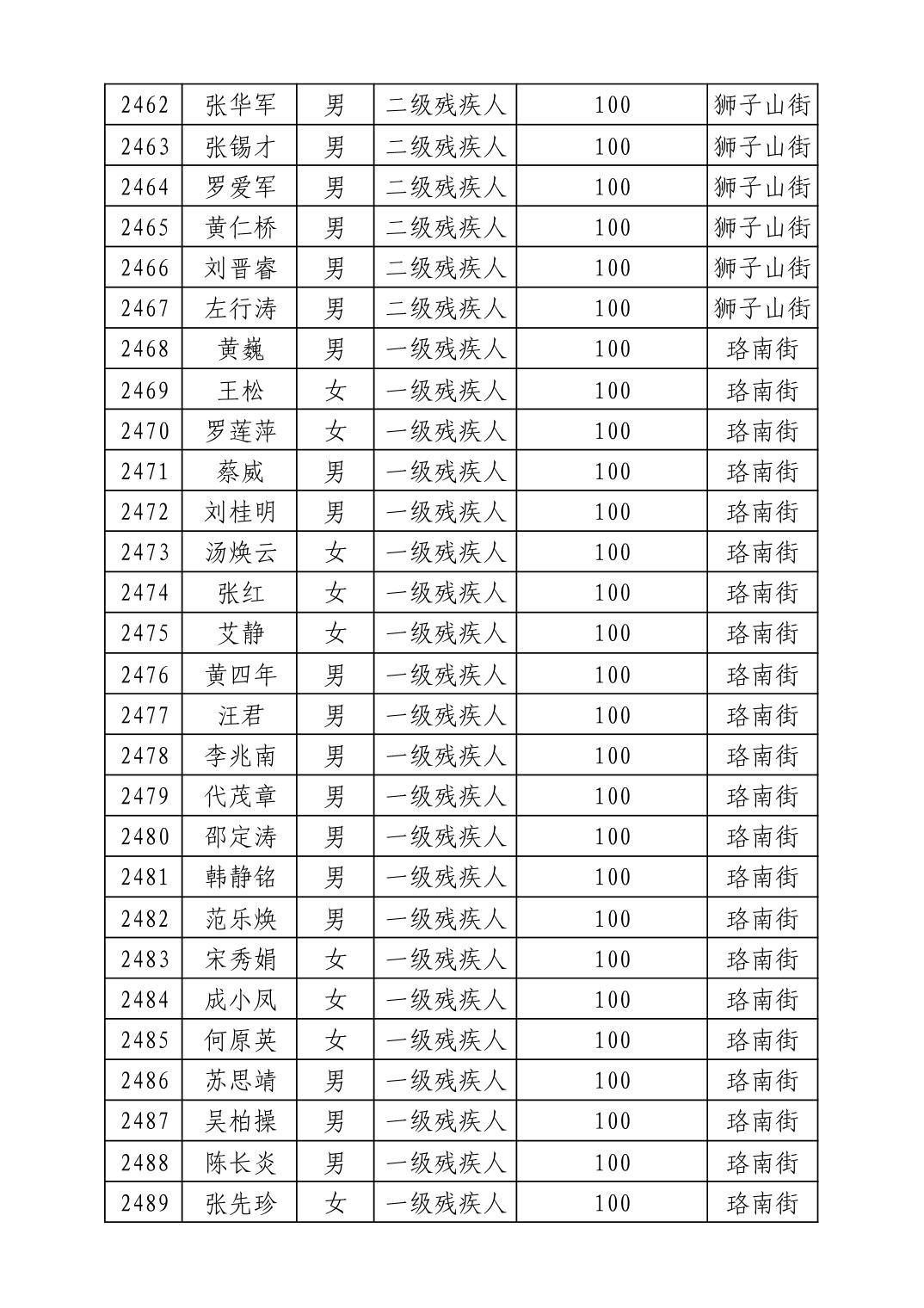 名 称:2025年8月武汉市洪山区重度残疾人护理补贴发放表