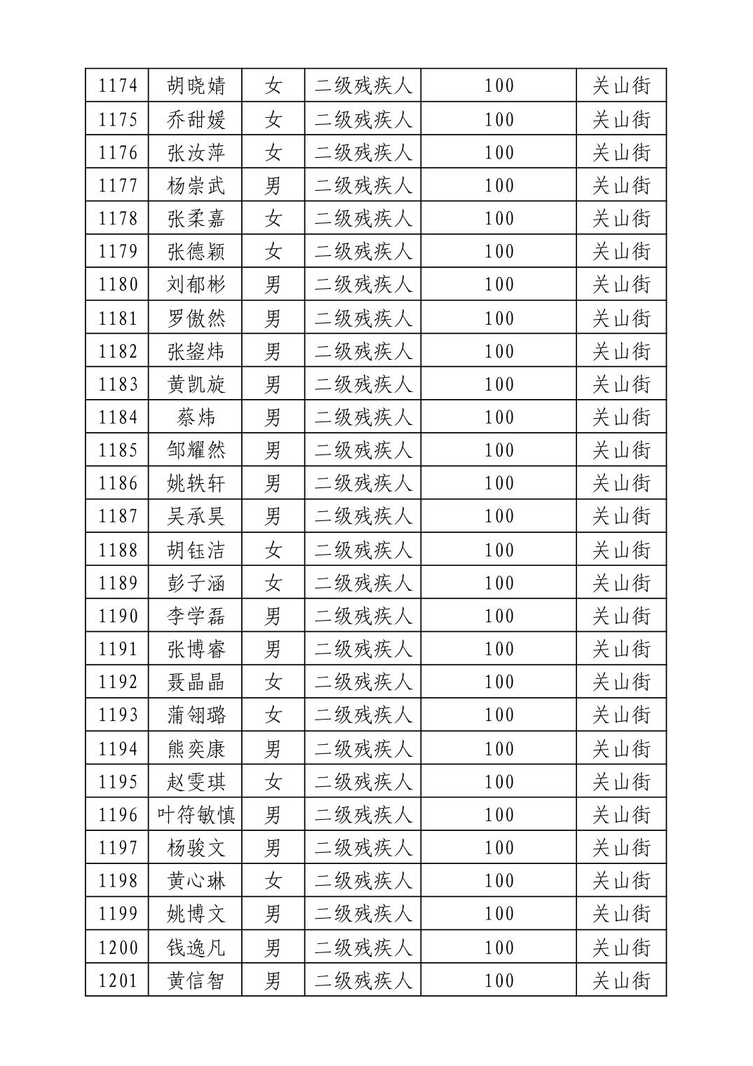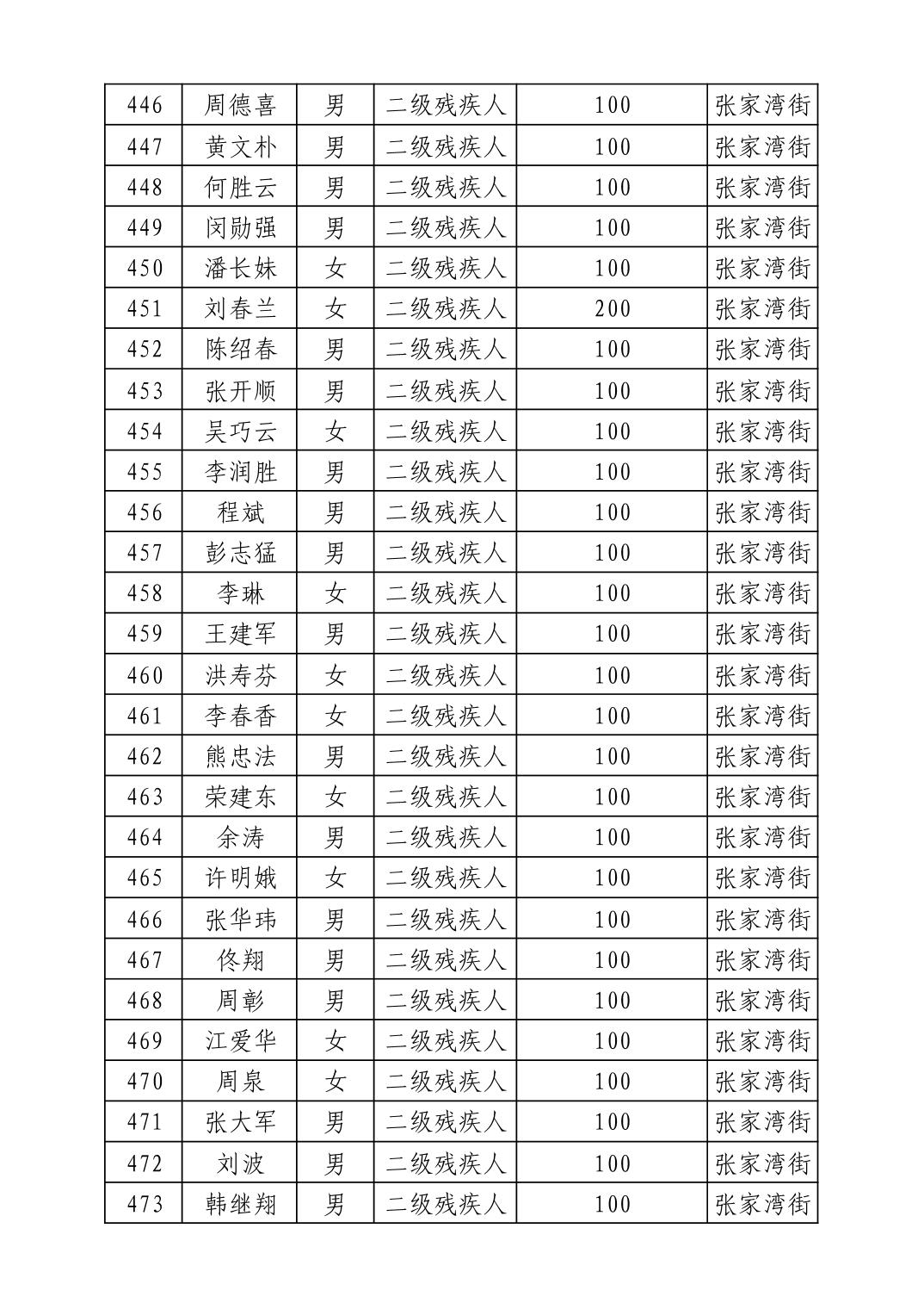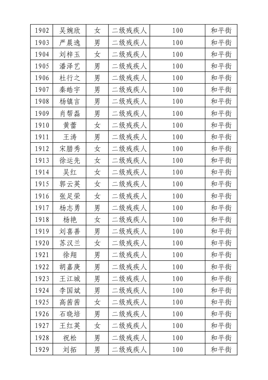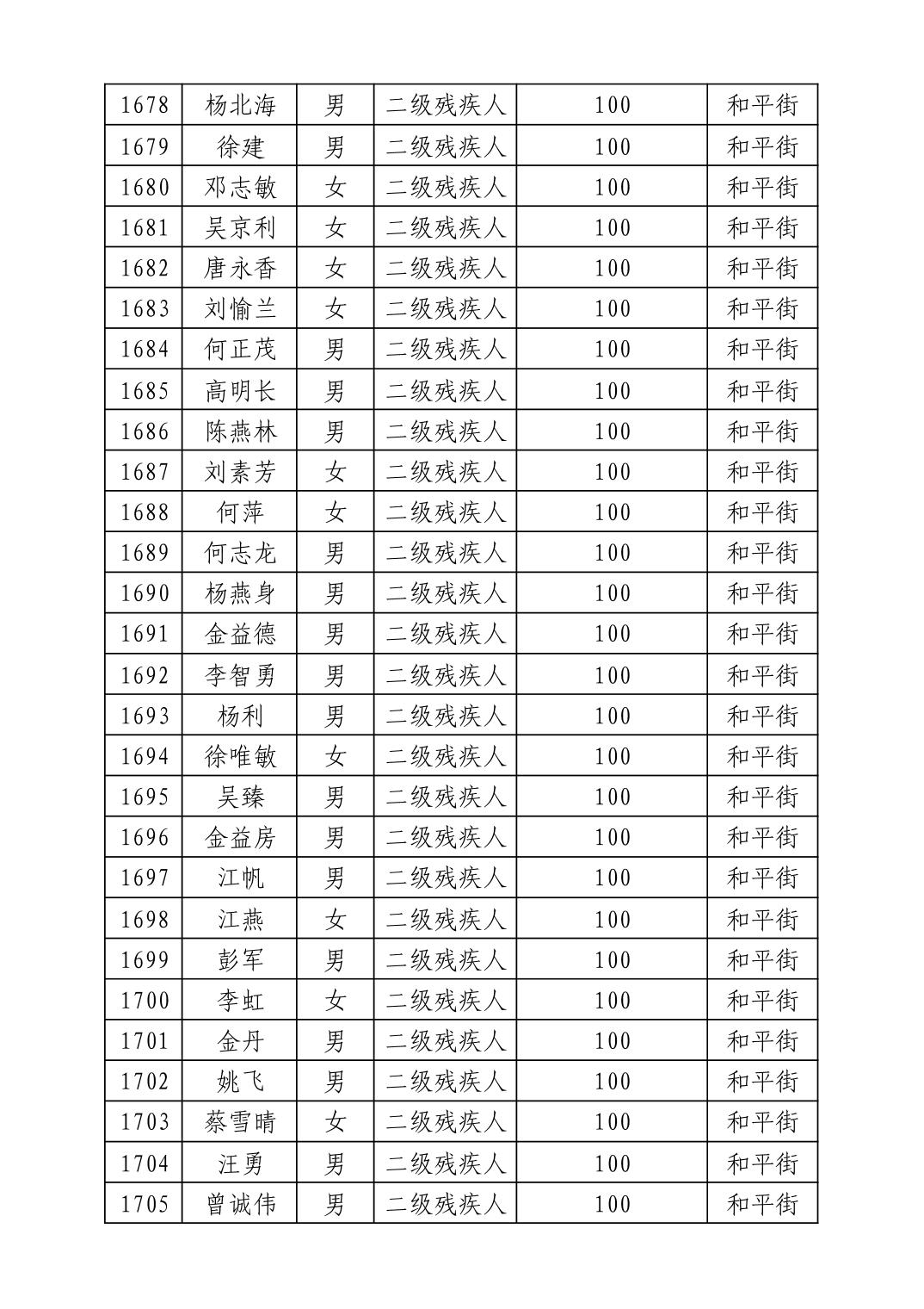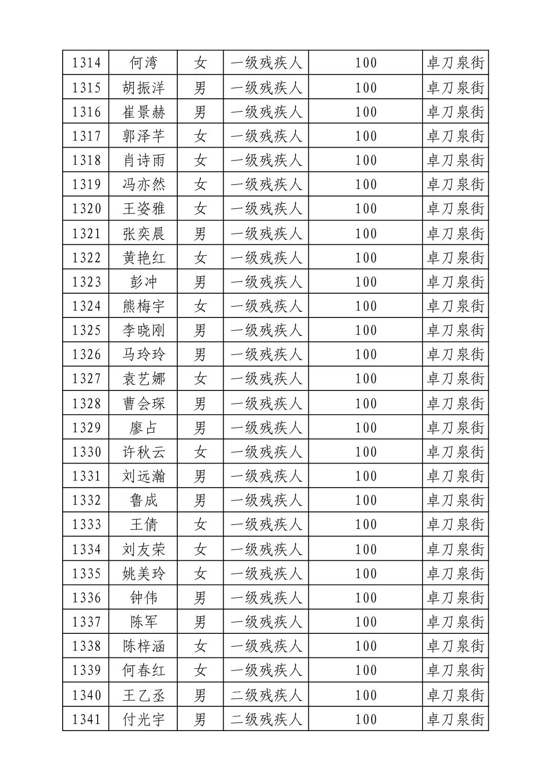 名 称:2025年8月武汉市洪山区重度残疾人护理补贴发放表