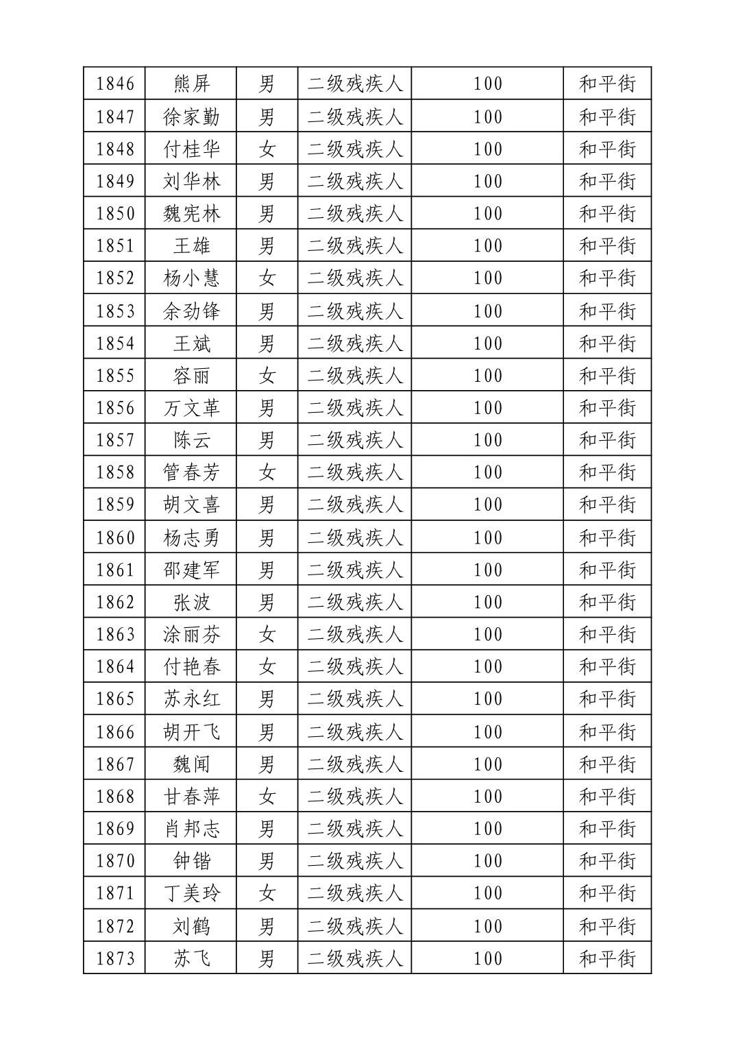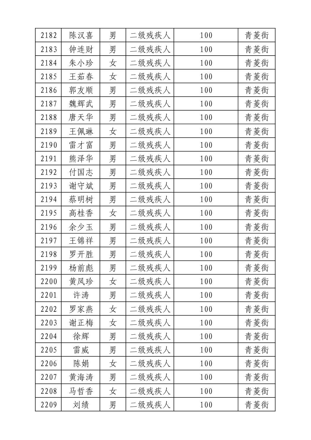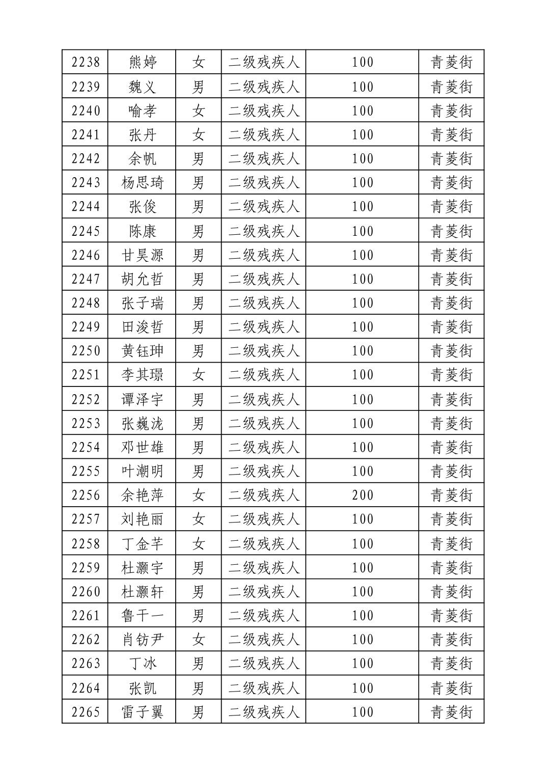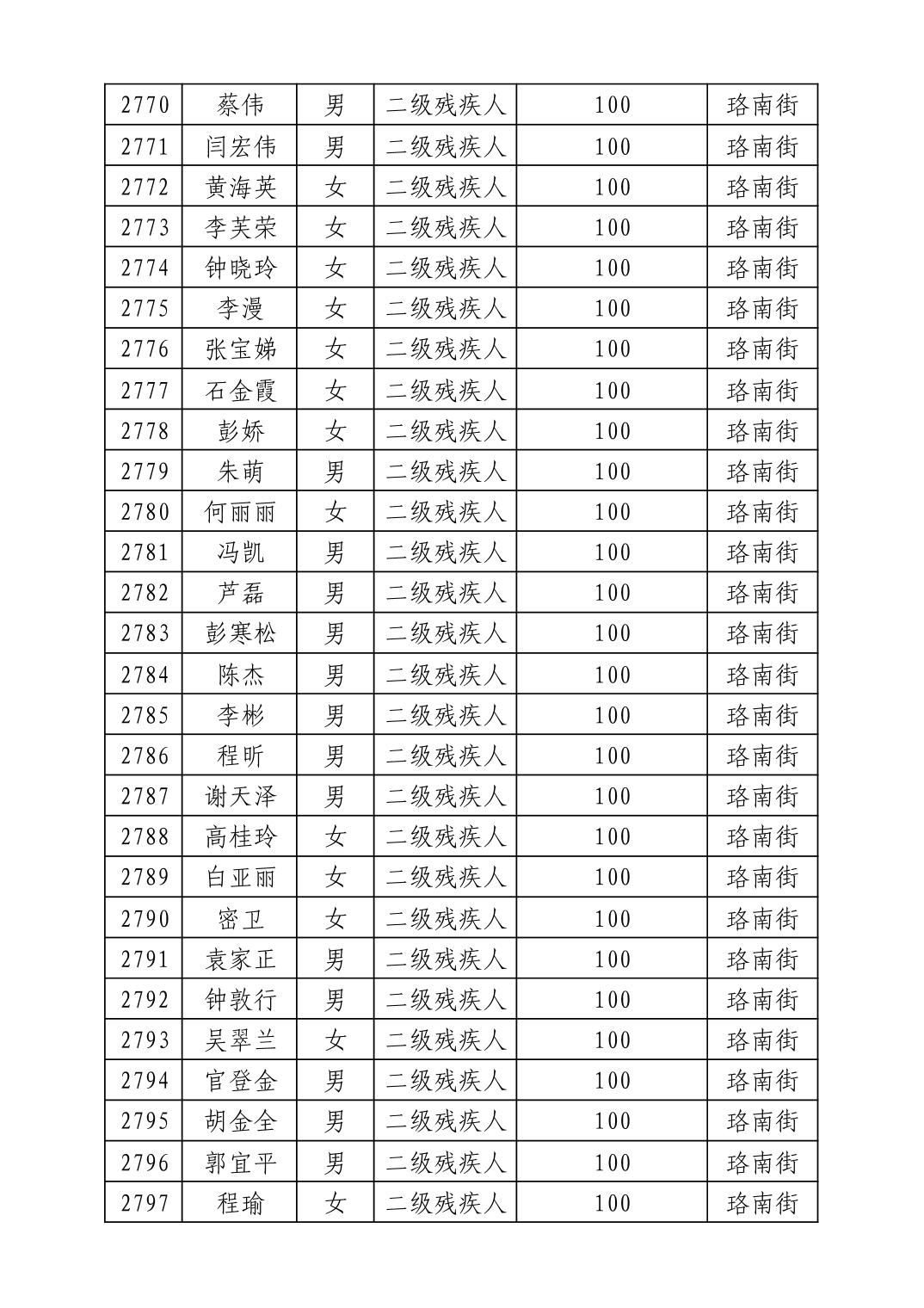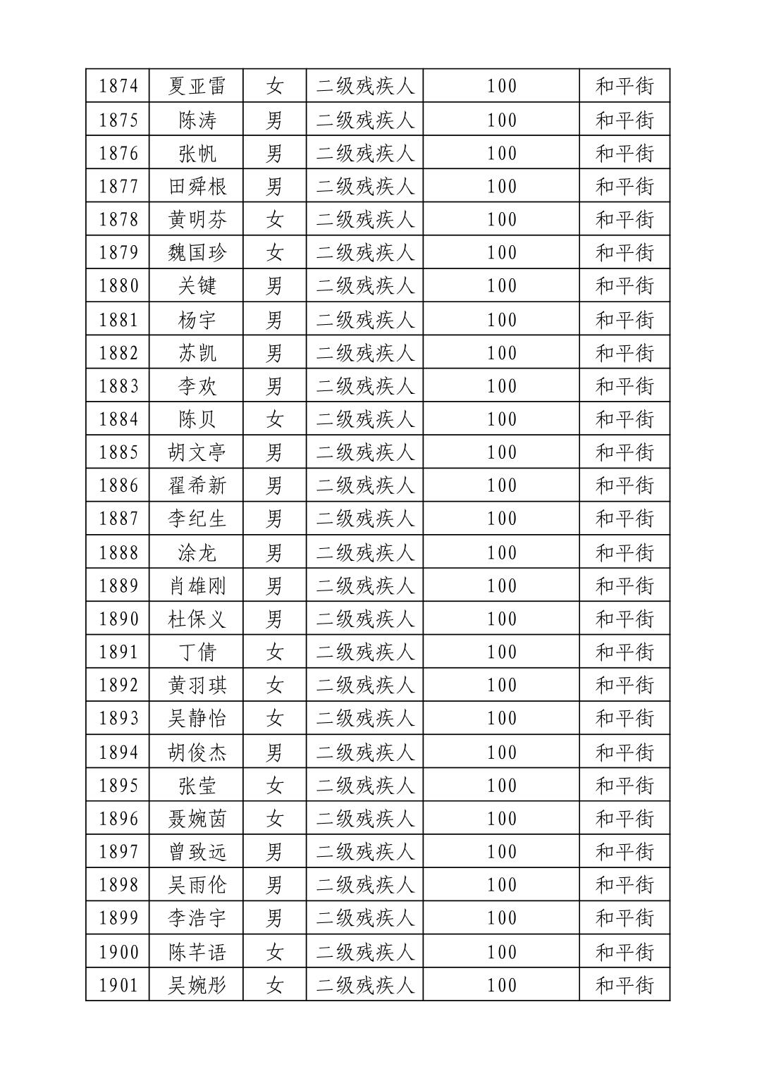 名 称:2025年8月武汉市洪山区重度残疾人护理补贴发放表