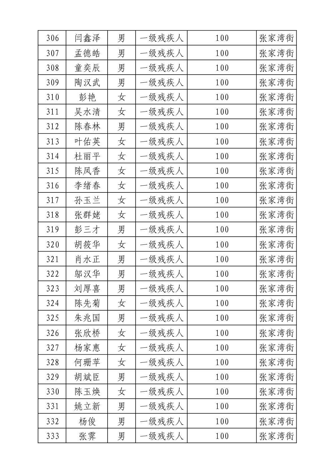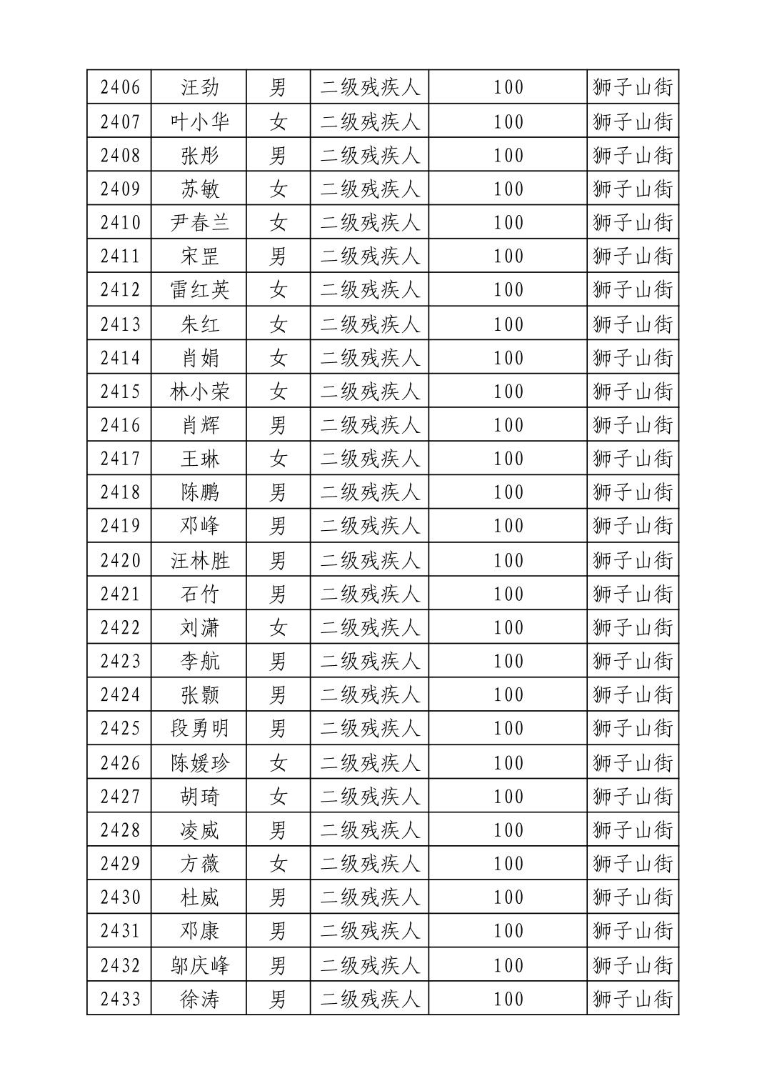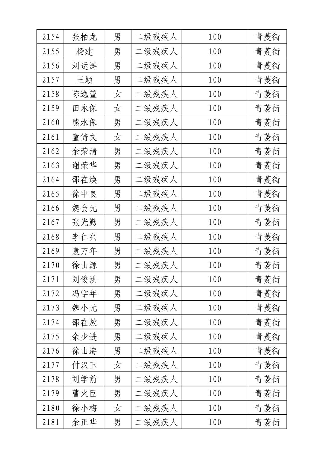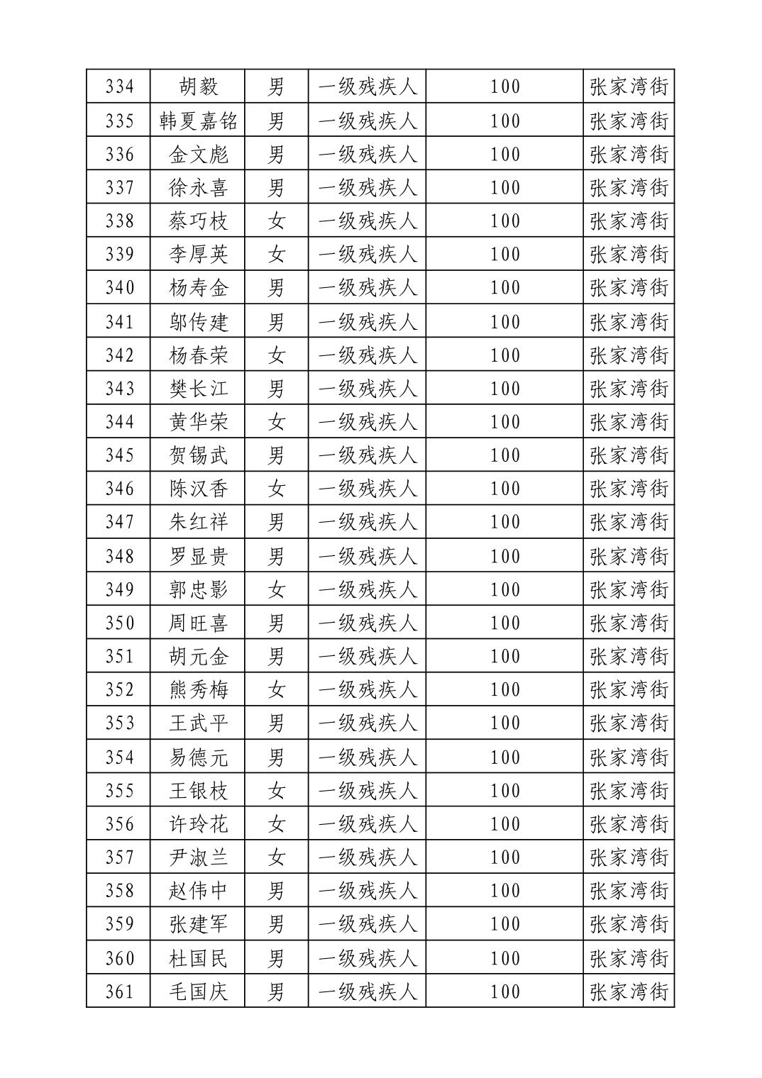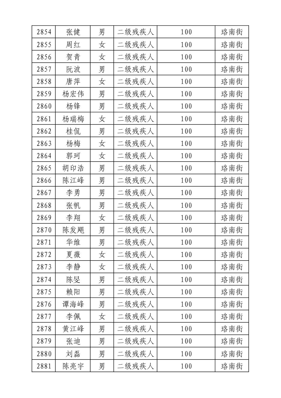 名 称:2025年8月武汉市洪山区重度残疾人护理补贴发放表