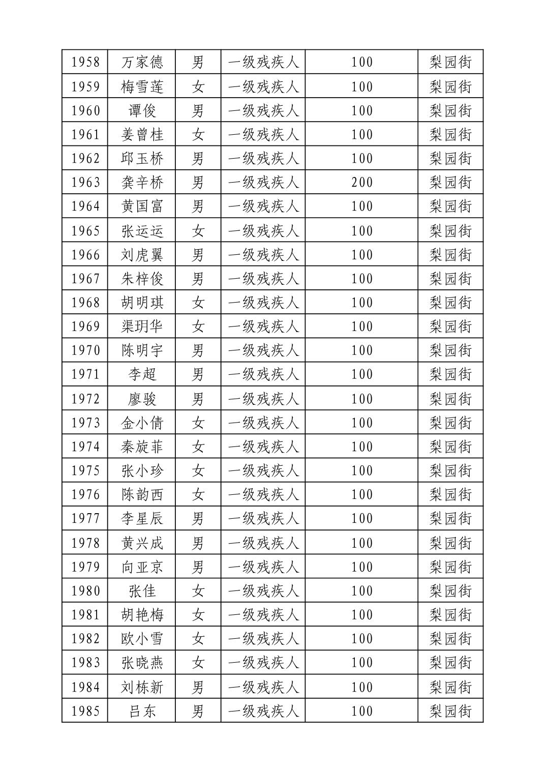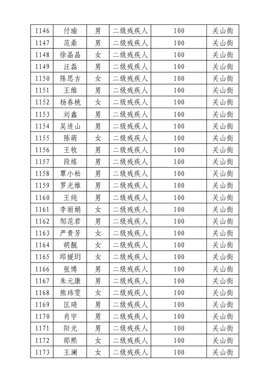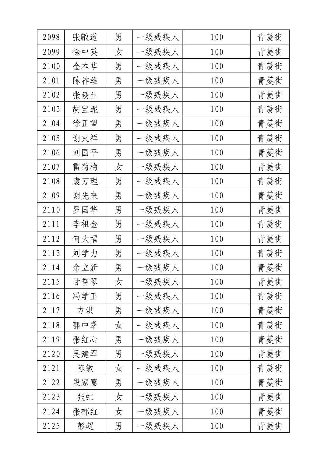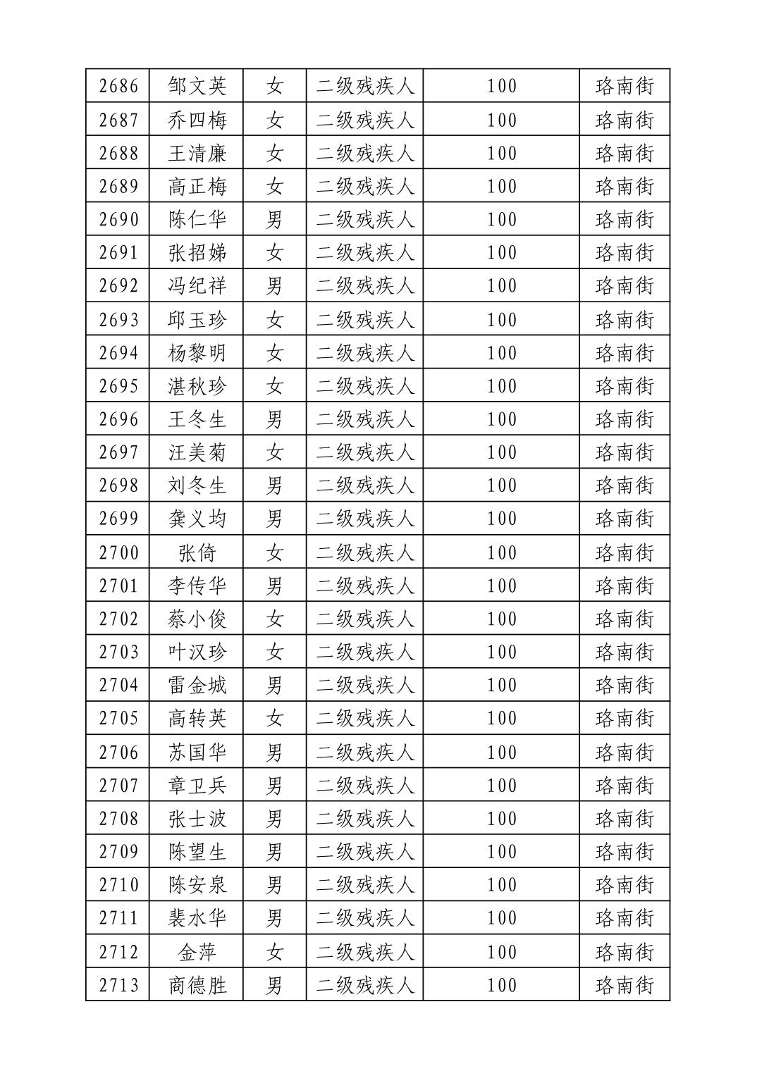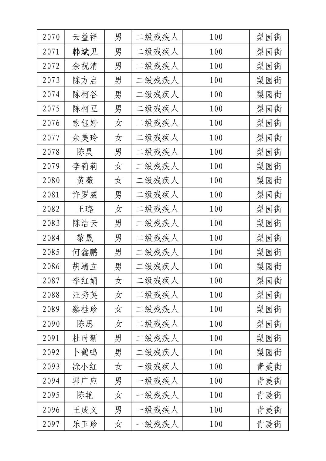 名 称:2025年8月武汉市洪山区重度残疾人护理补贴发放表