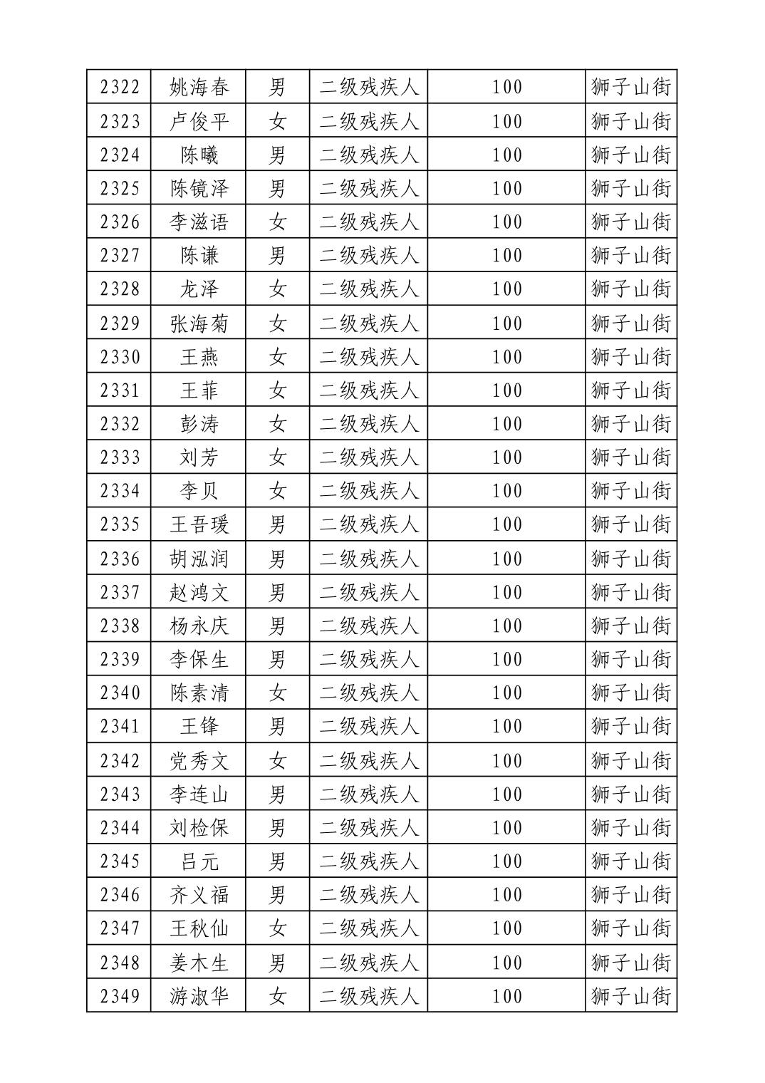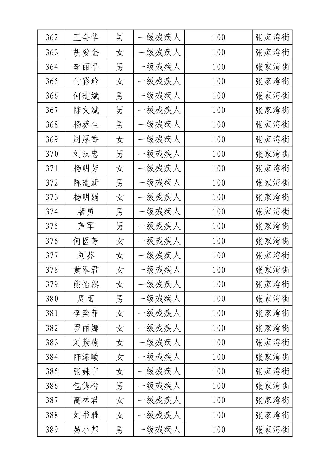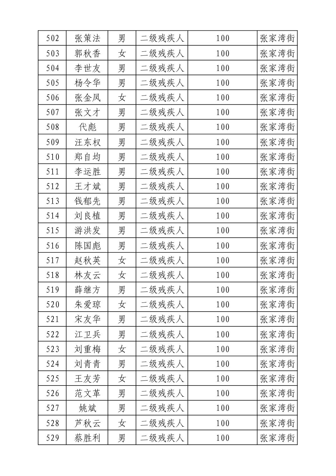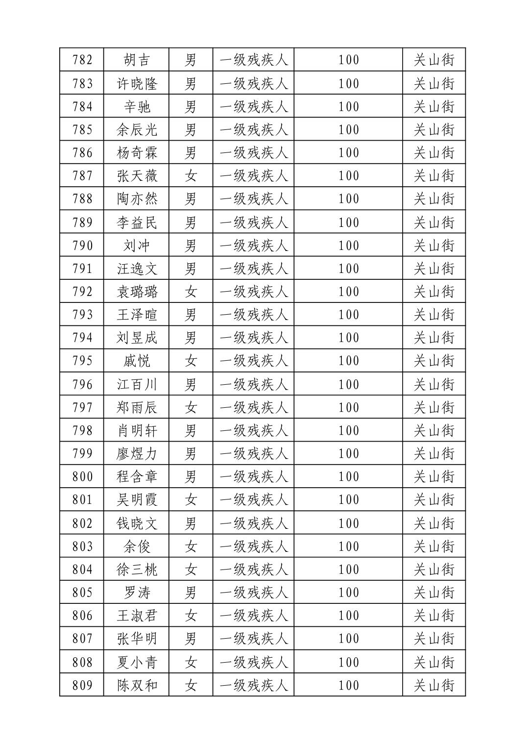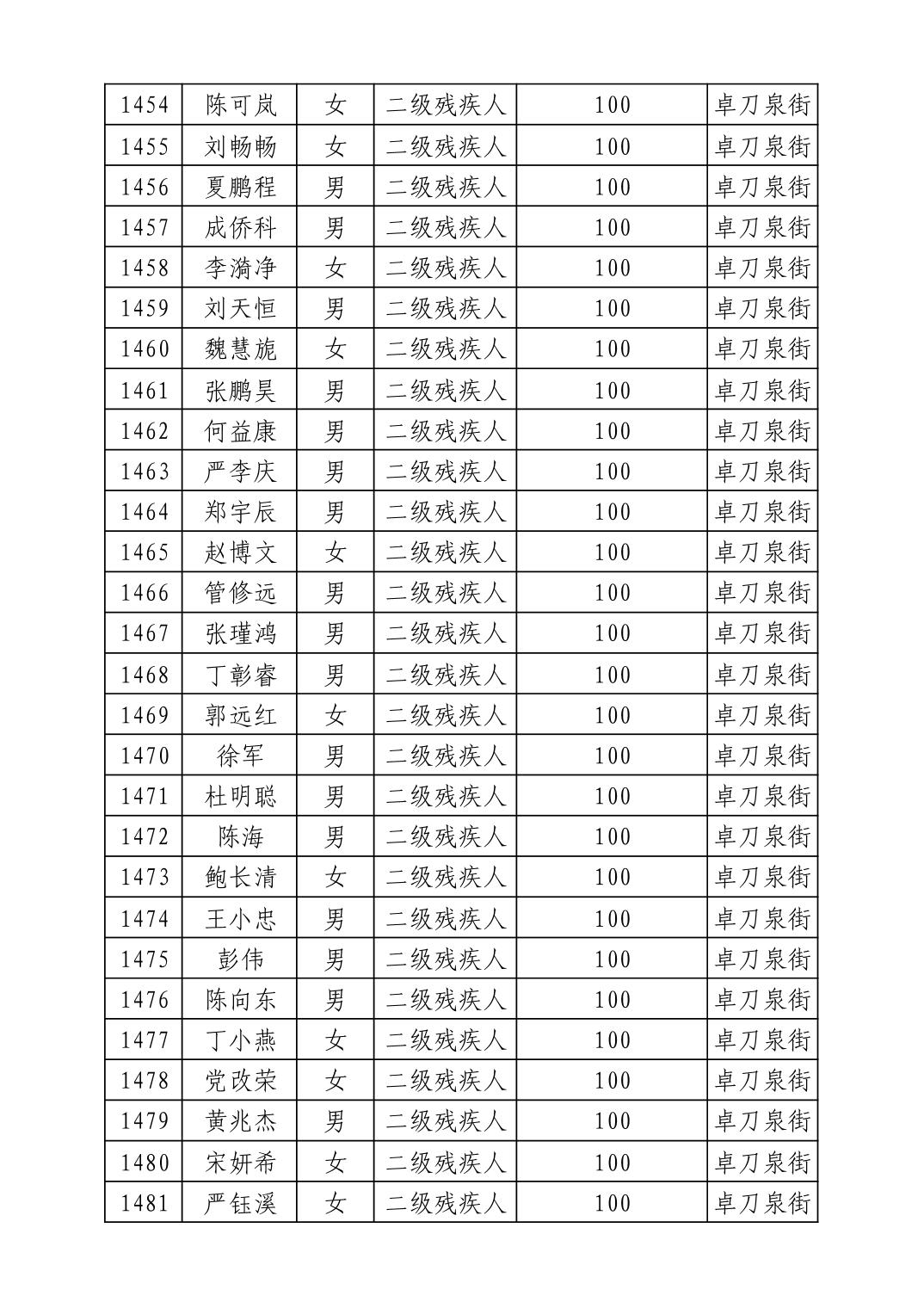 名 称:2025年8月武汉市洪山区重度残疾人护理补贴发放表